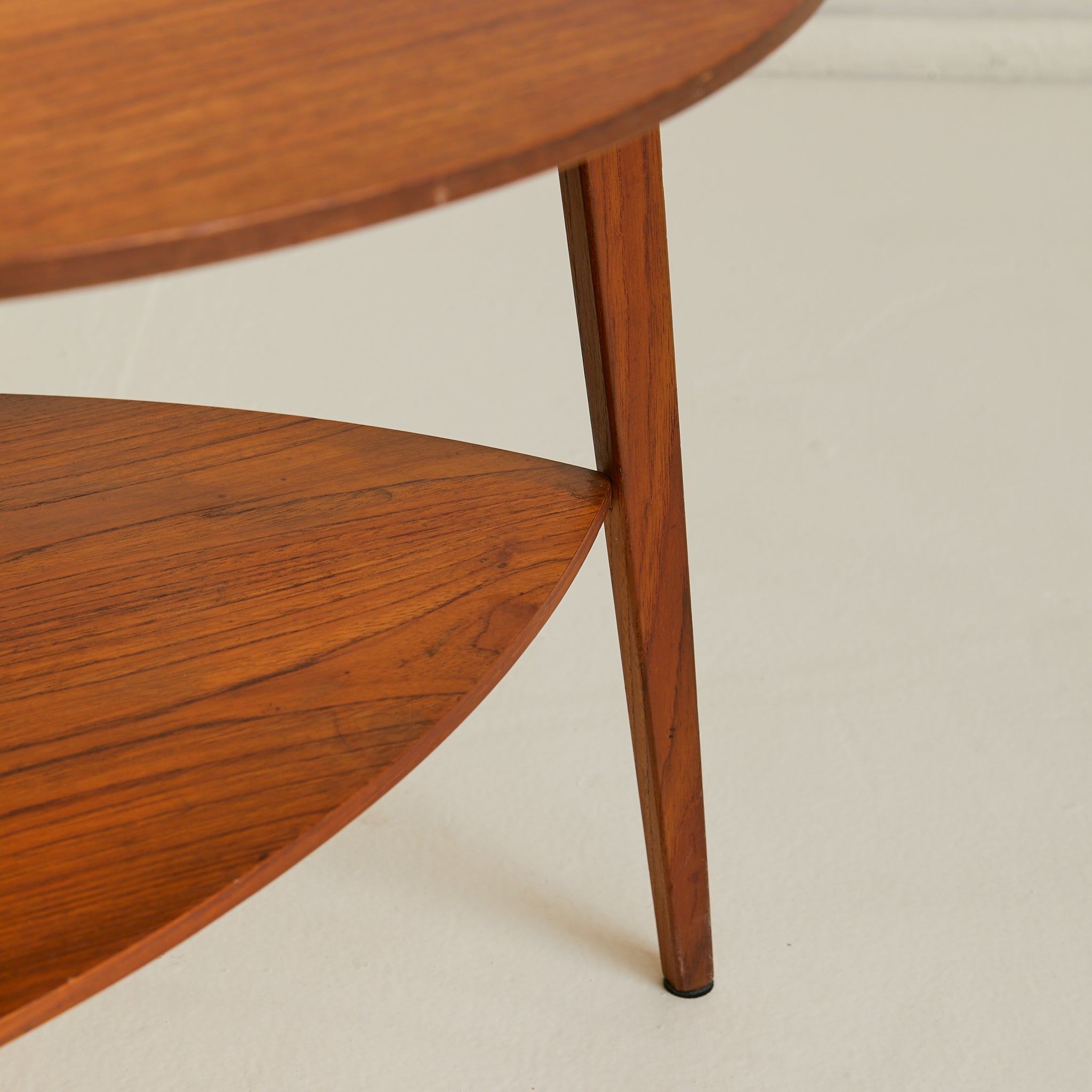 Great vintage condition. The teak surfaces display light wear consistent with age, including faint scratches, subtle scuffs, and water marks. The lower shelf and legs remain sturdy and well-joined. Structurally sound and stable.