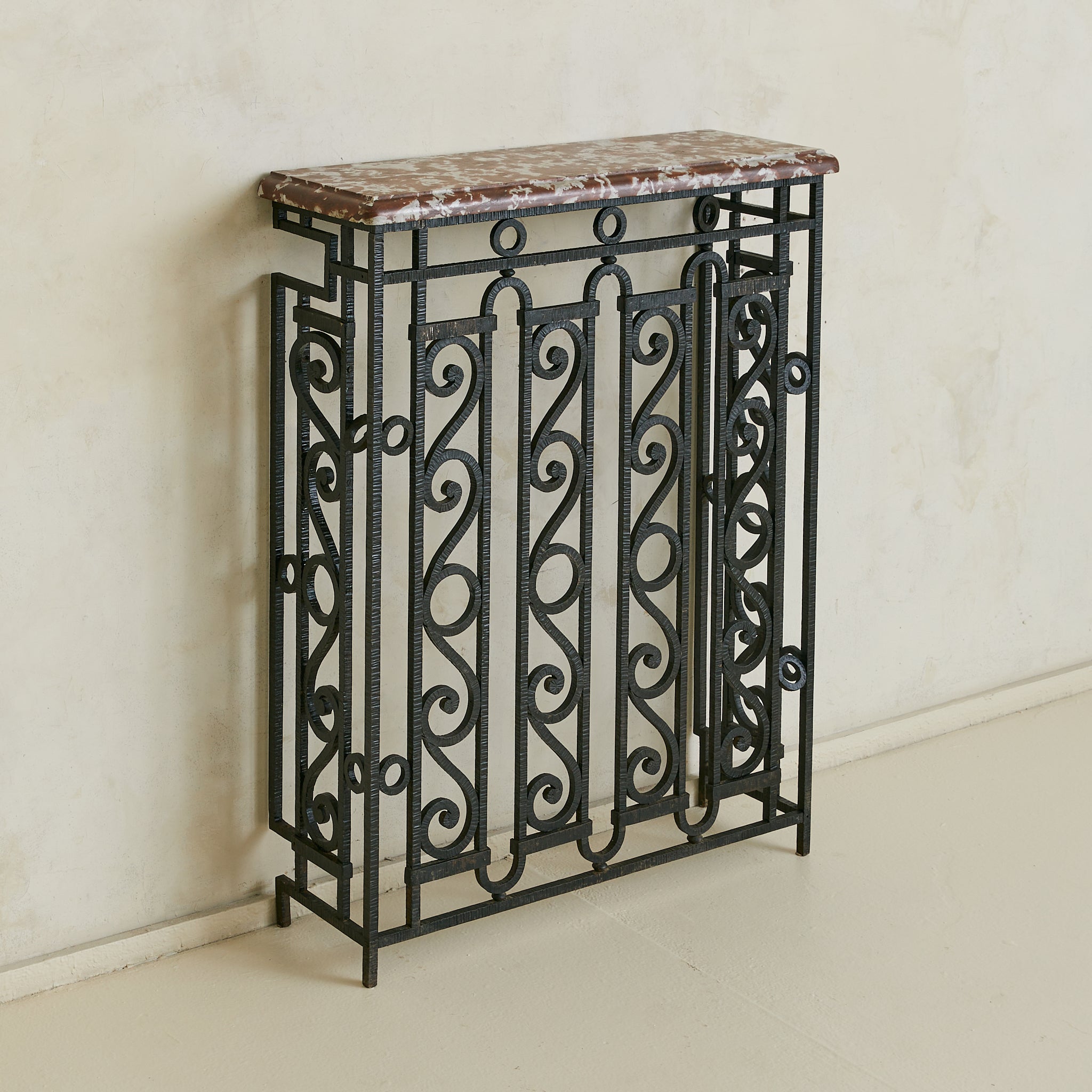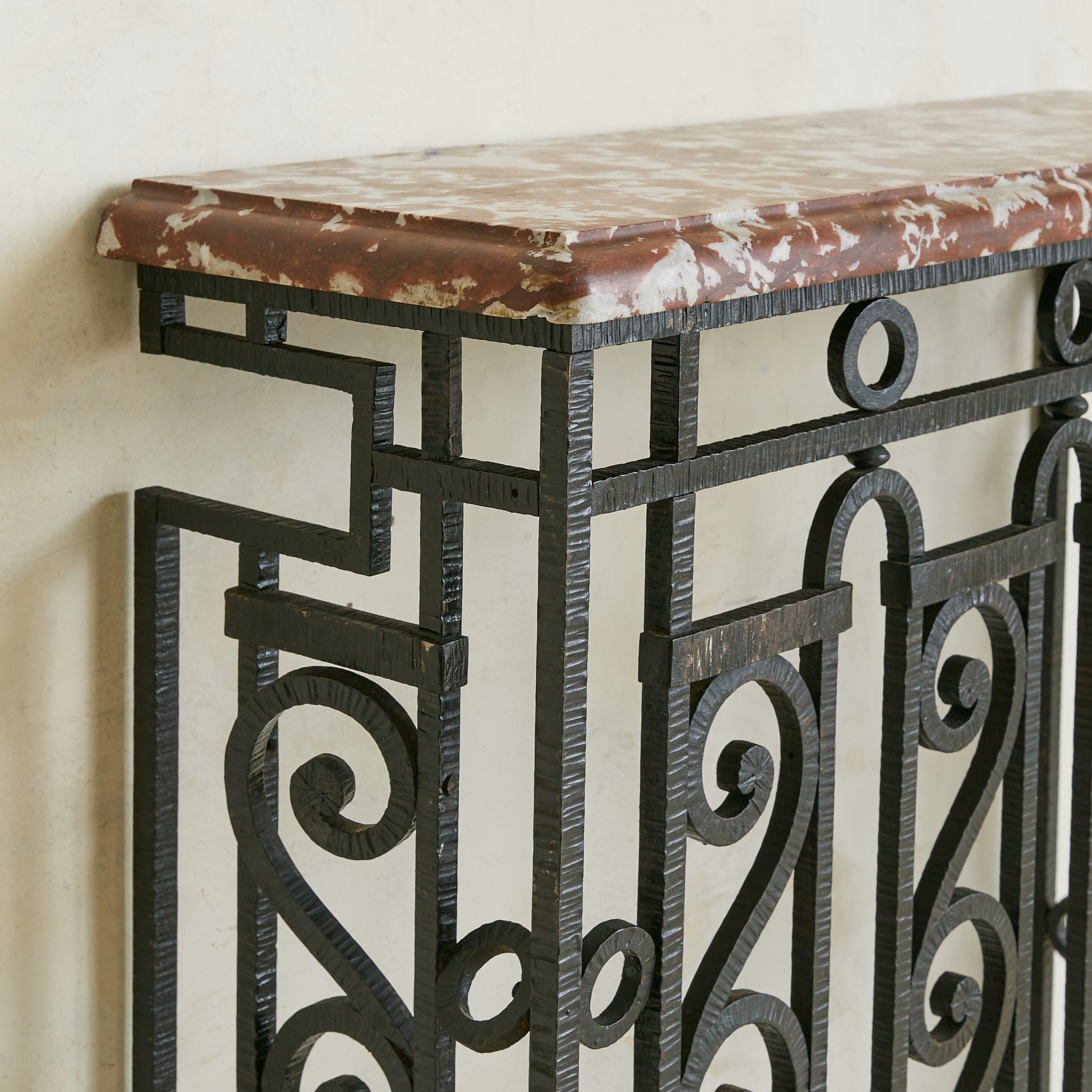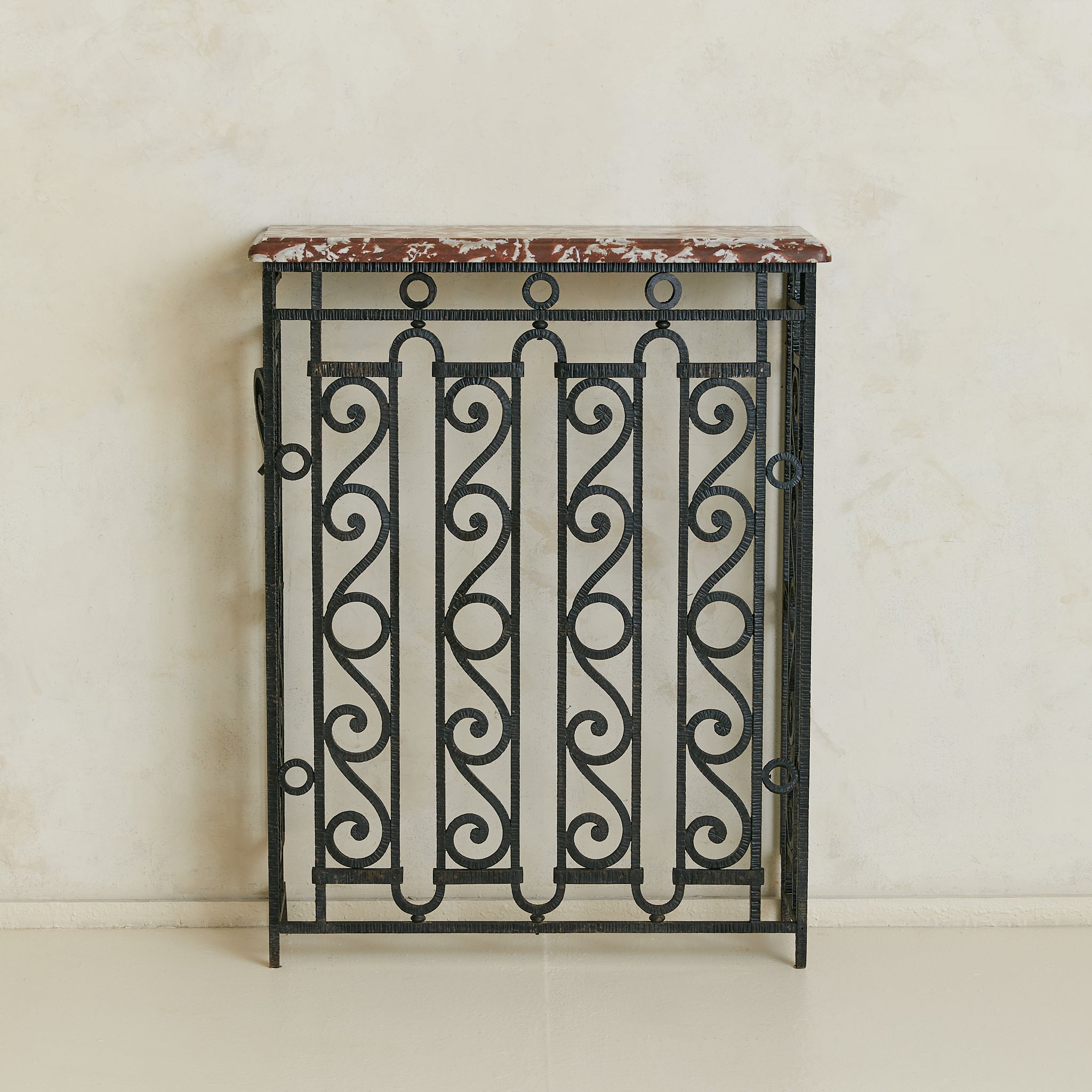 French Art Deco Red Marble + Wrought Iron Console, 1925