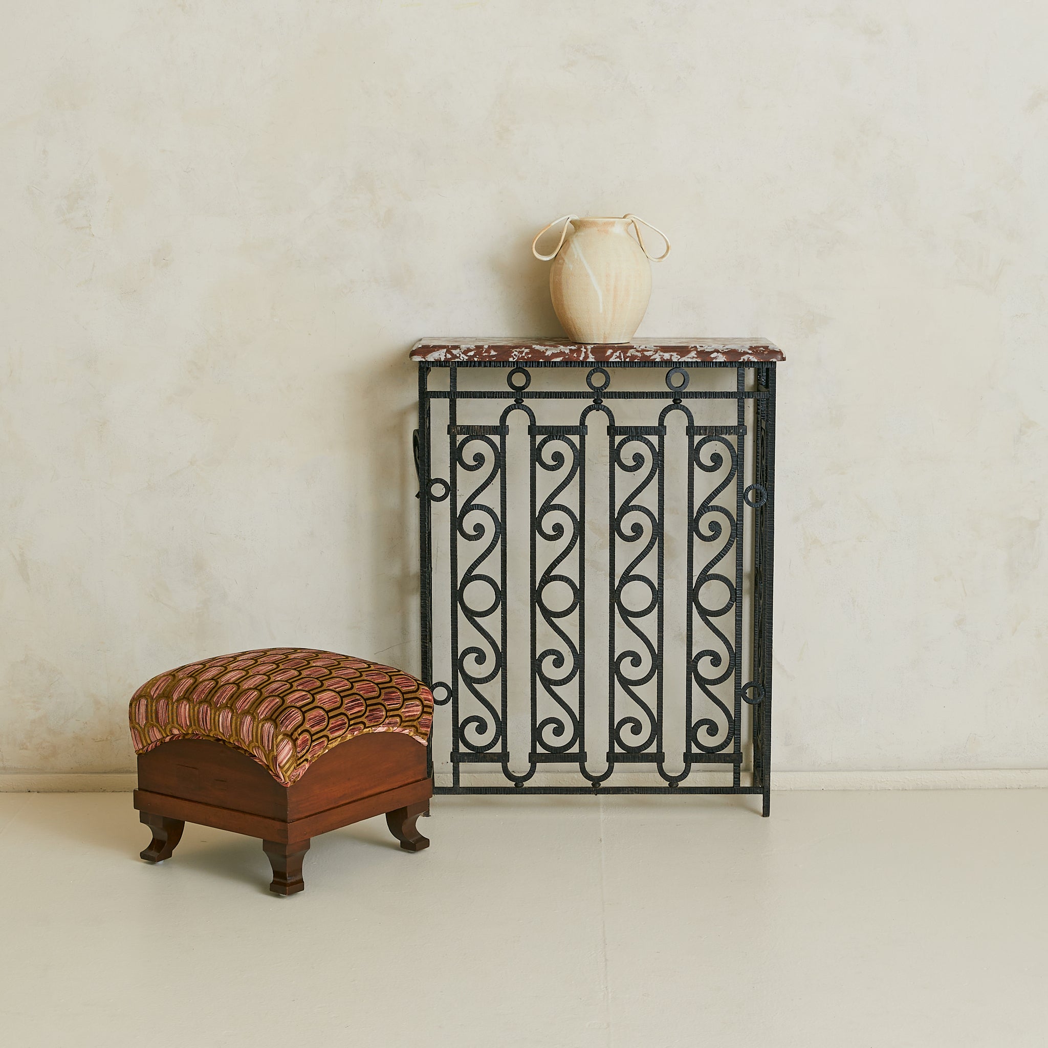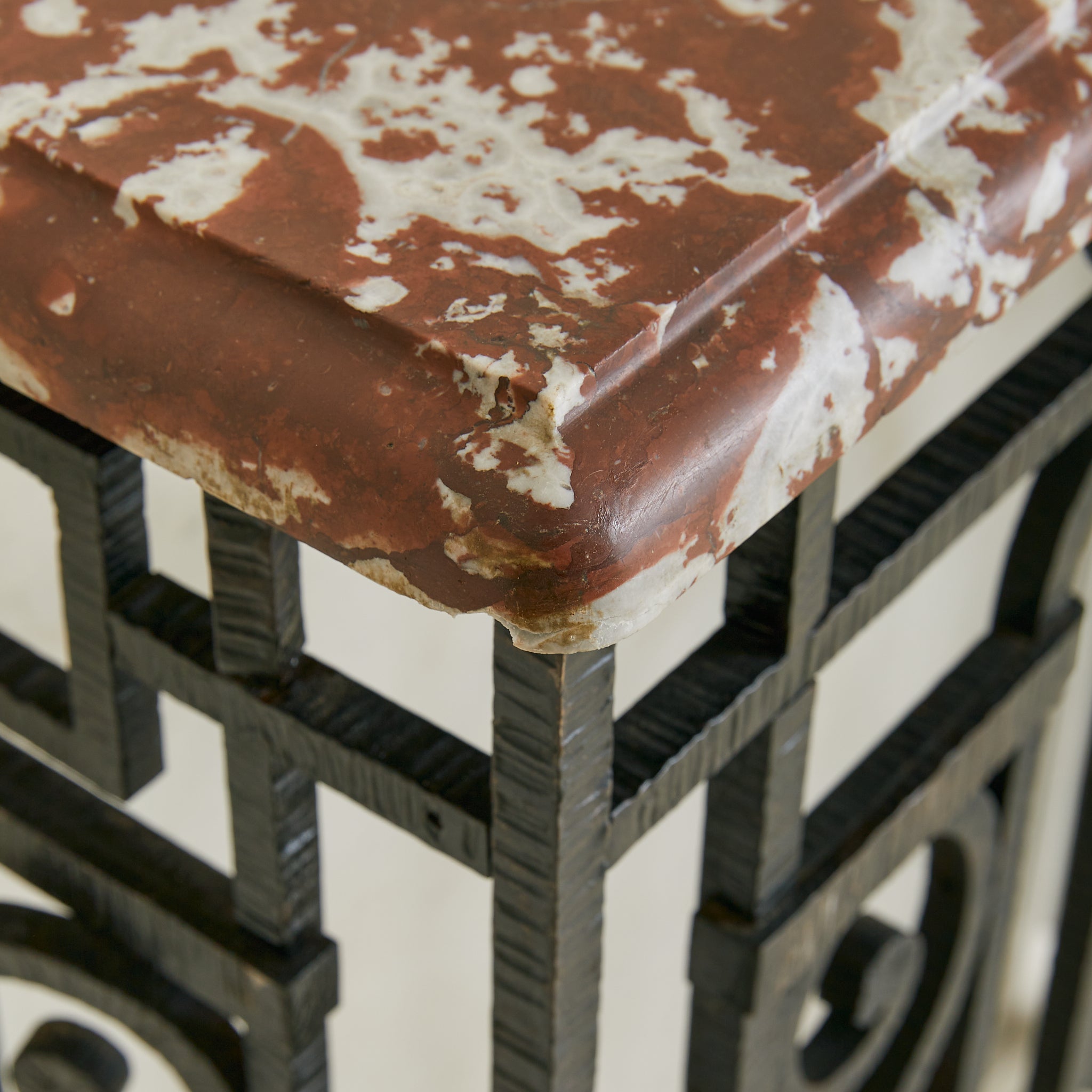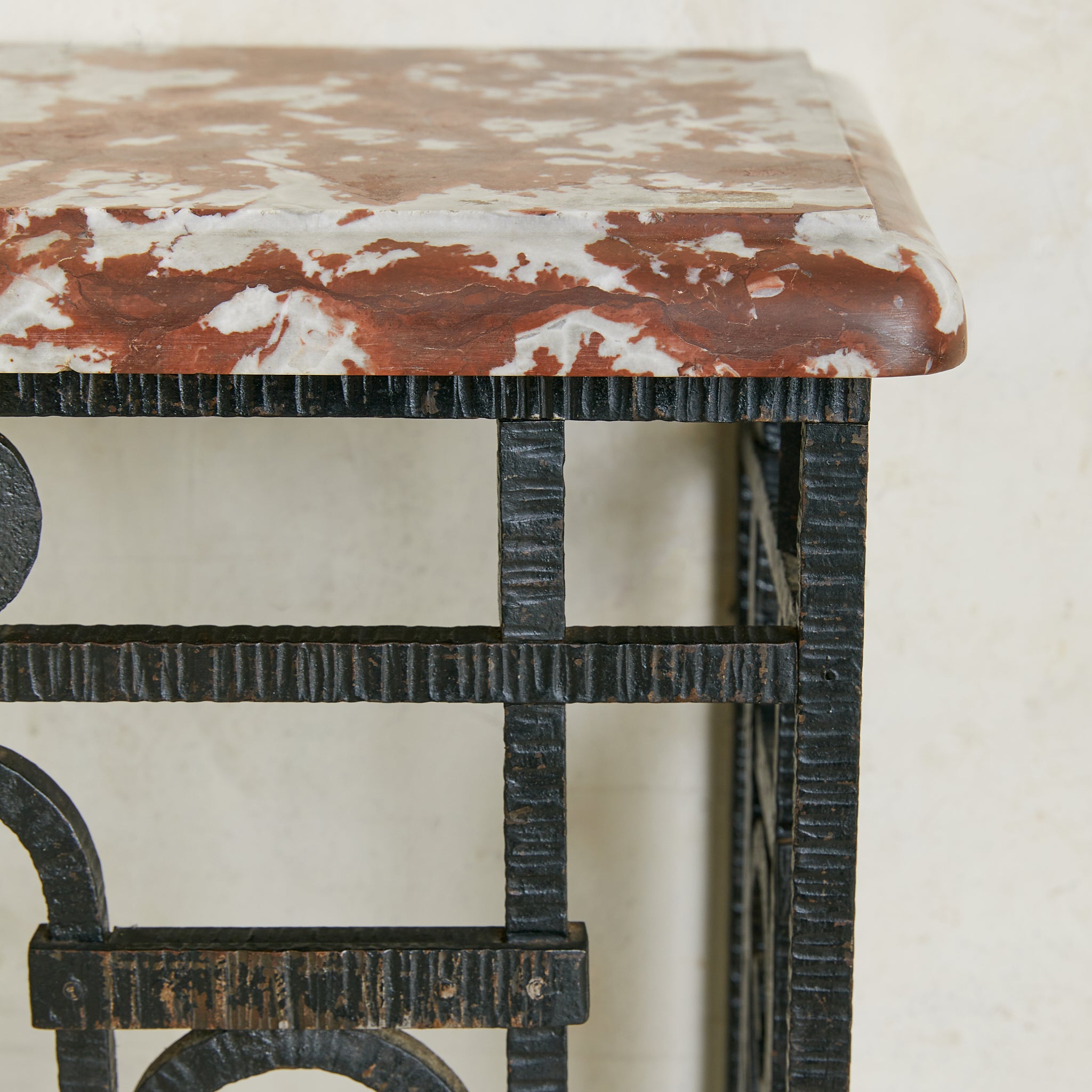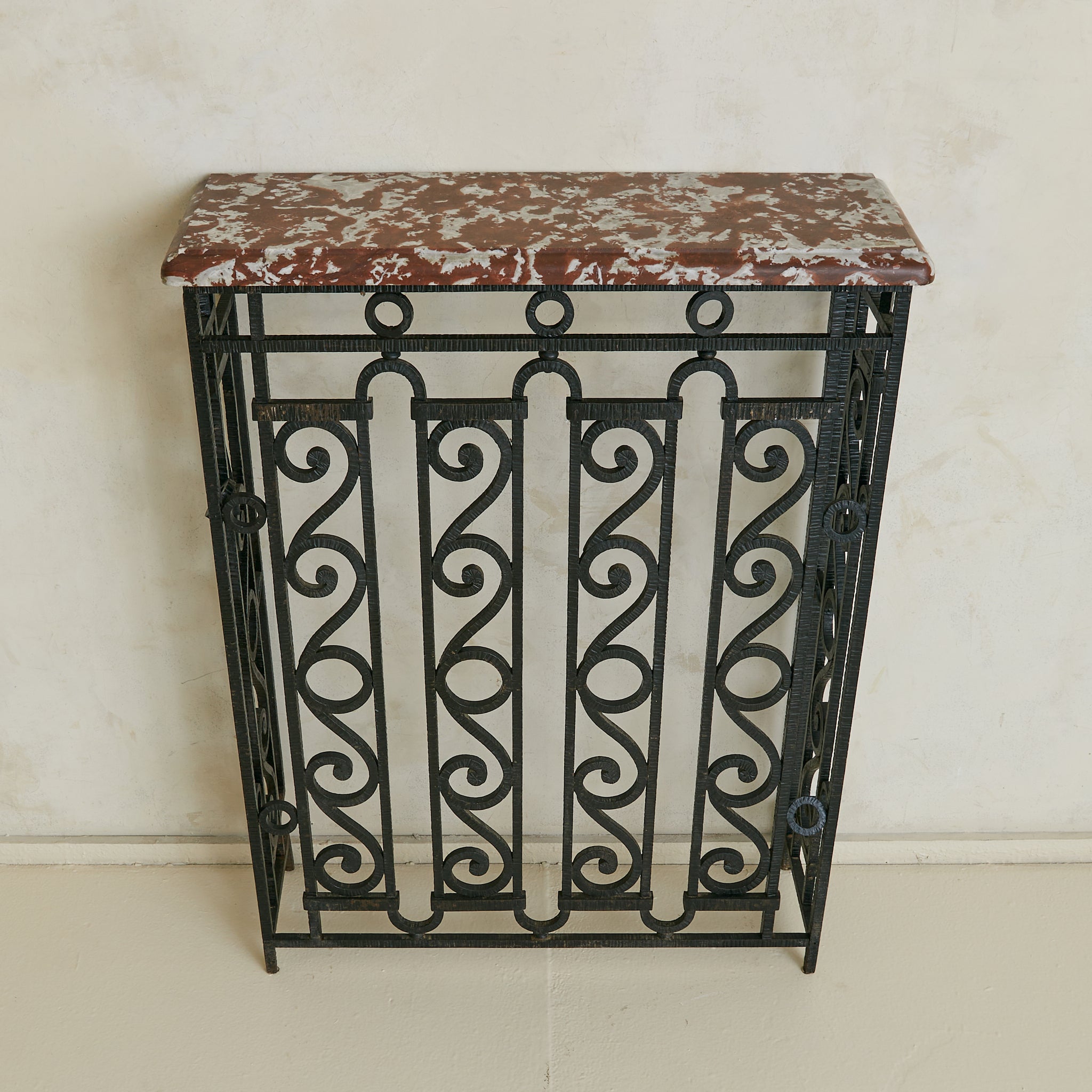 French Art Deco Red Marble + Wrought Iron Console, 1925