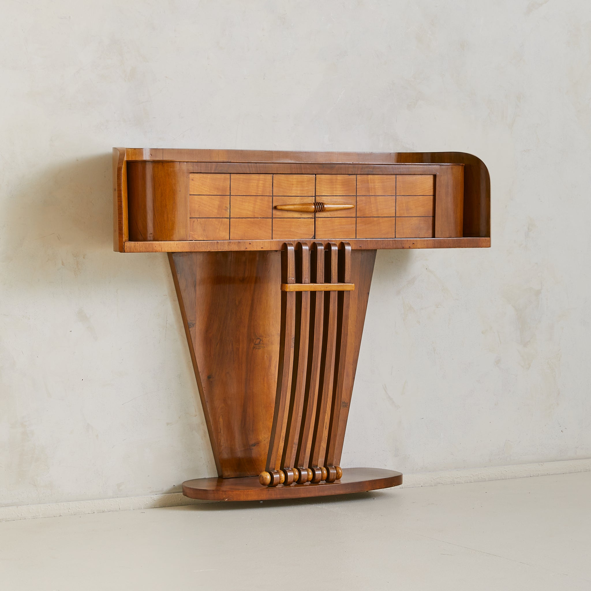 Italian Art Deco Wall-Mounted Console in Maple + Walnut, 1930s