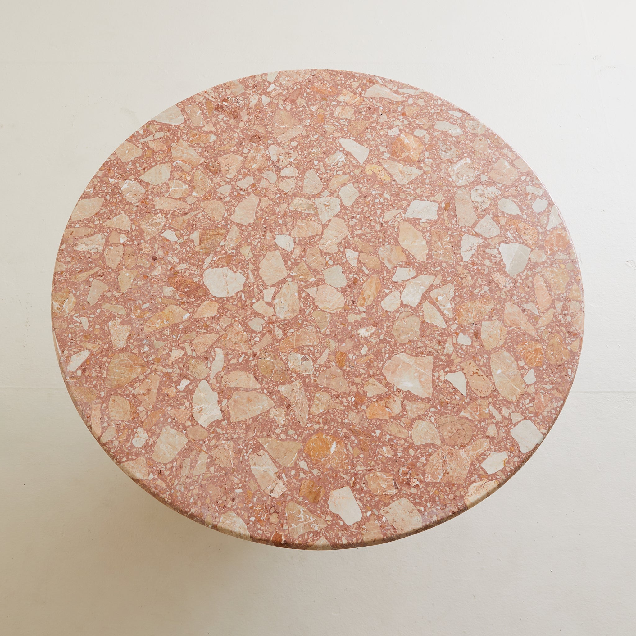 CONDITION: Great vintage condition. The top rests securely on the base without an affixed connection. Two small gaps are visible where the marble planes meet at the base, subtle and consistent with the natural joinery of stone construction.