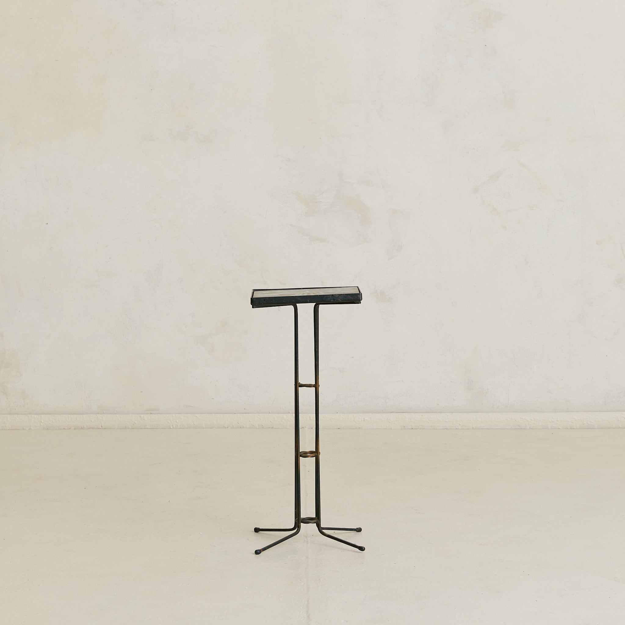 Vintage Petite French Iron Accent Table with Ceramic Top