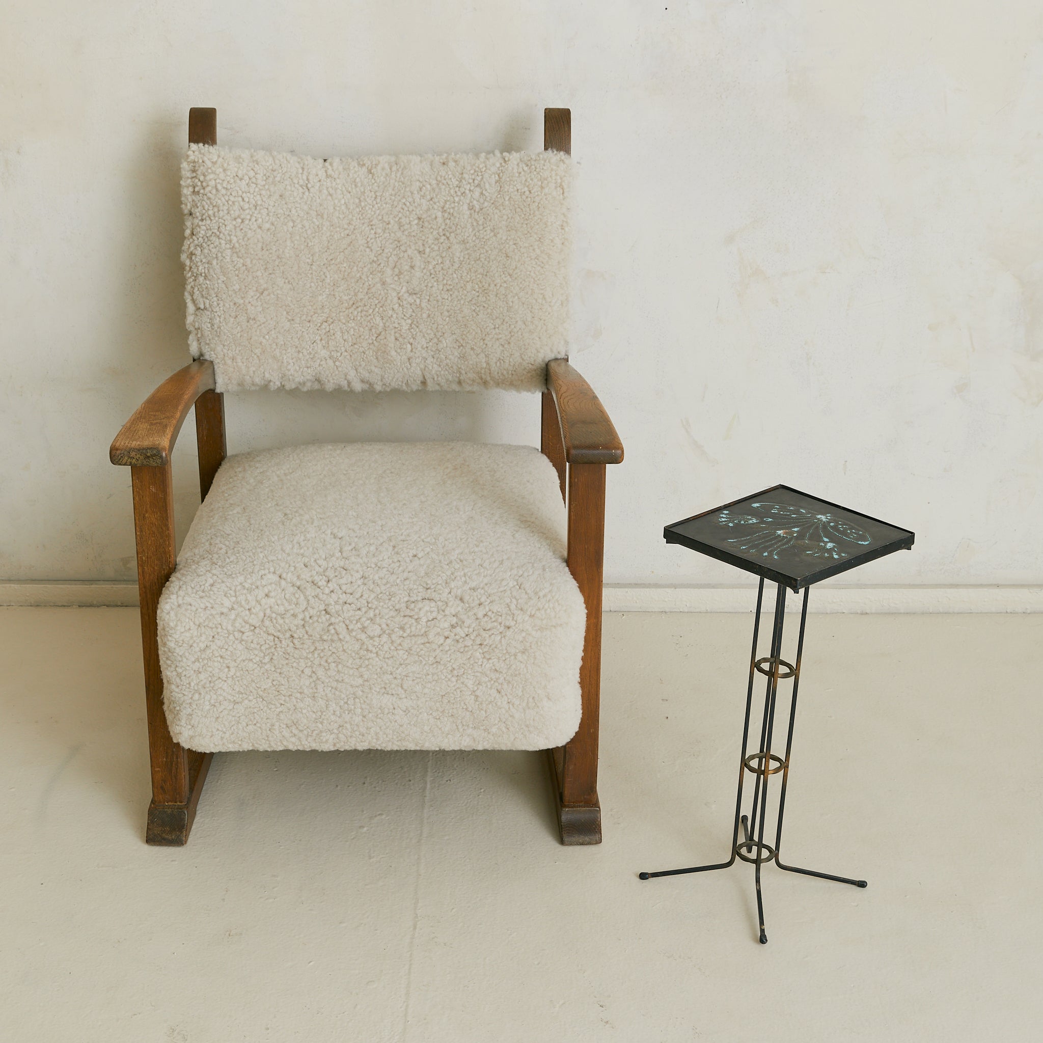 Modest in scale yet rich in detail, the table functions as a pedestal beside a lounge chair or as a decorative accent.