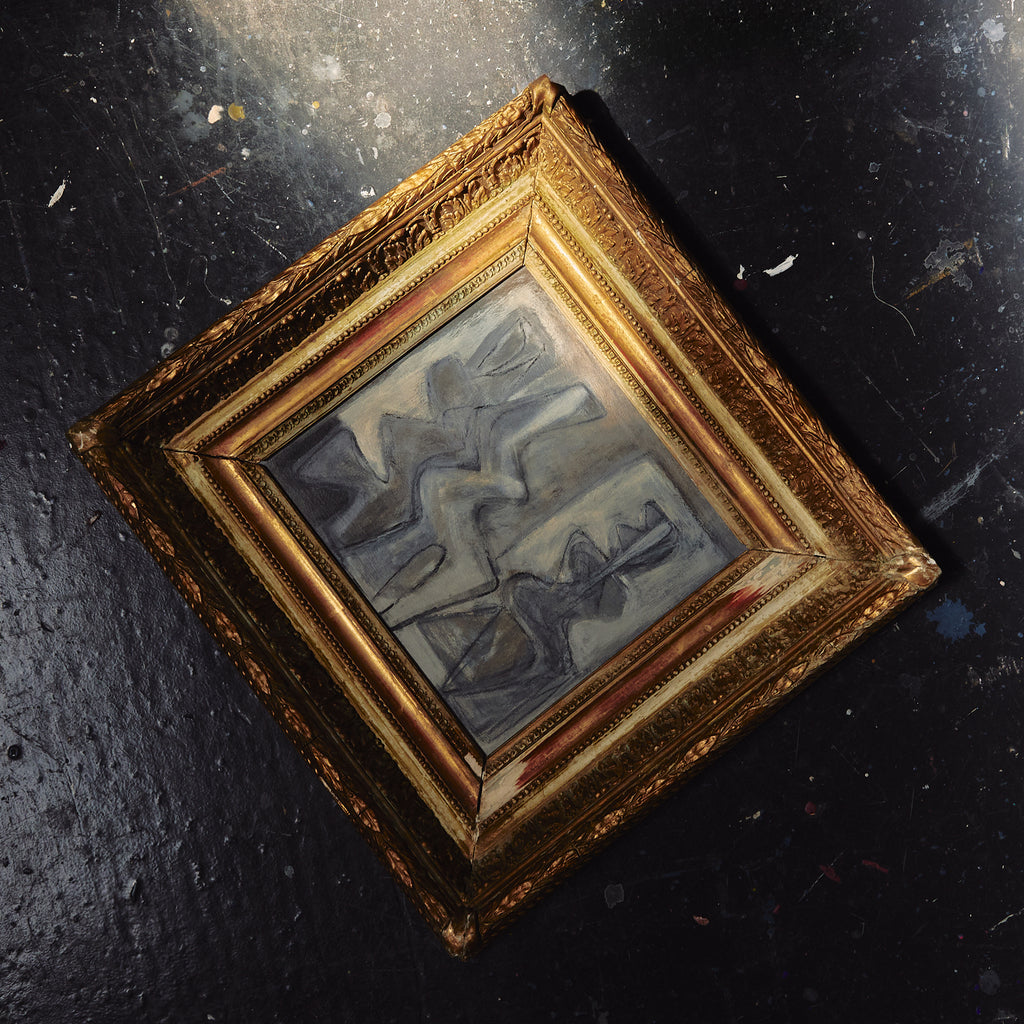 New contemporary artwork in an antique frame. Hanging wire present along the reverse.