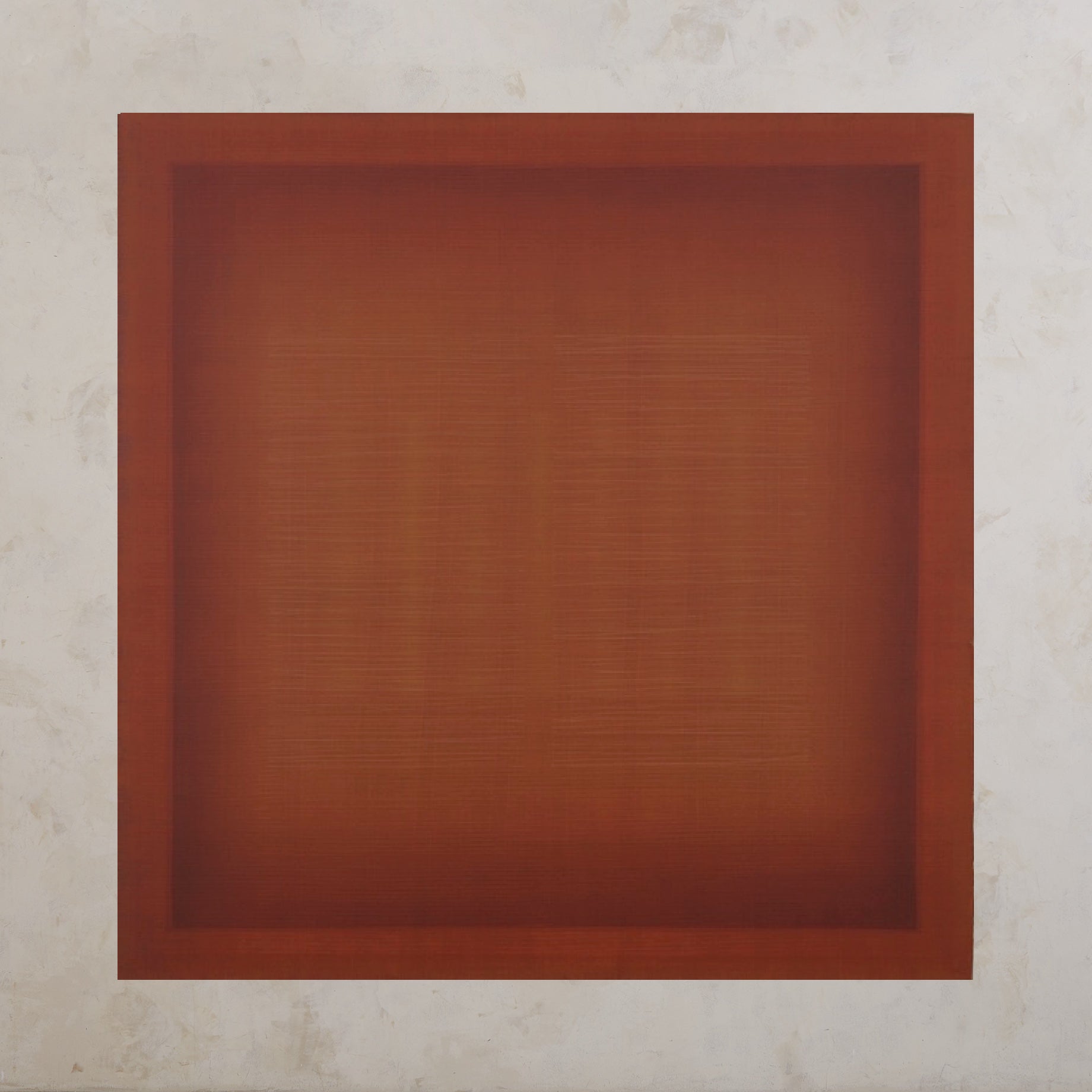 A pastel, color pencil, and acrylic painting on canvas by American artist Marc Ross, 2020. This minimal abstract painting features an impressive gradation of orange hues, giving it an astonishing sense of depth. Signed, dated, and titled en verso. Presented unframed.