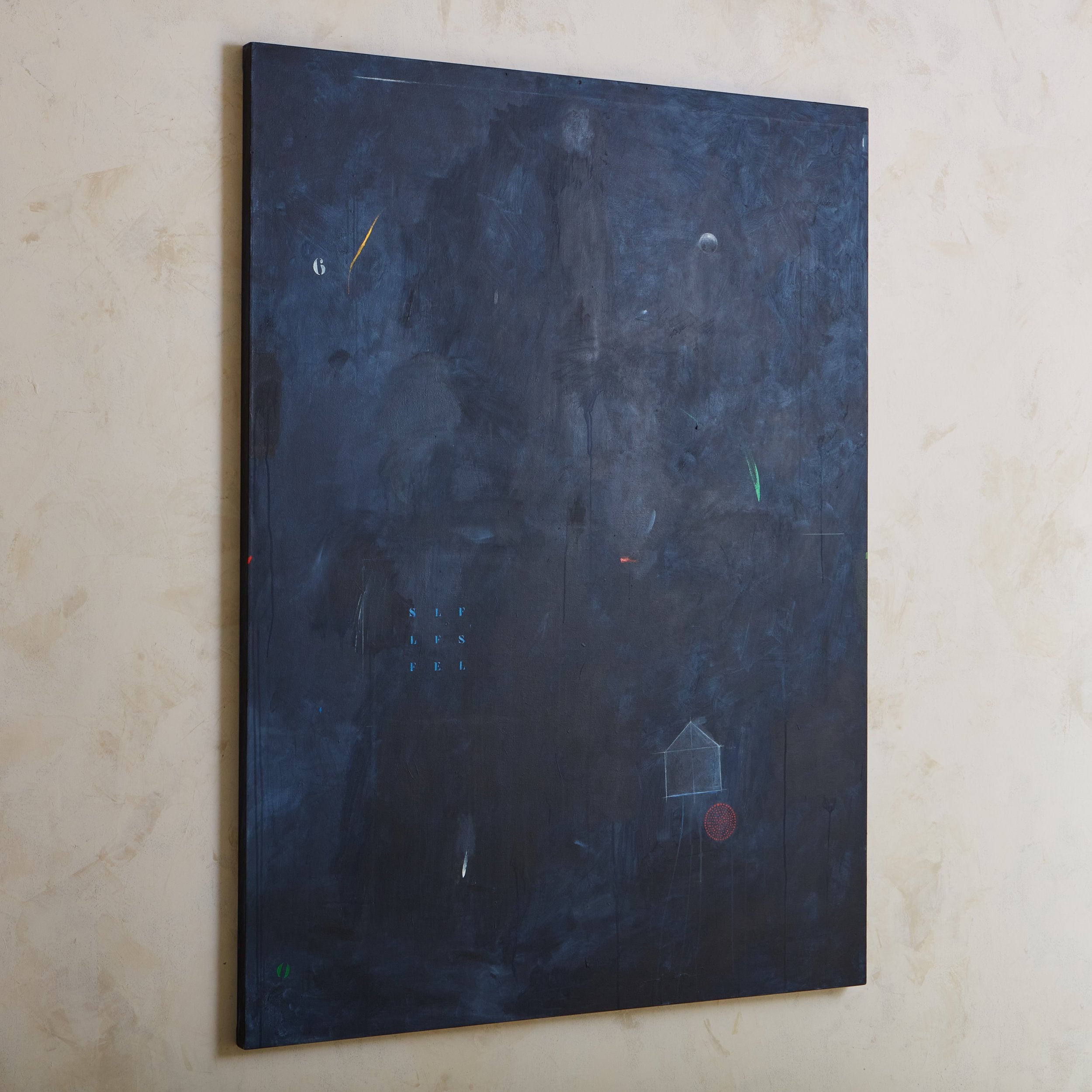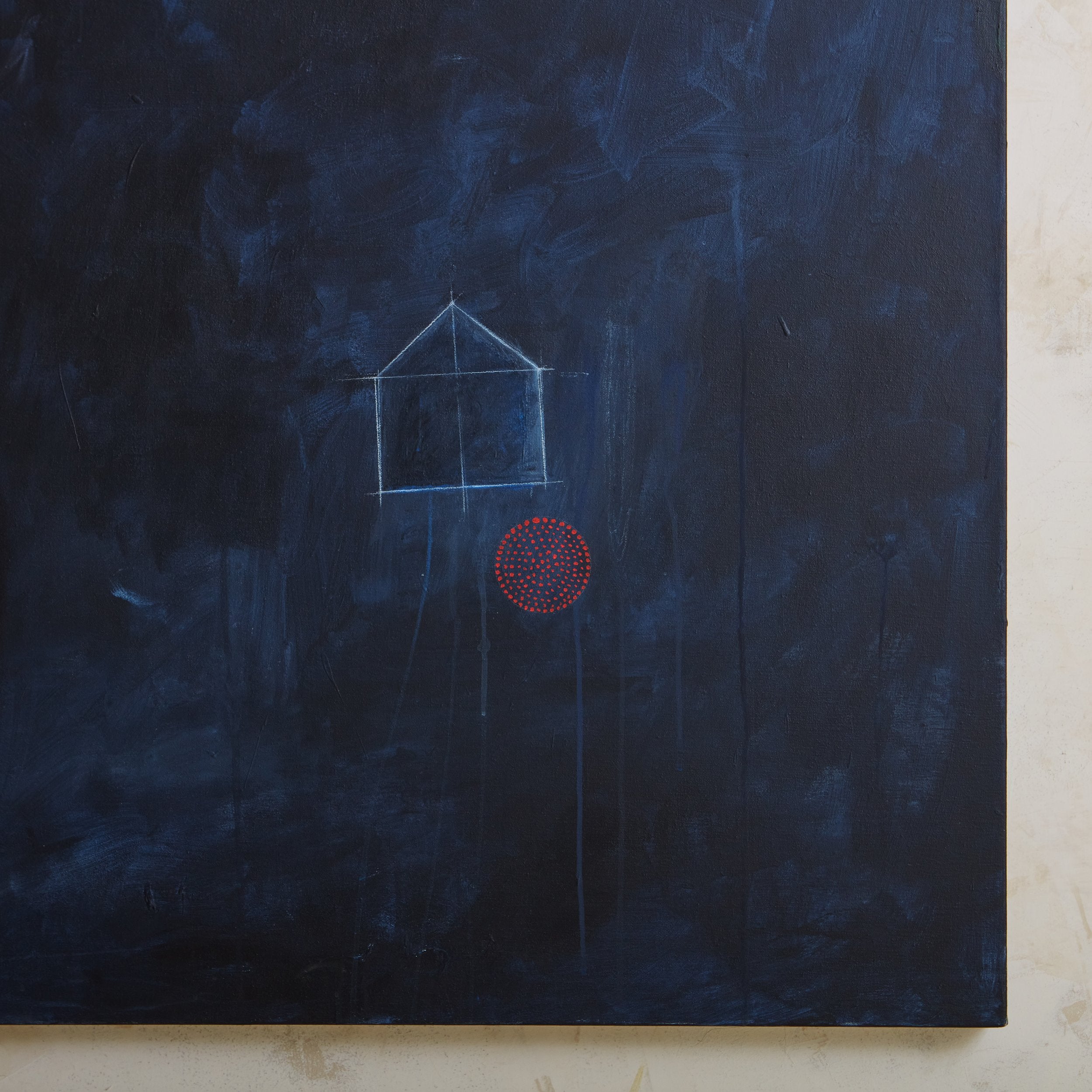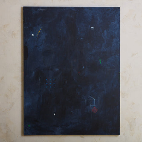In the artist's words about her process, "When I paint, I travel to a place of fantasy, memory, invention, and illusion. I'm thinking about the duality of the sensory life and the logical life, the mystery and magic of childhood, and the essence of feelings and actions. In the process, I am only a player. The painting makes its own way, and I follow, guiding and polishing, letting the paint squiggle and drip, erase or mystify.”
