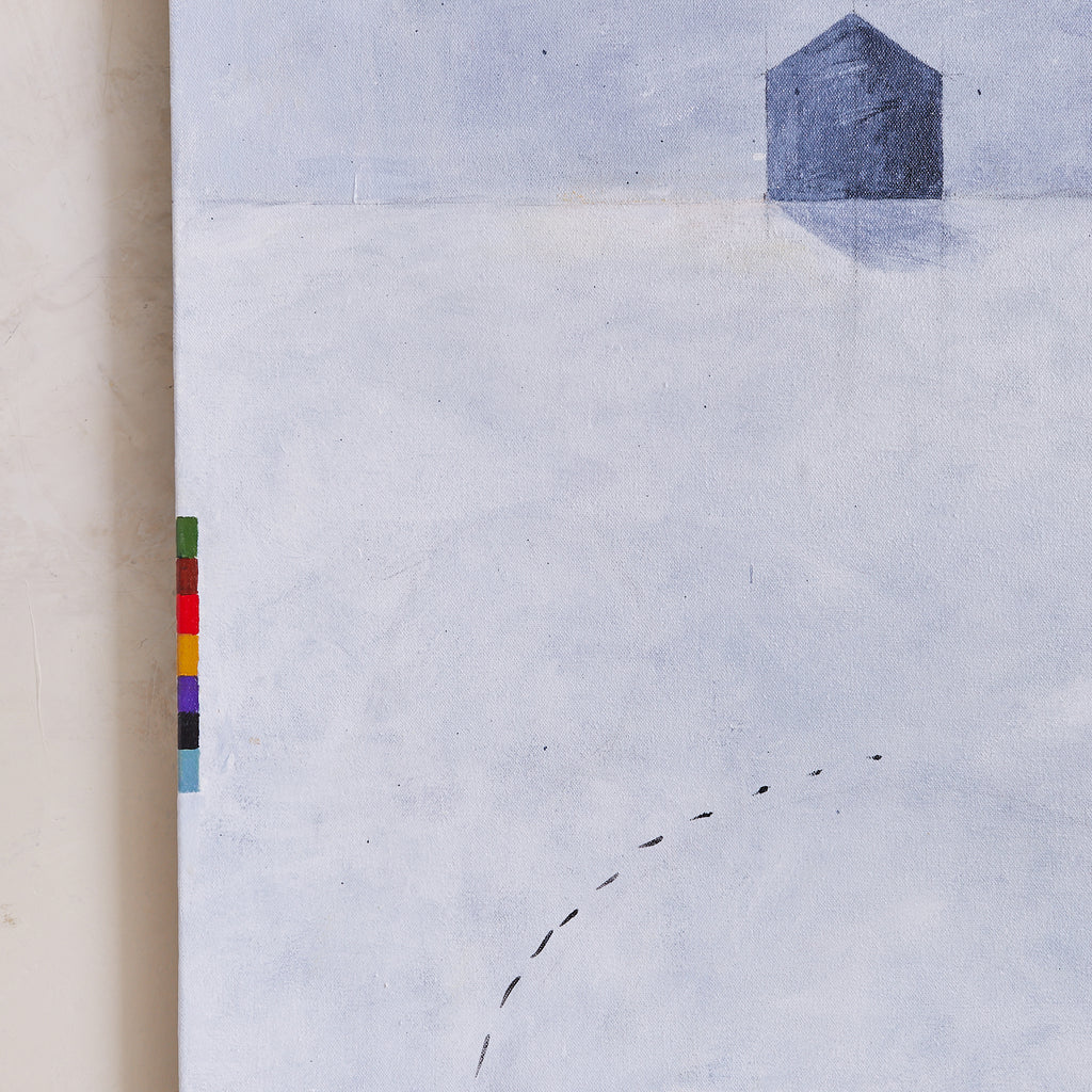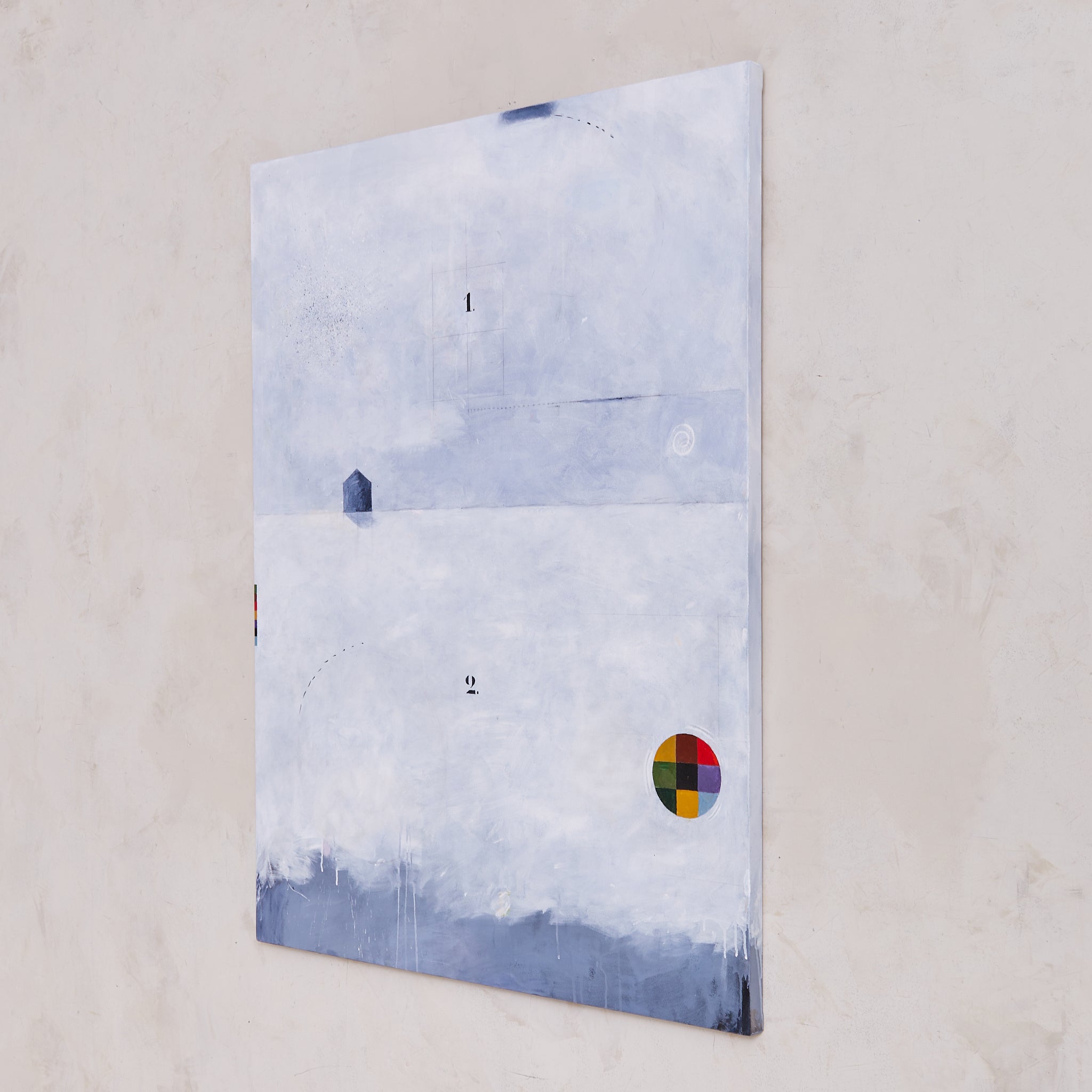 In the artist's words about her process, "When I paint, I travel to a place of fantasy, memory, invention, and illusion. I'm thinking about the duality of the sensory life and the logical life, the mystery and magic of childhood, and the essence of feelings and actions. In the process, I am only a player. The painting makes its own way, and I follow, guiding and polishing, letting the paint squiggle and drip, erase or mystify.”