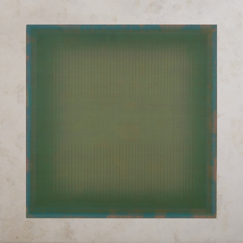 Marc Ross is an American artist from Ohio who received his BFA from Ohio University, attended graduate school at the University of Chicago and completed his MFA in painting at Kent State University. Over the course of his career, he worked as a designer, freelancer, muralist, faux-finish painter and taught high school for sixteen years. His paintings are best known for their complex layers of iridescent colors, which he then sands down using an electric sander to reveal layers once obscured. The effect is a luminous glow when viewed from afar.