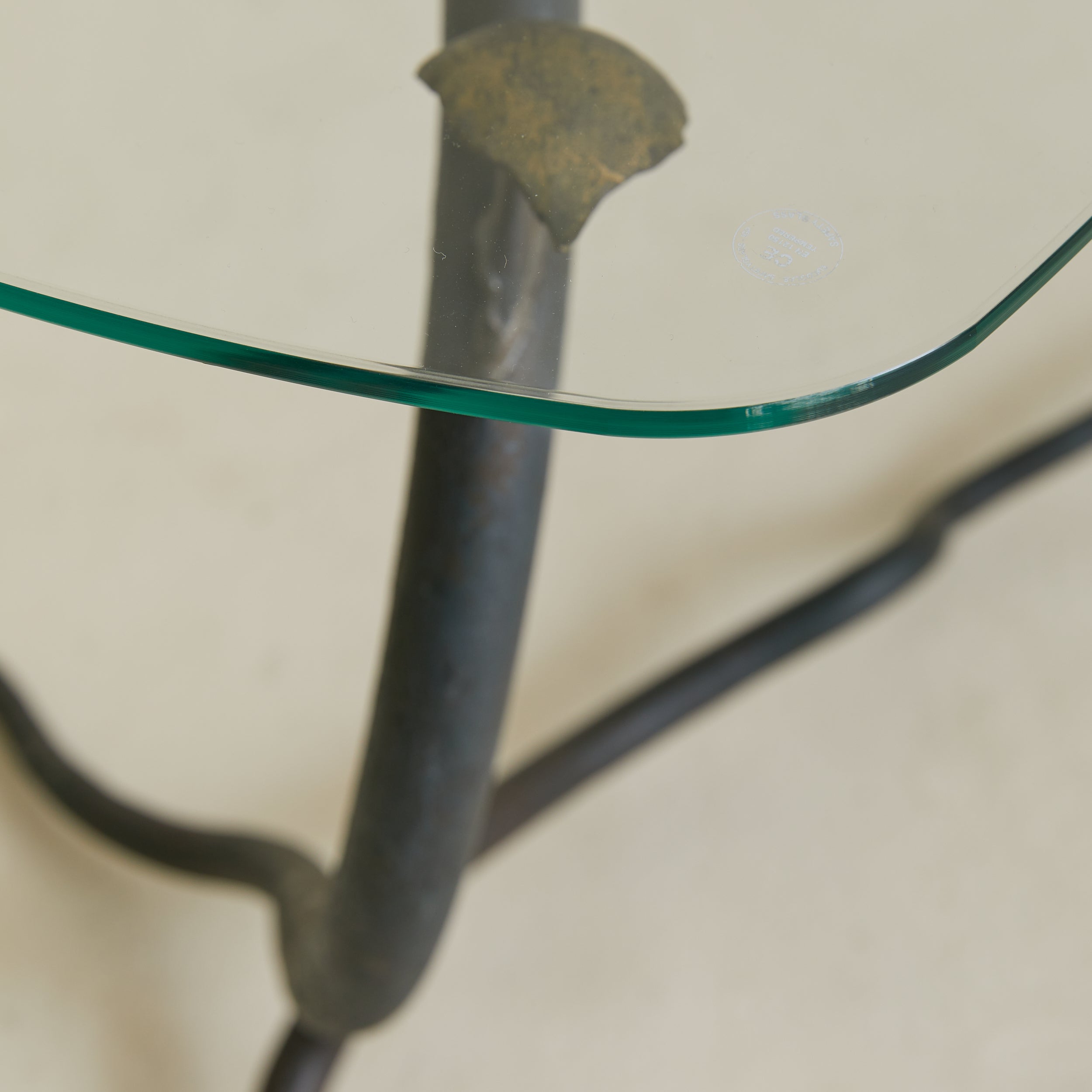 Belgian Branch-Form Wrought Iron Side Table with Glass Top, 1970s