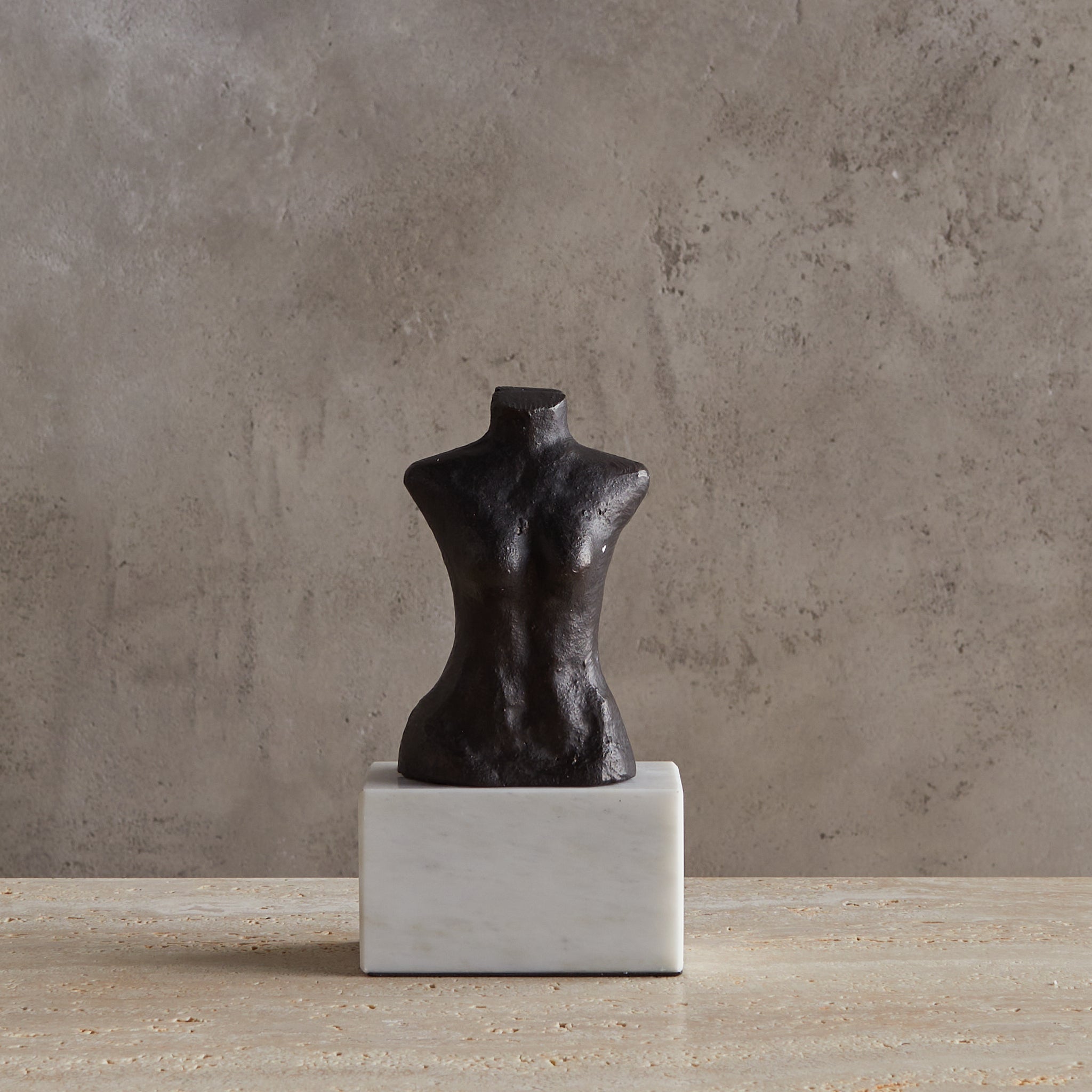 Bronze-Finish Torso Sculpture on Marble Pedestal