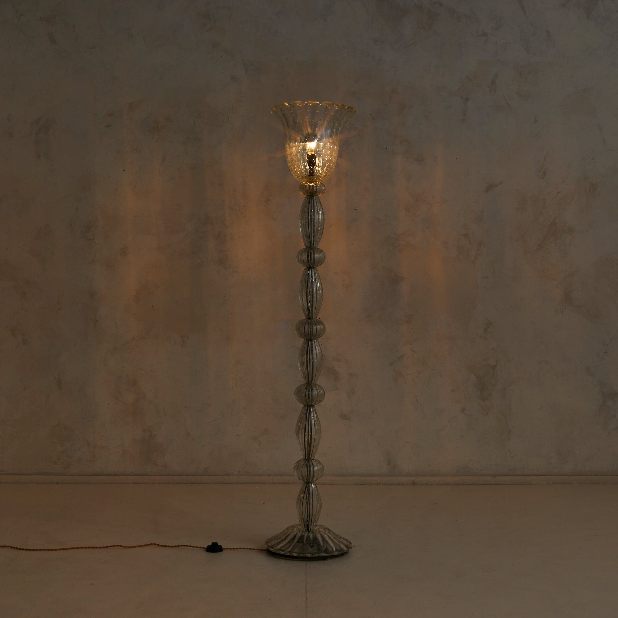 Bullicante Murano Glass Torchiere Floor Lamp in the Manner of Barovier & Toso