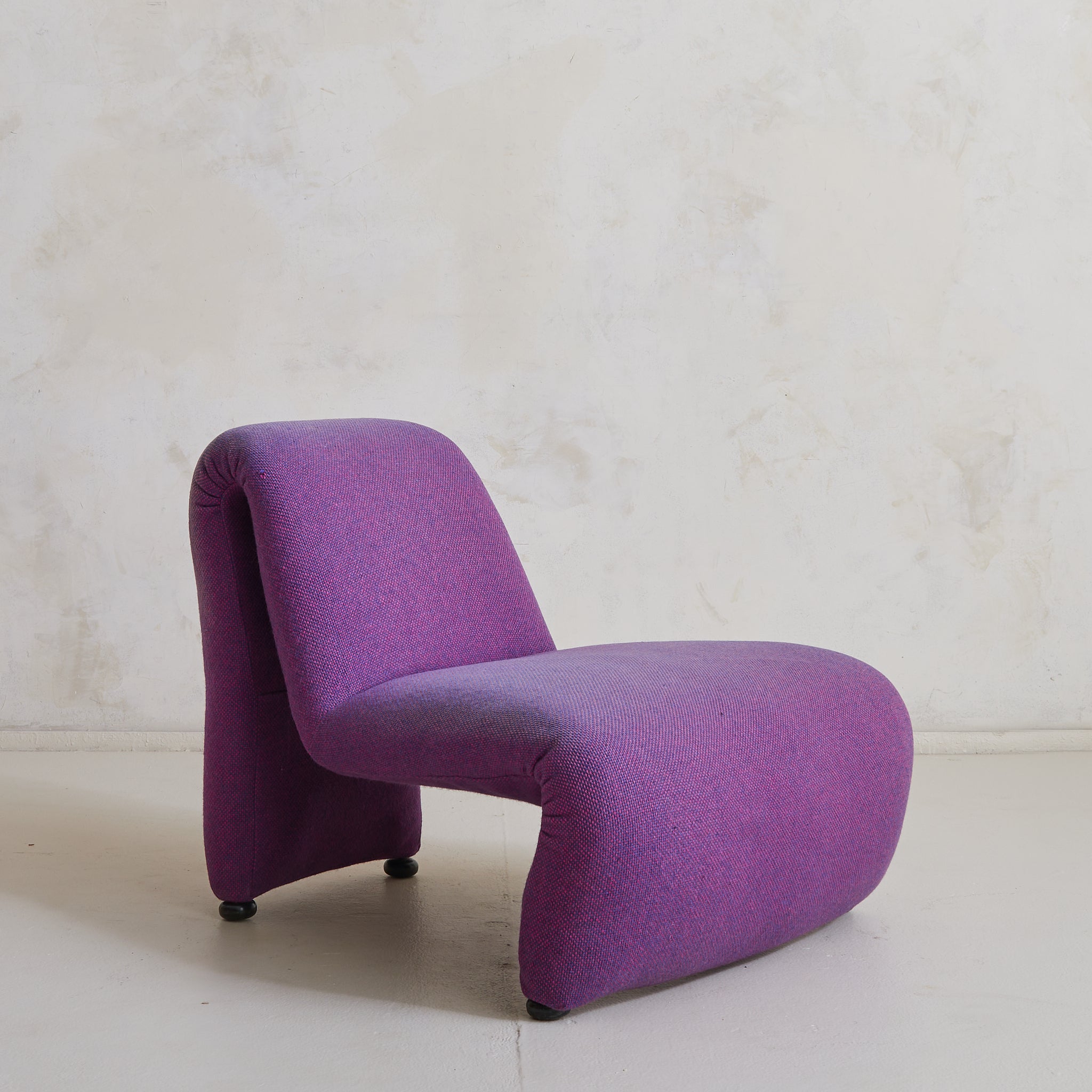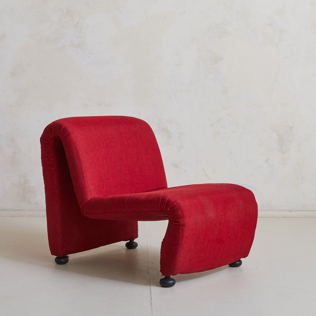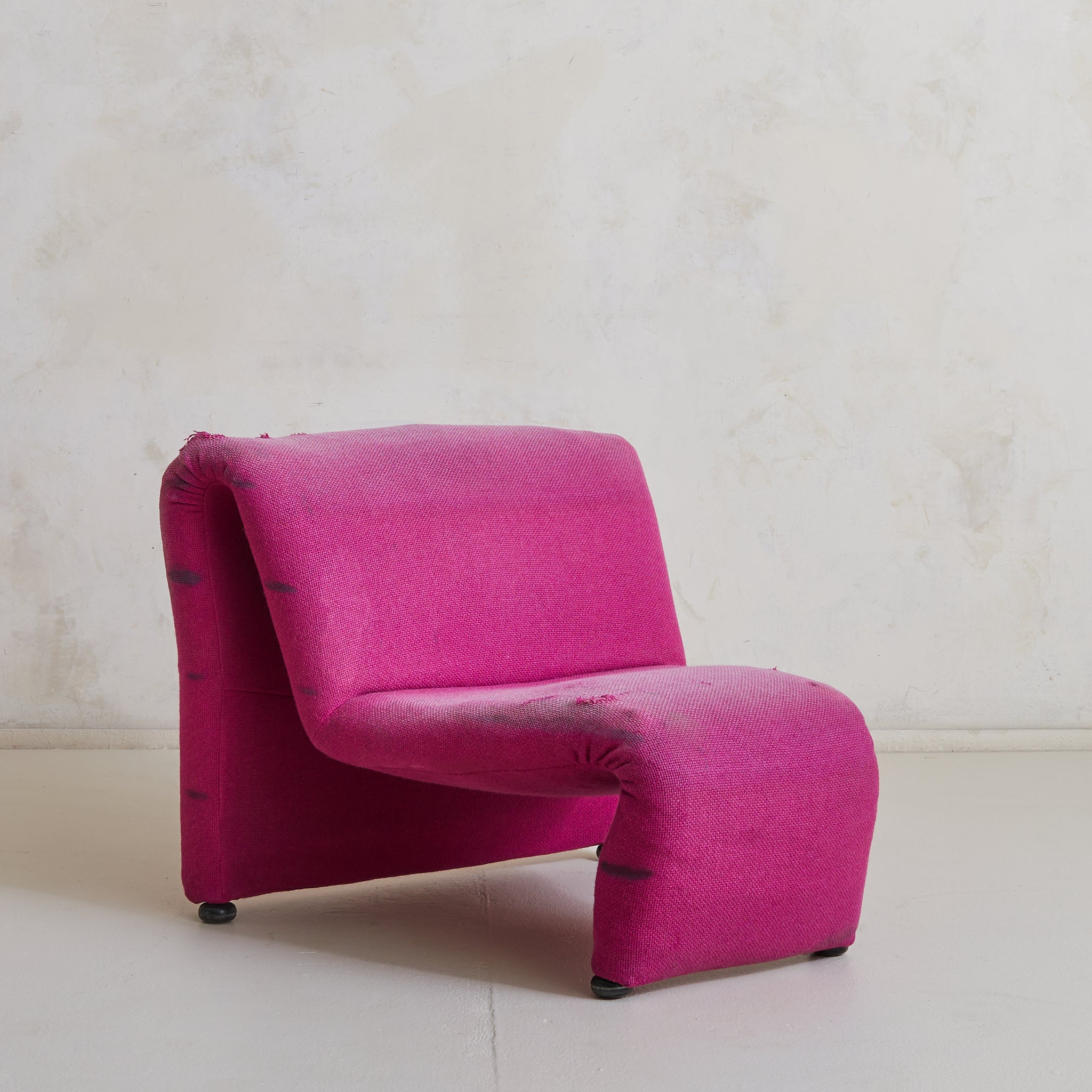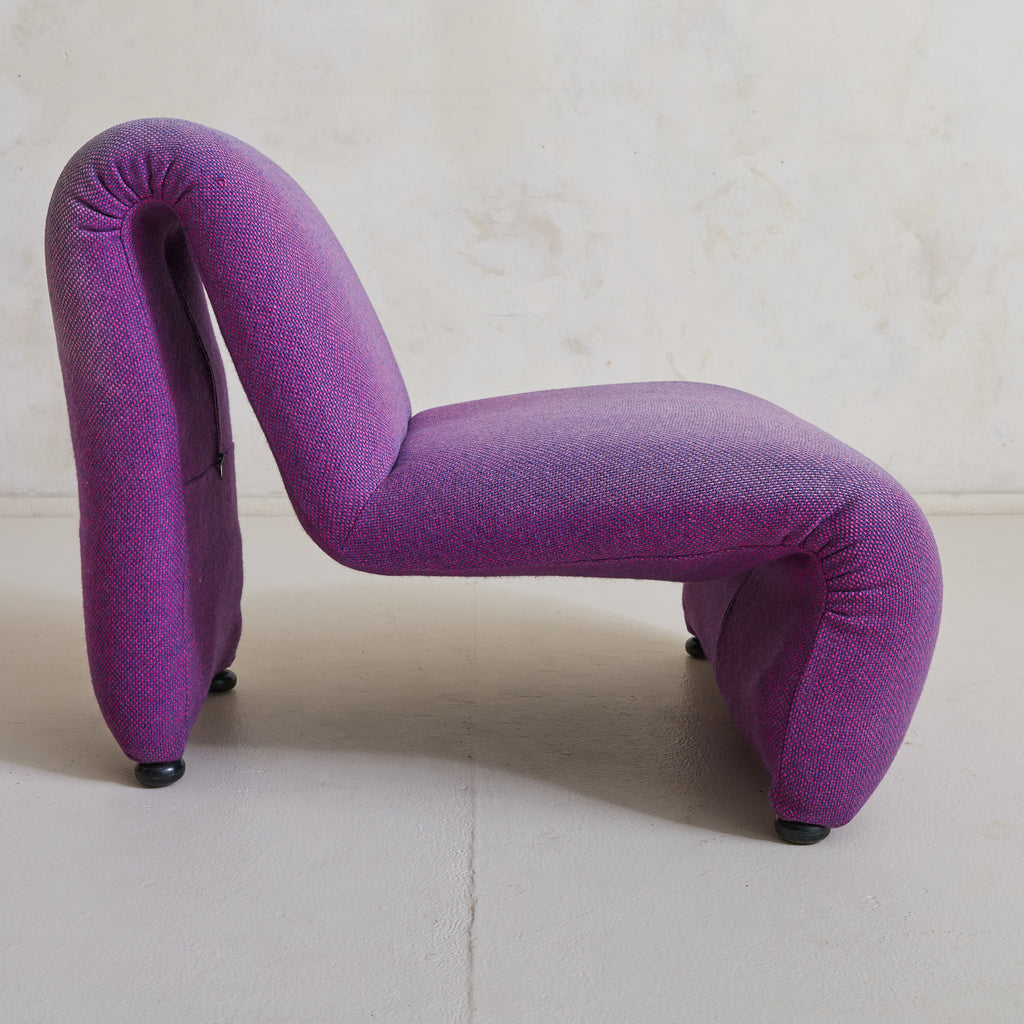 This rare nine-piece serpentine sectional—attributed to French designer Étienne Fermigier, 1970s—channels the modular exuberance of postmodern living. Each bulbous module retains its original upholstery in a saturated spectrum from oxblood to fuchsia to Yves Klein blue, resting playfully on Fermigier’s signature rubber ball feet.