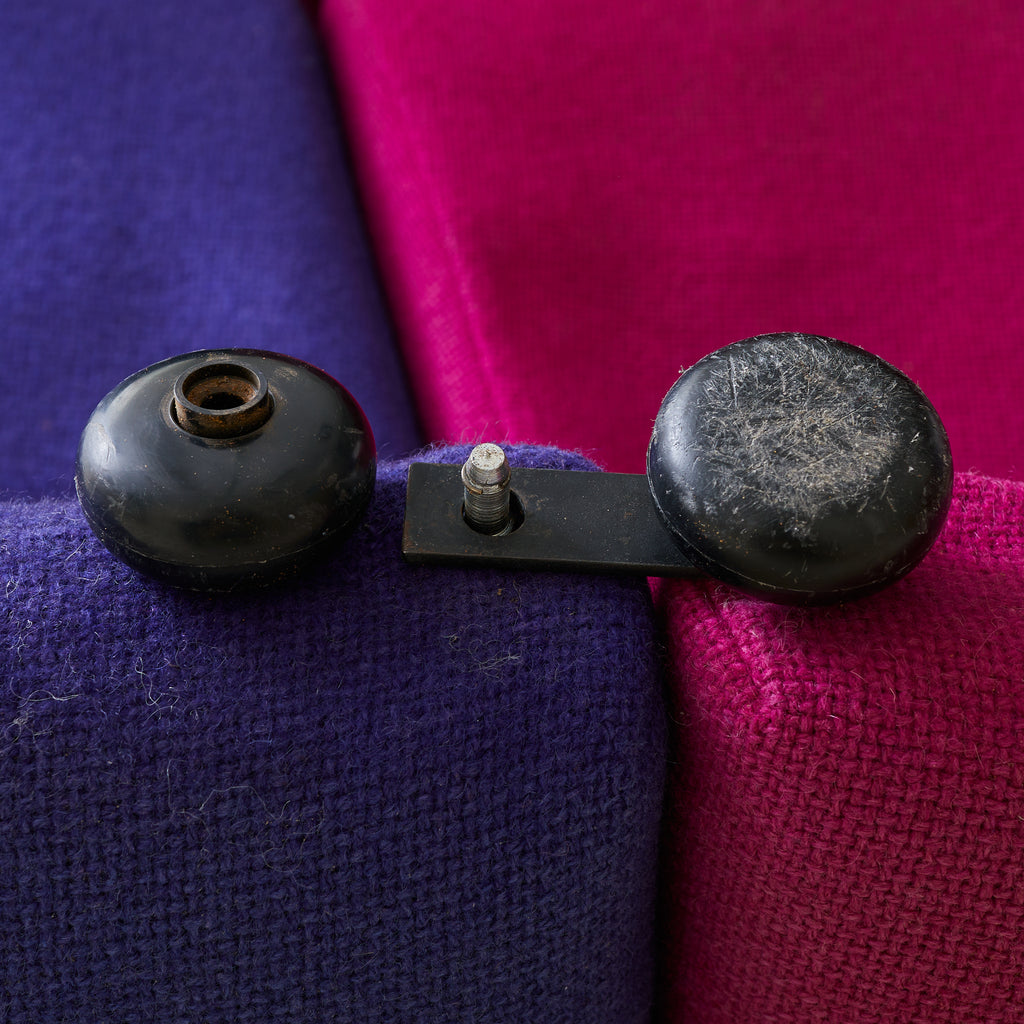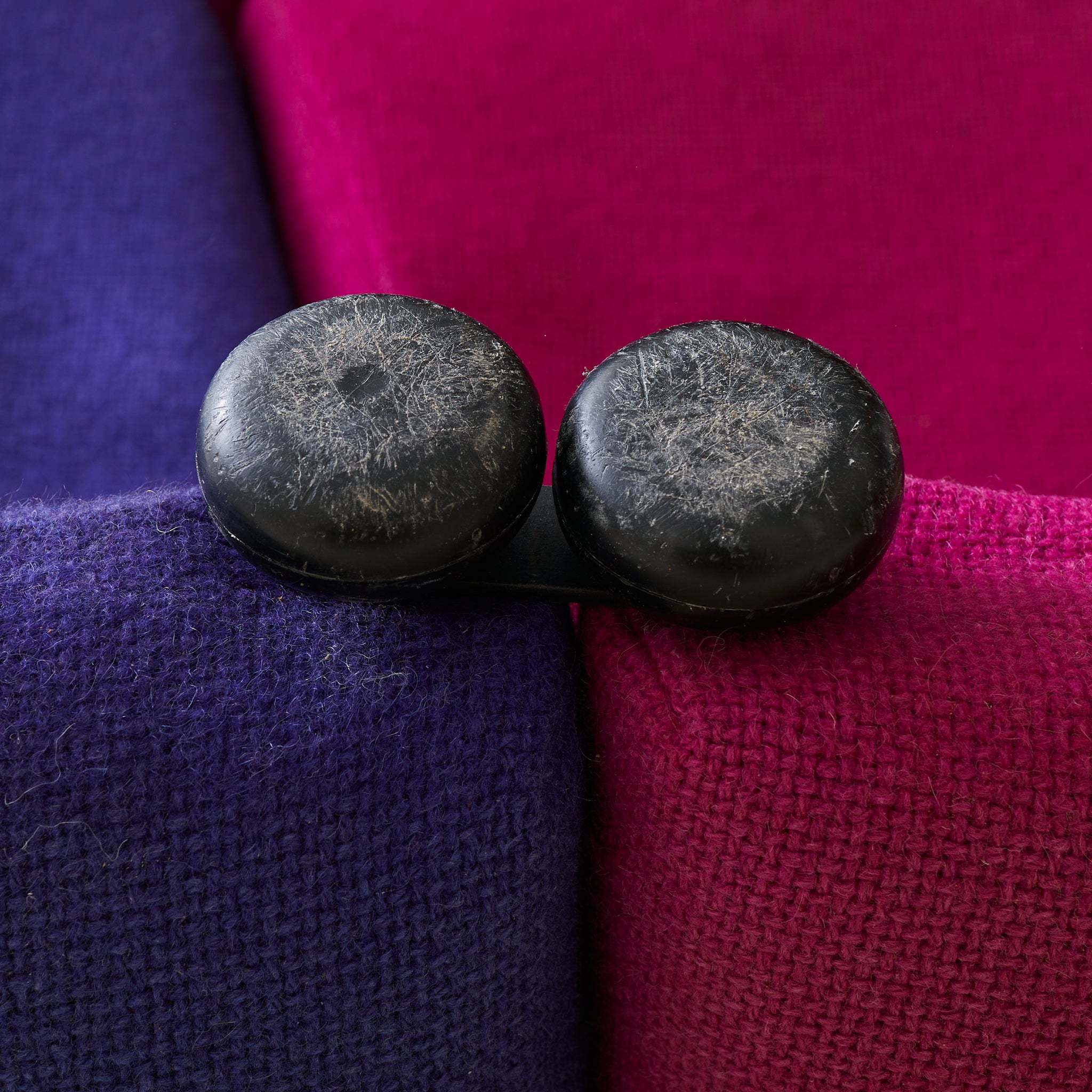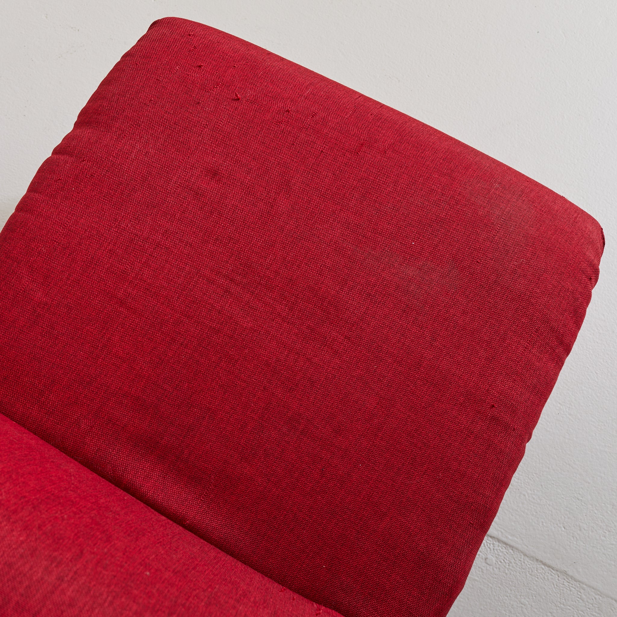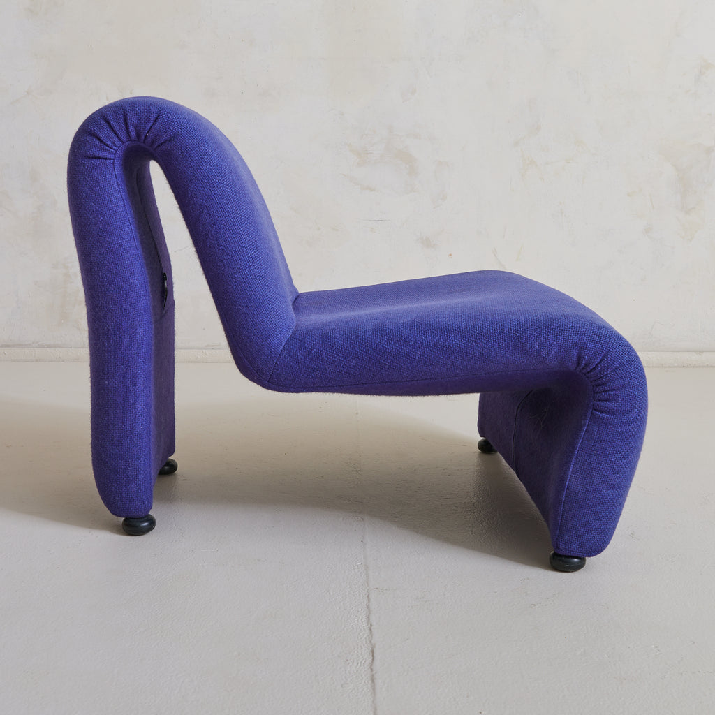 This rare nine-piece serpentine sectional—attributed to French designer Étienne Fermigier, 1970s—channels the modular exuberance of postmodern living. Each bulbous module retains its original upholstery in a saturated spectrum from oxblood to fuchsia to Yves Klein blue, resting playfully on Fermigier’s signature rubber ball feet.