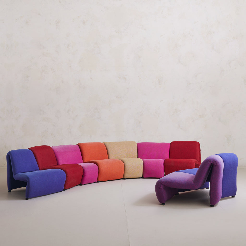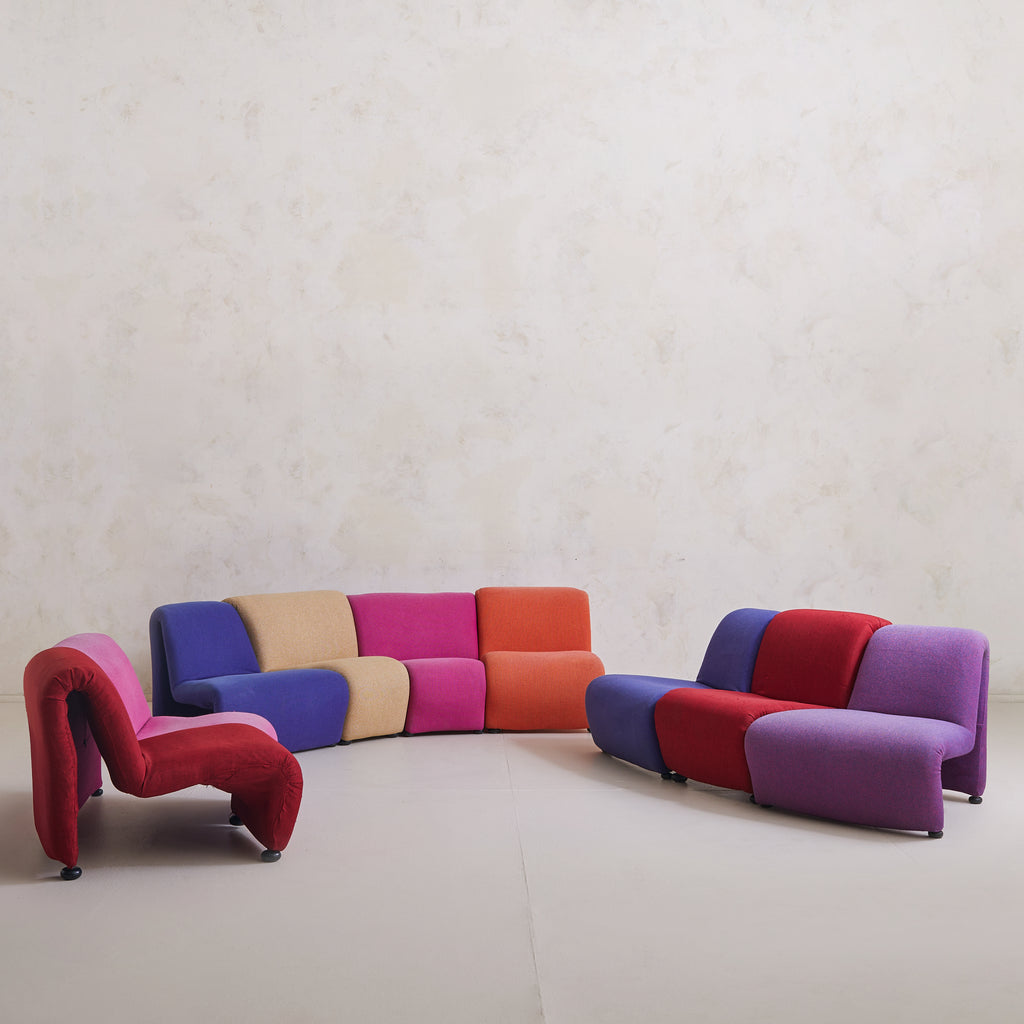 Sculptural and unapologetically expressive, the composition morphs with placement, offering endless configurations. A bold architectural gesture disguised as a place to lounge.