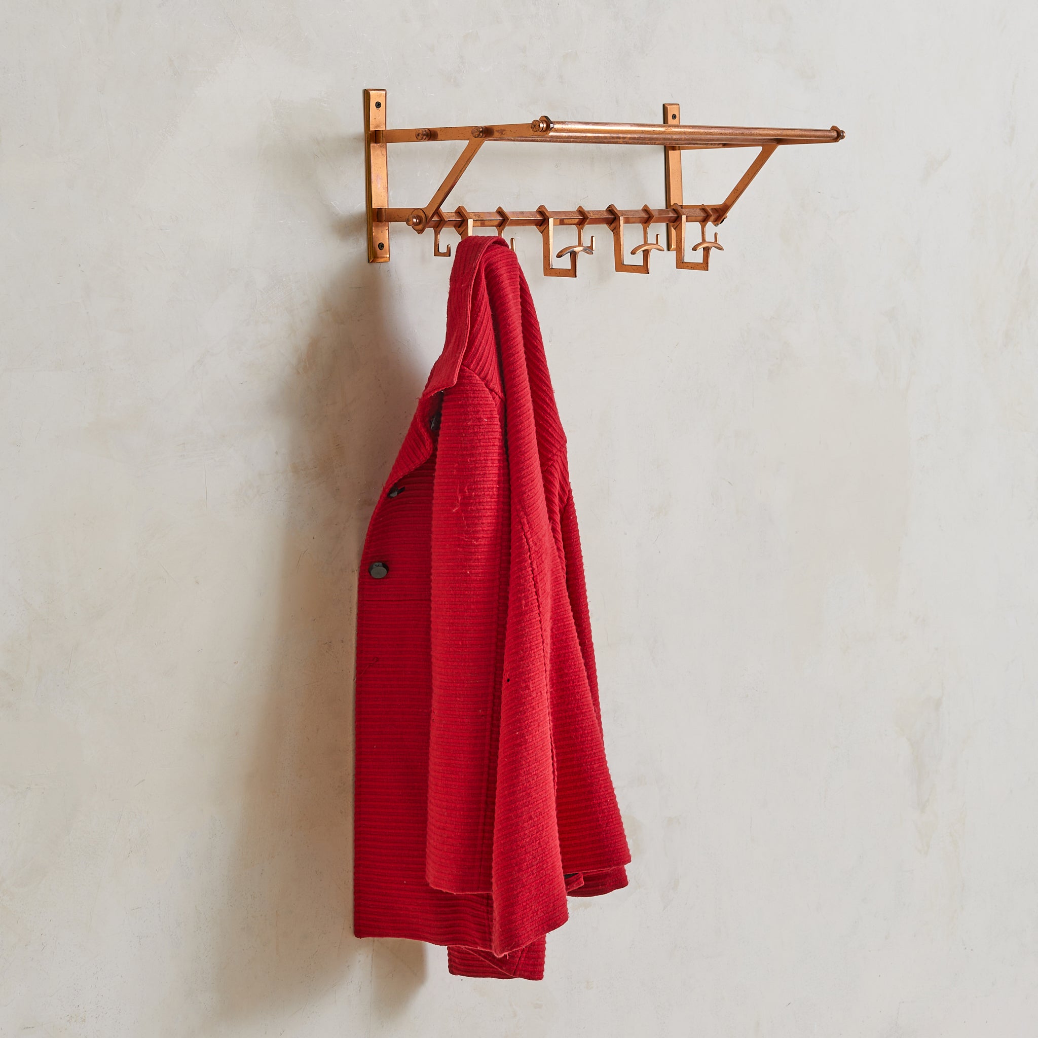 French Art Deco Copper Wall-Mounted Coat Rack, 1930s