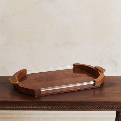 French Art Deco Oak + Lucite Tray, 1940s