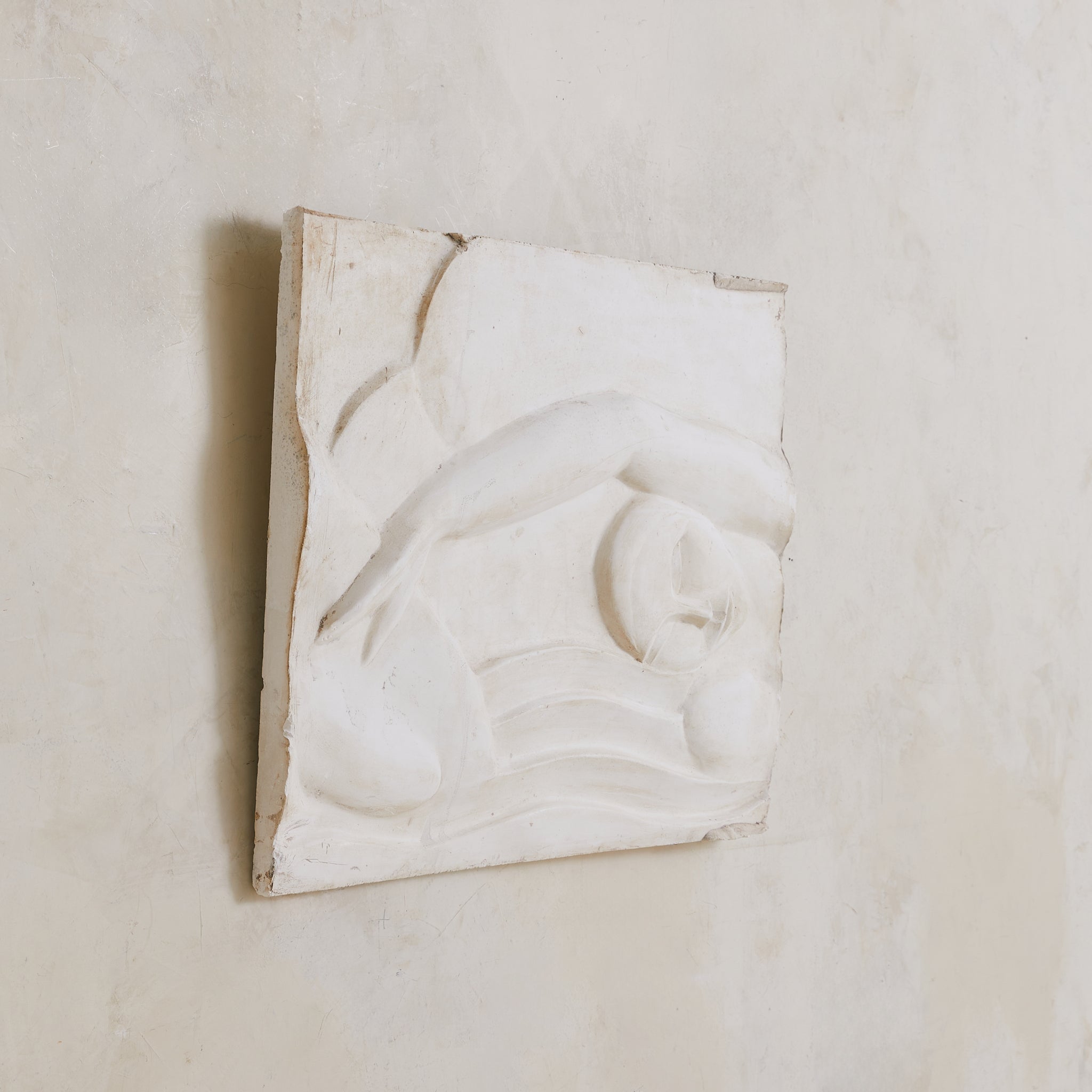 French Art Deco Plaster Bas-Relief Wall Sculpture, 1940s