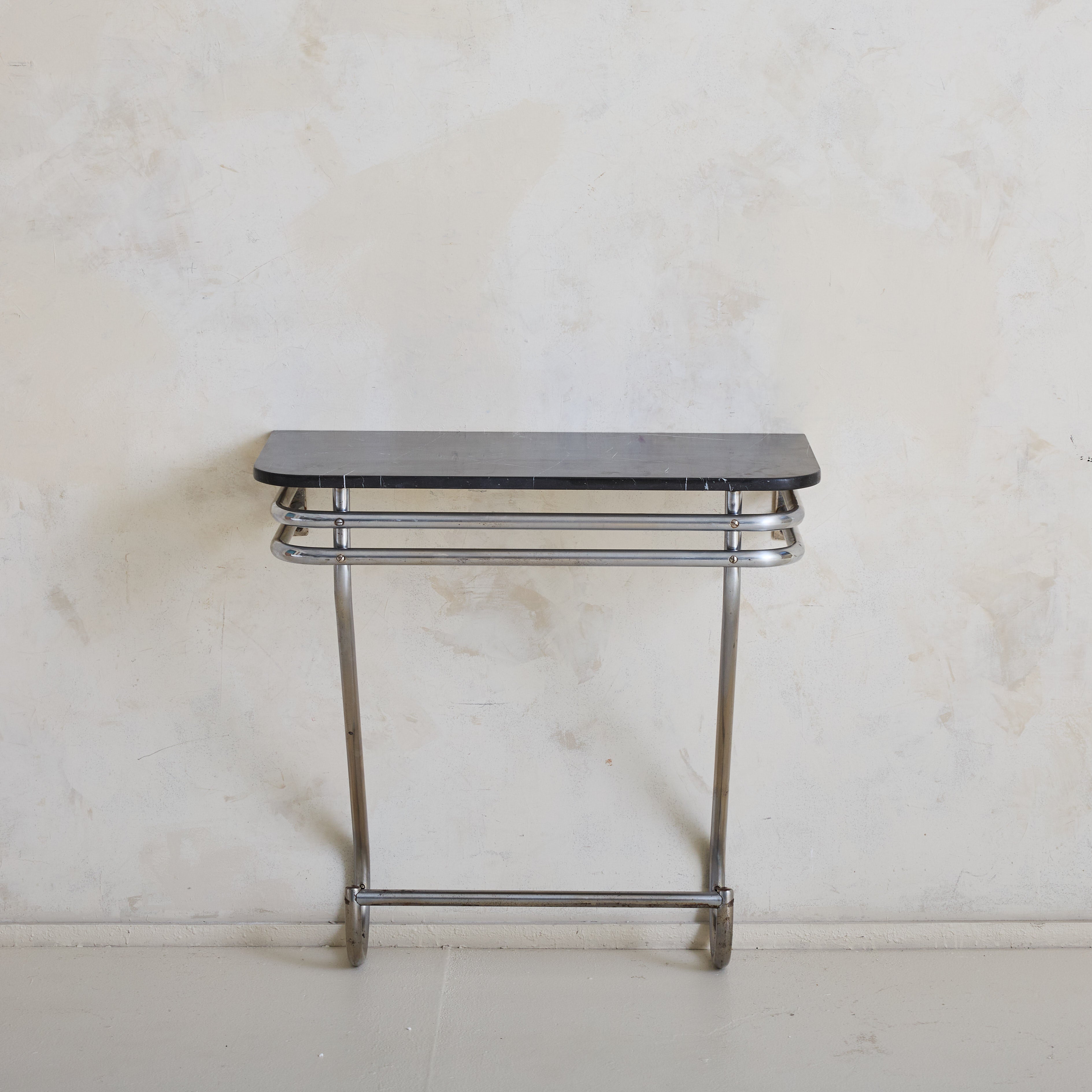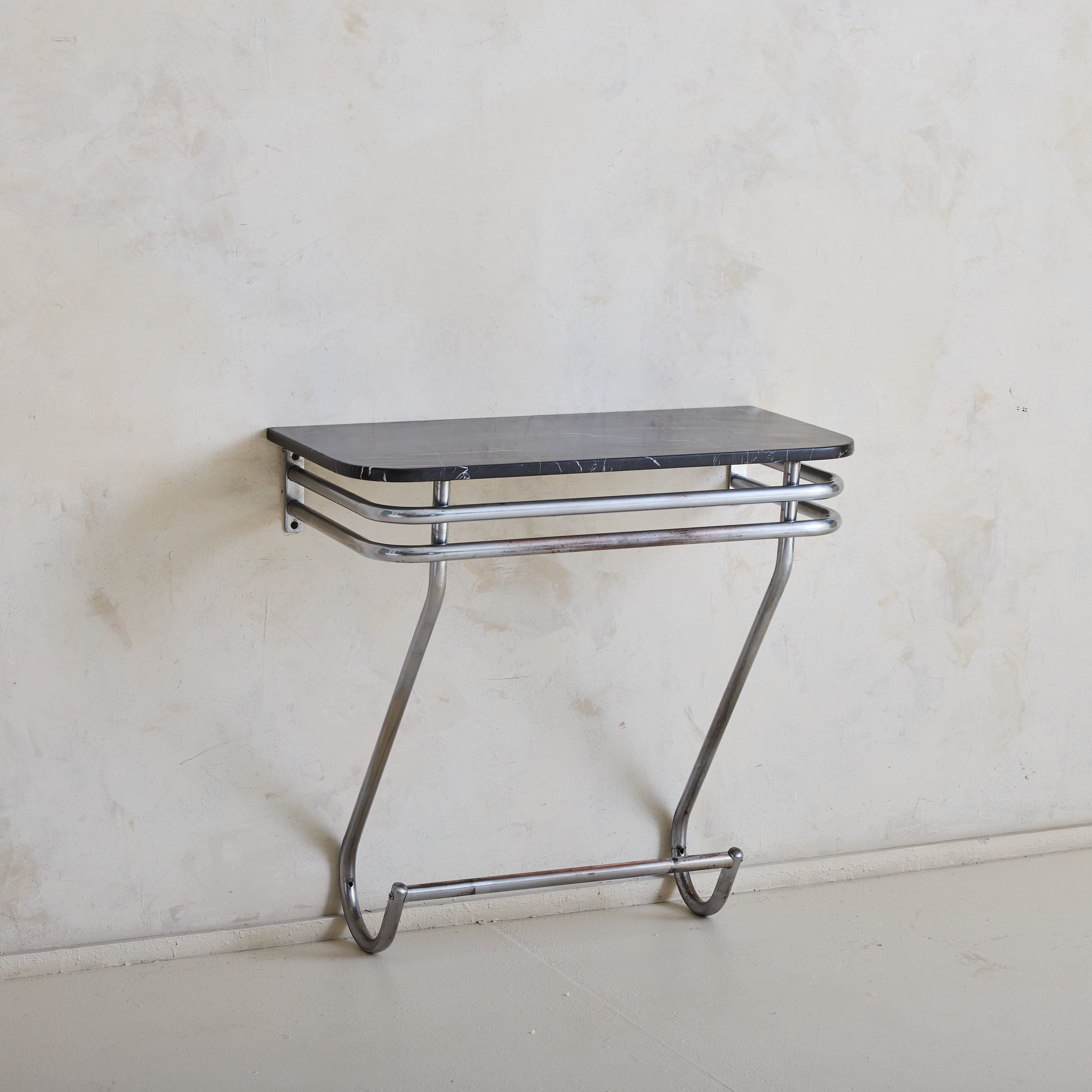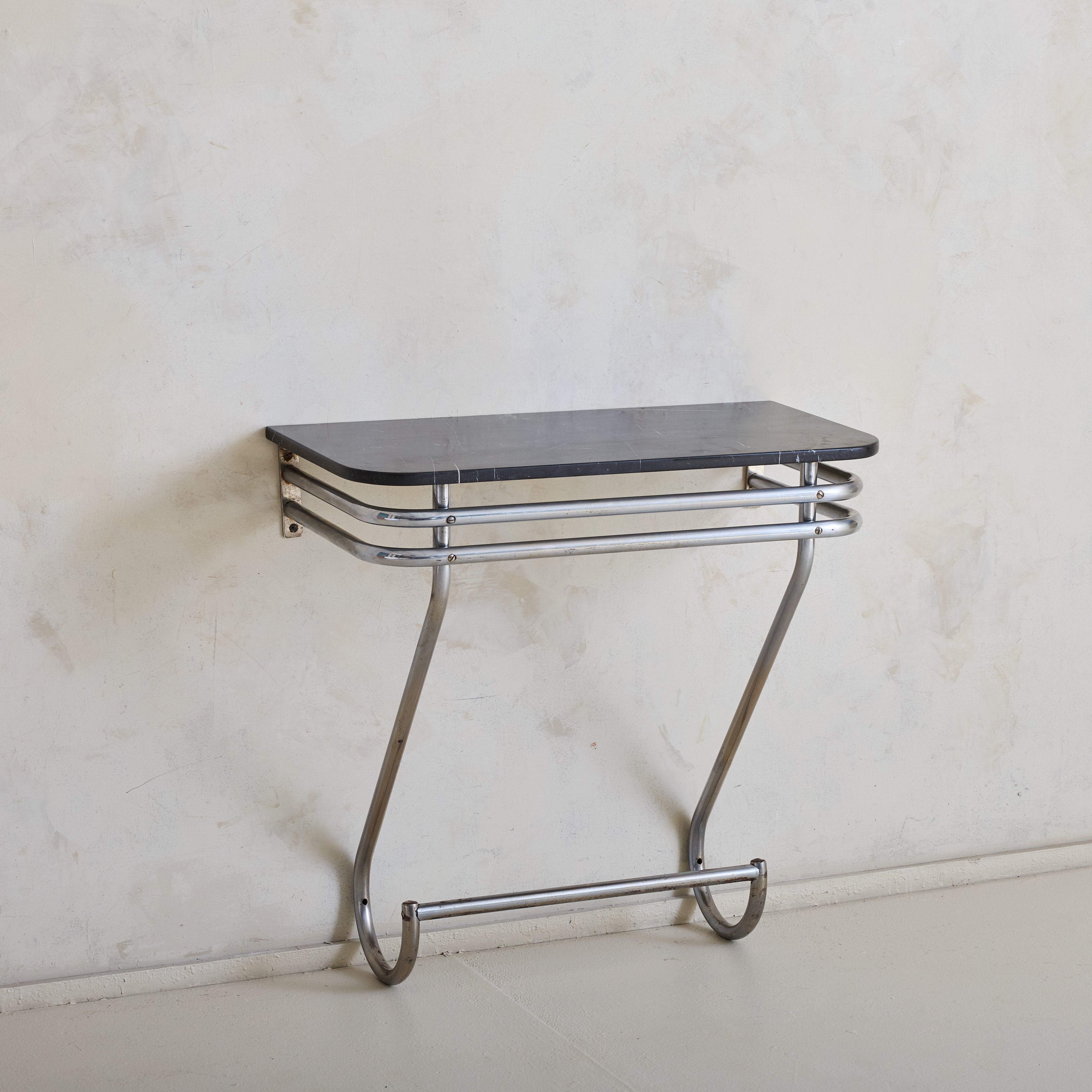 French Art Deco Wall-Mounted Console with Black Marble Top, 1940s - 2 Available