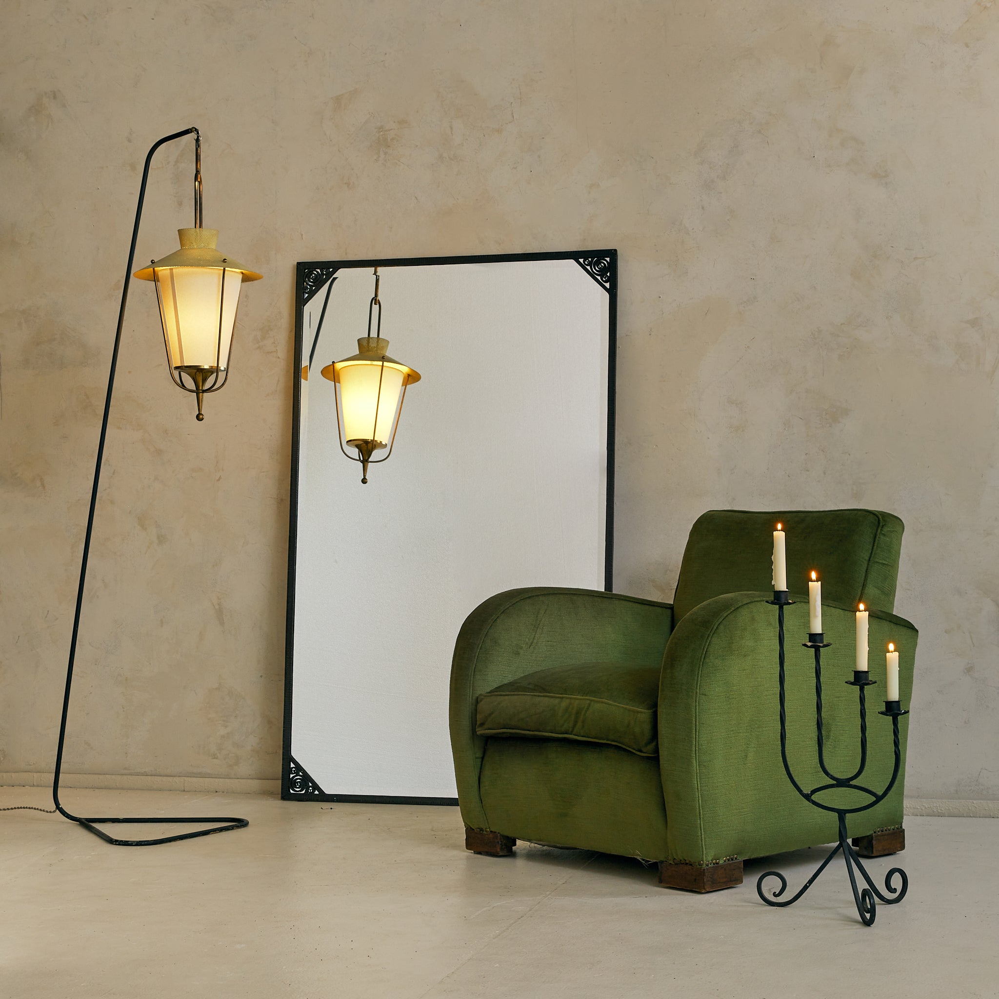 French Art Deco Wrought Iron Mirror, 1940s
