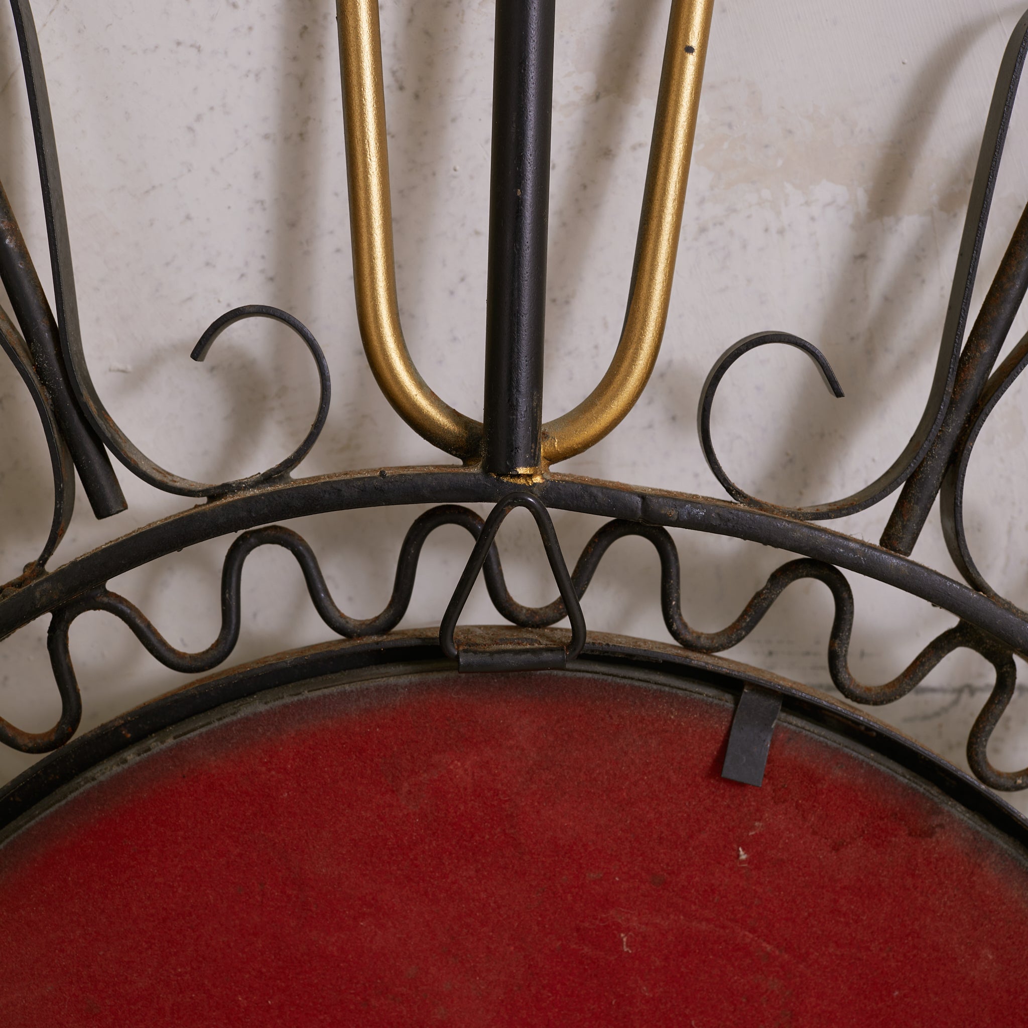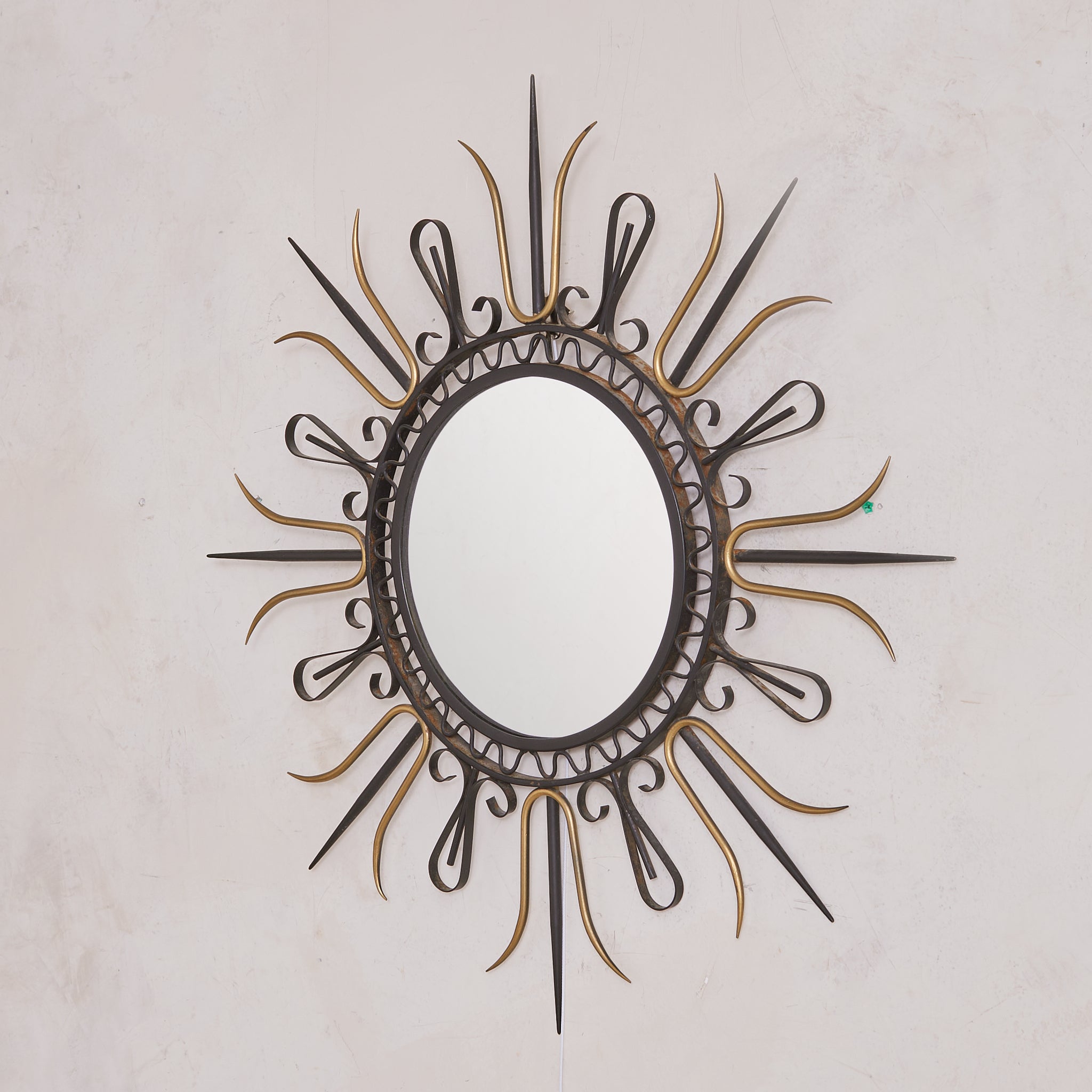 French Black Iron + Gilt Sunburst Wall Mirror, 1950s