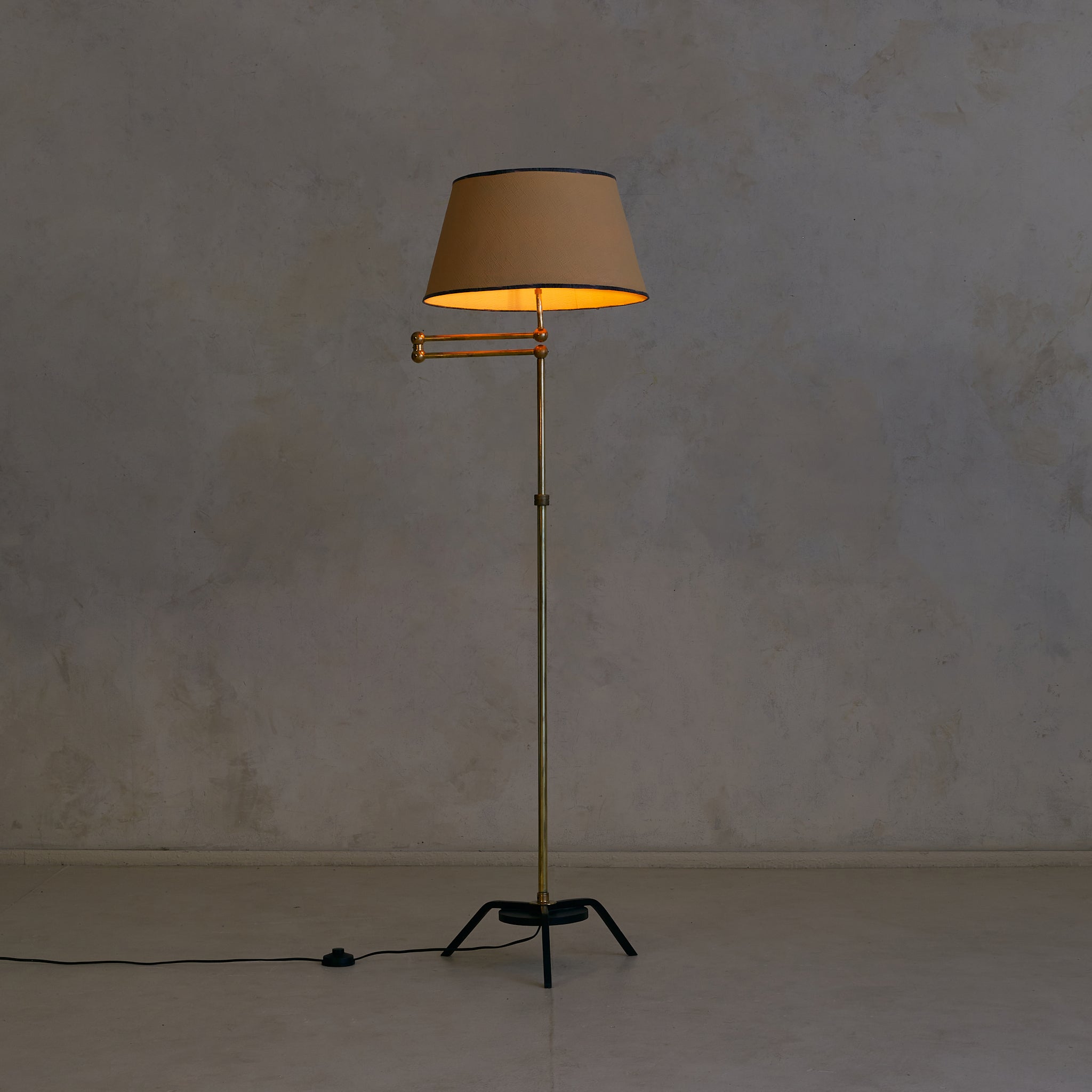 French Brass Articulating Floor Lamp with Shade, 1960s