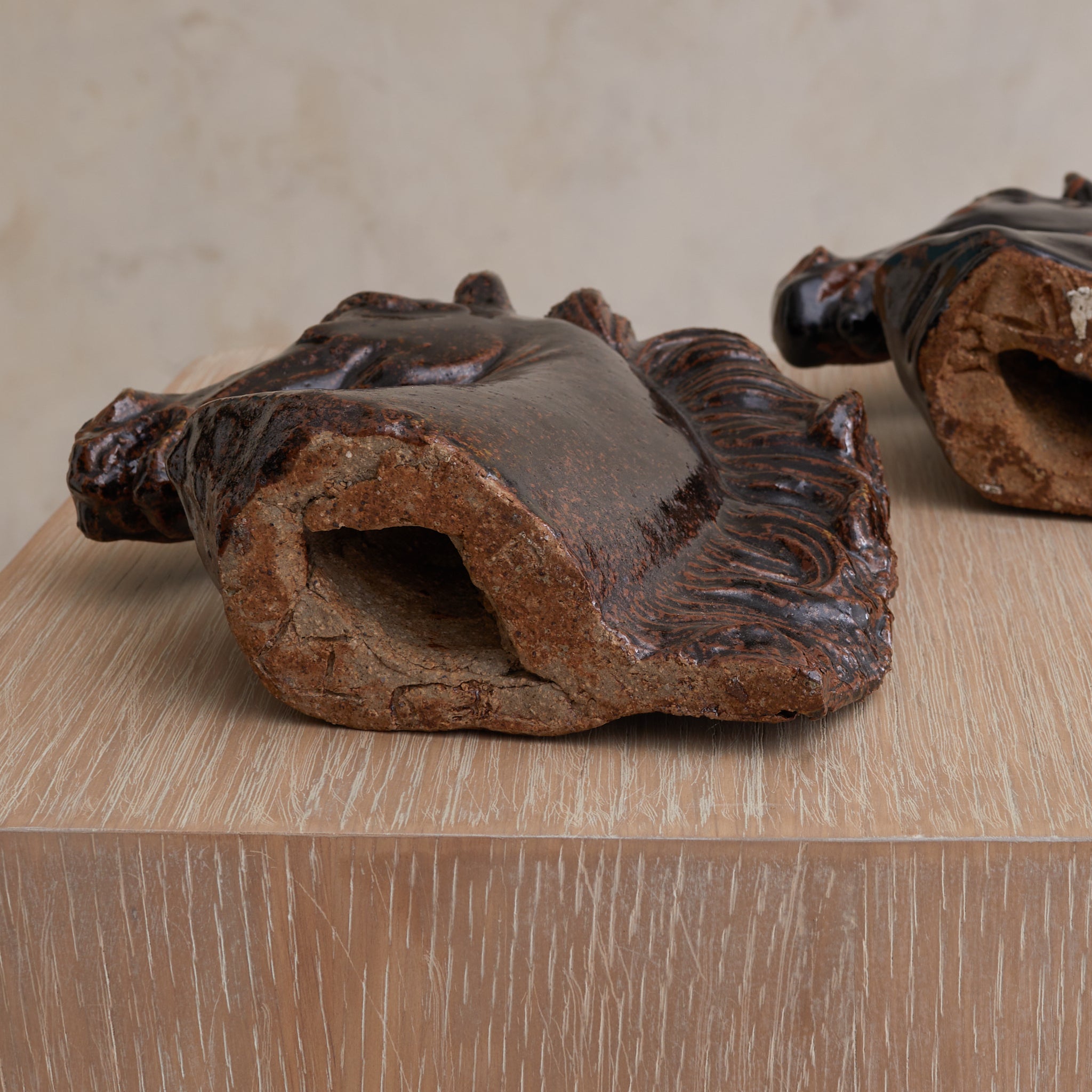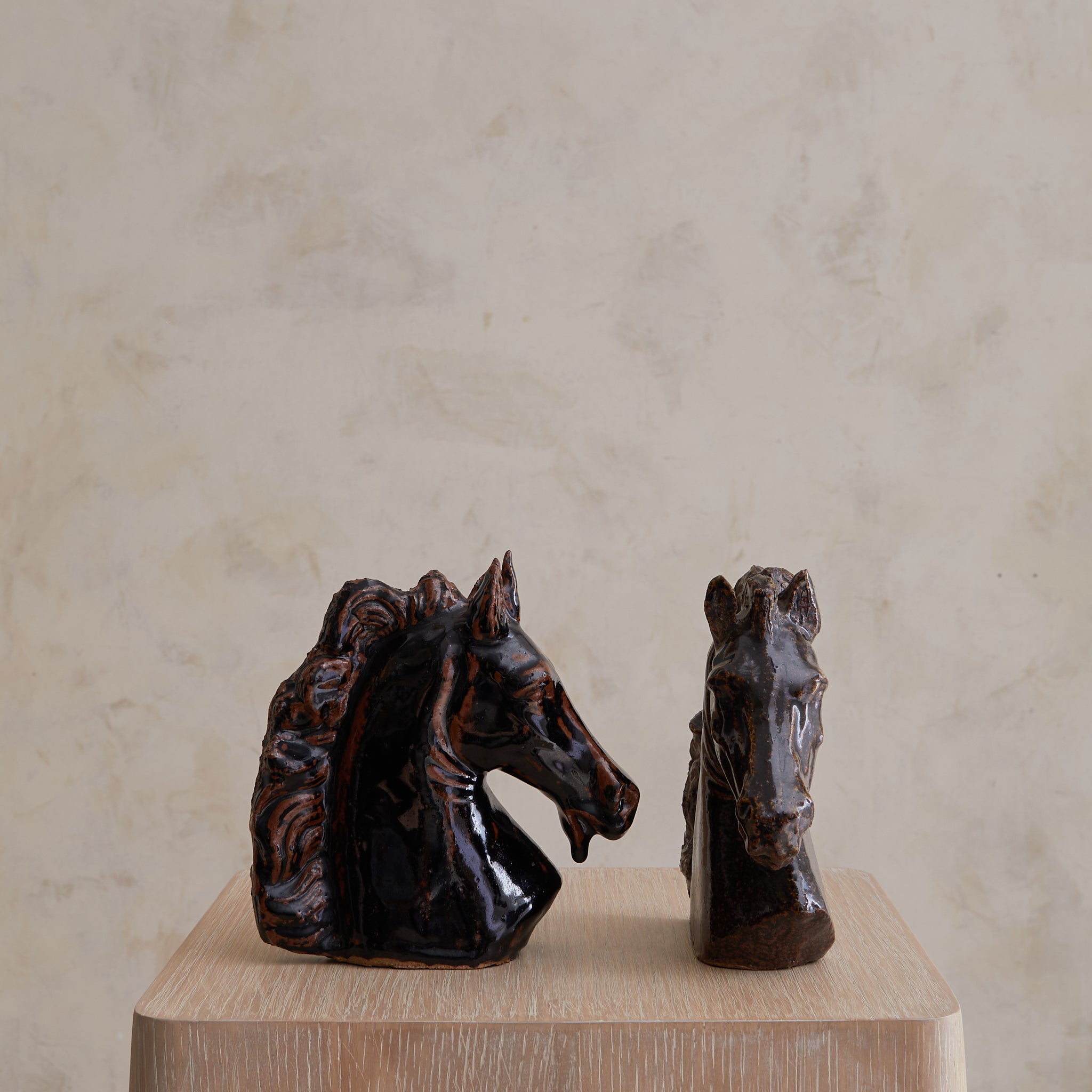 French Brown Ceramic Horse Head Sculpture, 1960s - 2 Available