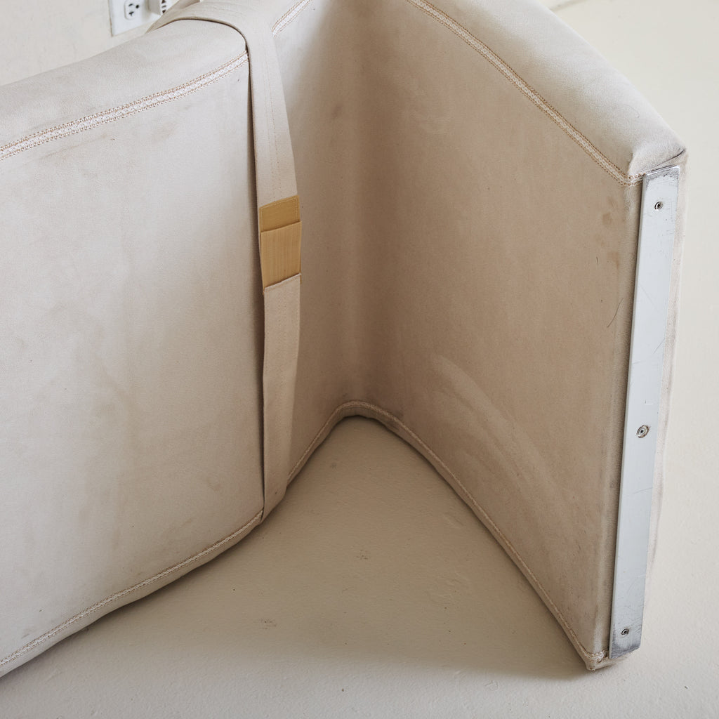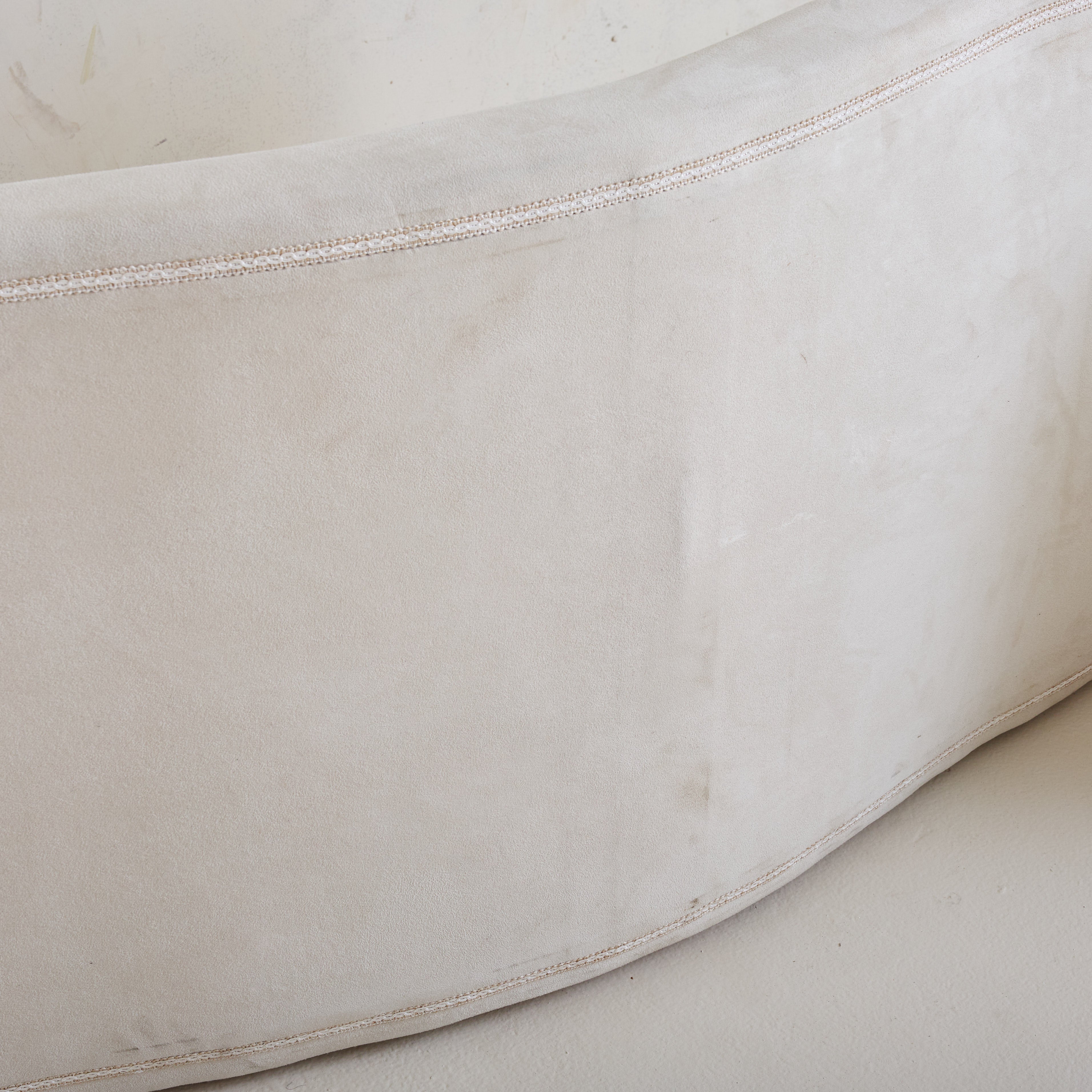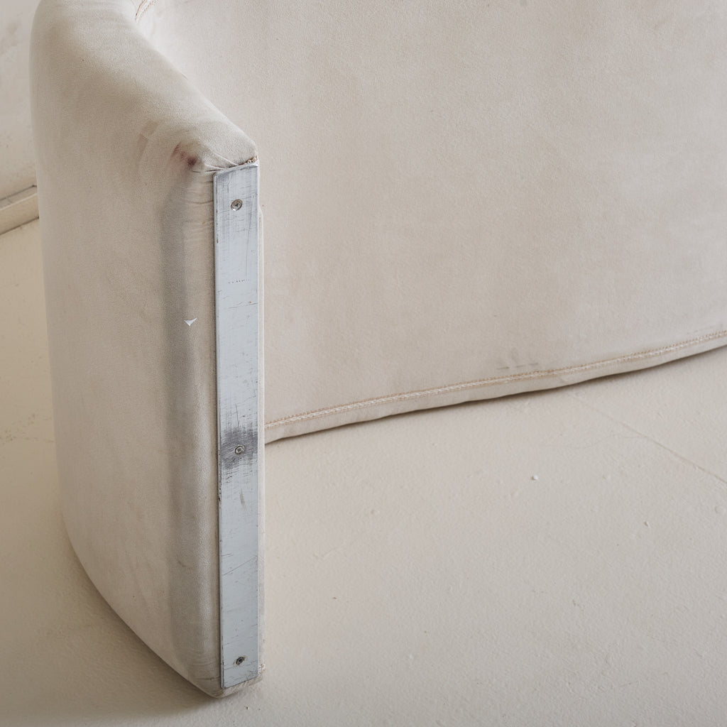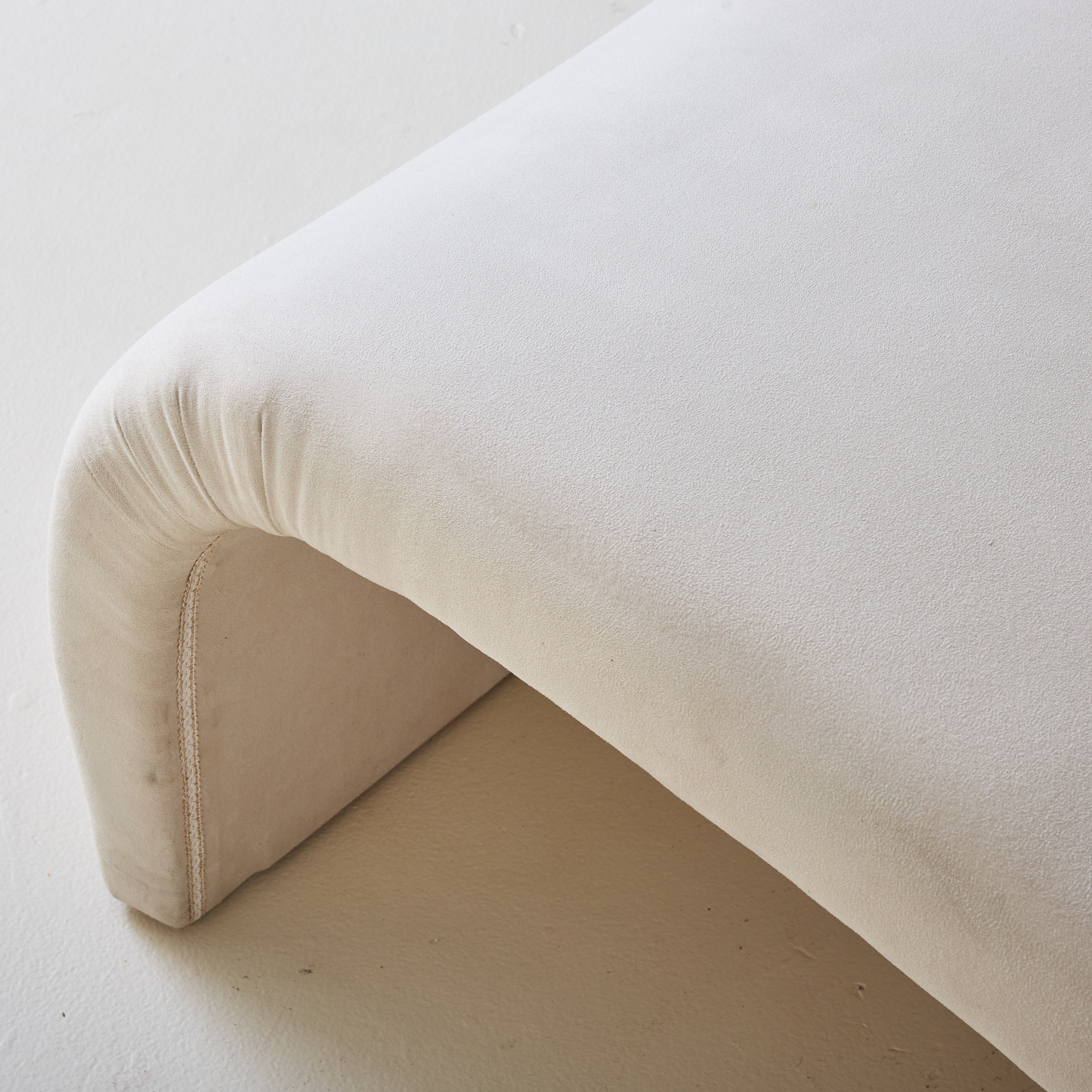The 'Djinn' chaise lounge, designed by Olivier Mourgue for Airborne International in 1965, is an icon of futuristic and Space Age design. Characterized by its fluid, low-slung silhouette, the Djinn chair features a tubular steel frame and is upholstered in its original ivory fabric.