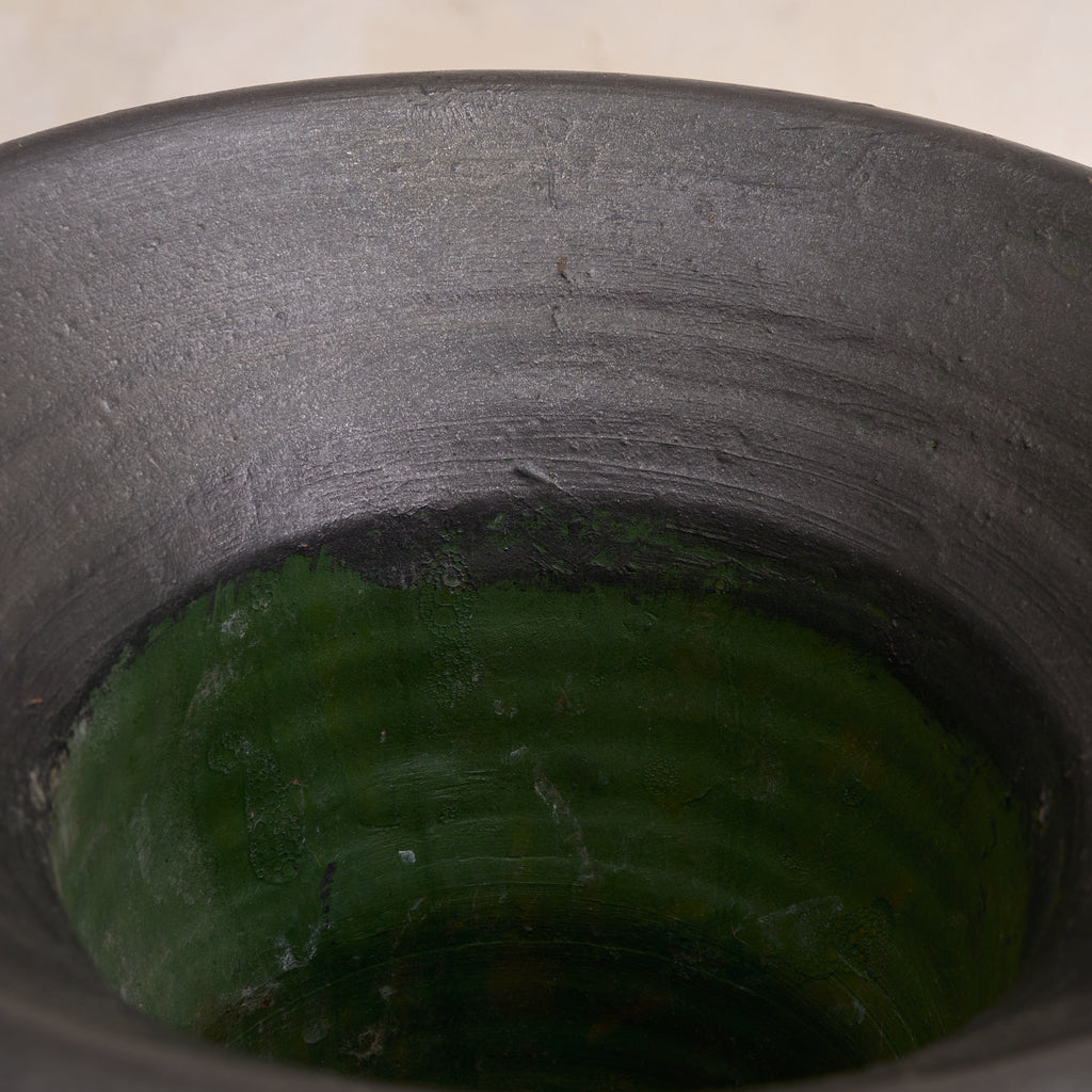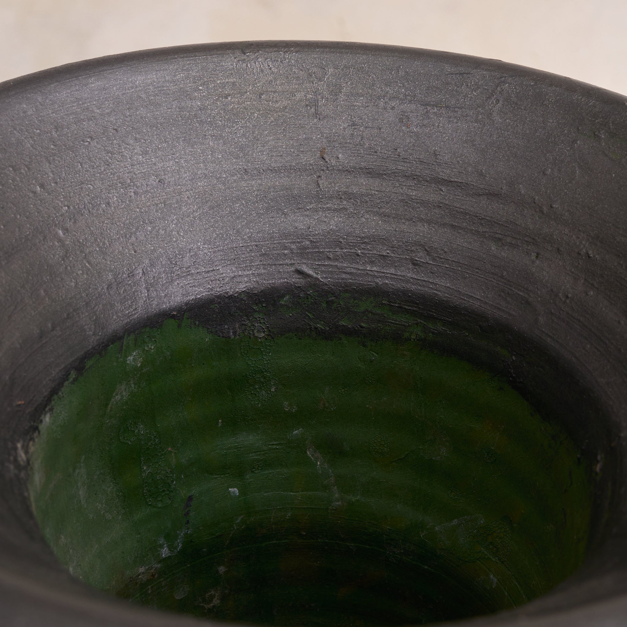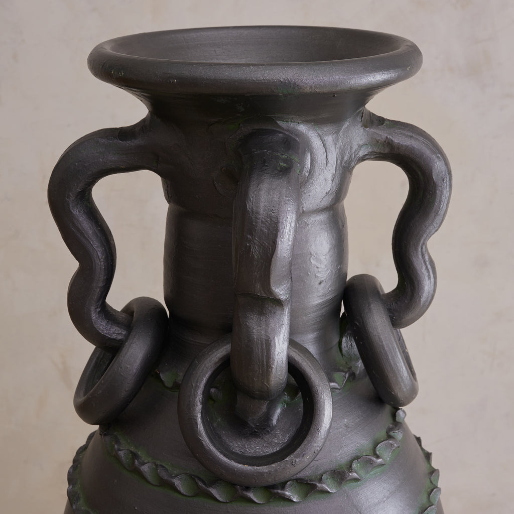 French Four-Handle Charcoal + Green Terracotta Vase, 1960s