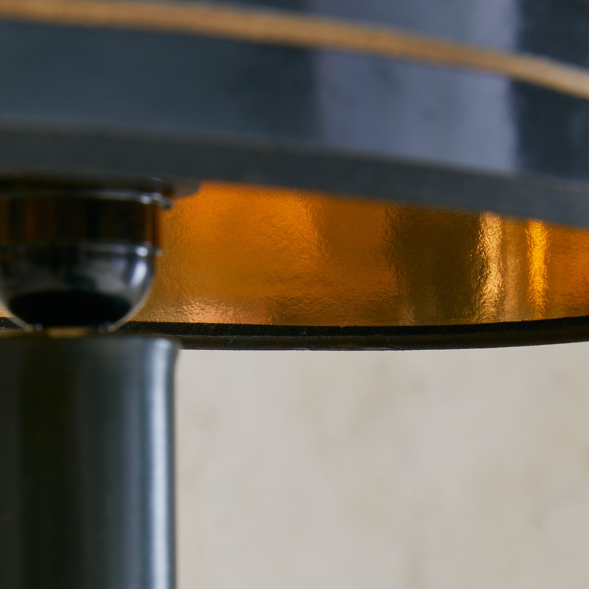 When lit, the shade’s golden interior casts a warm, atmospheric glow.