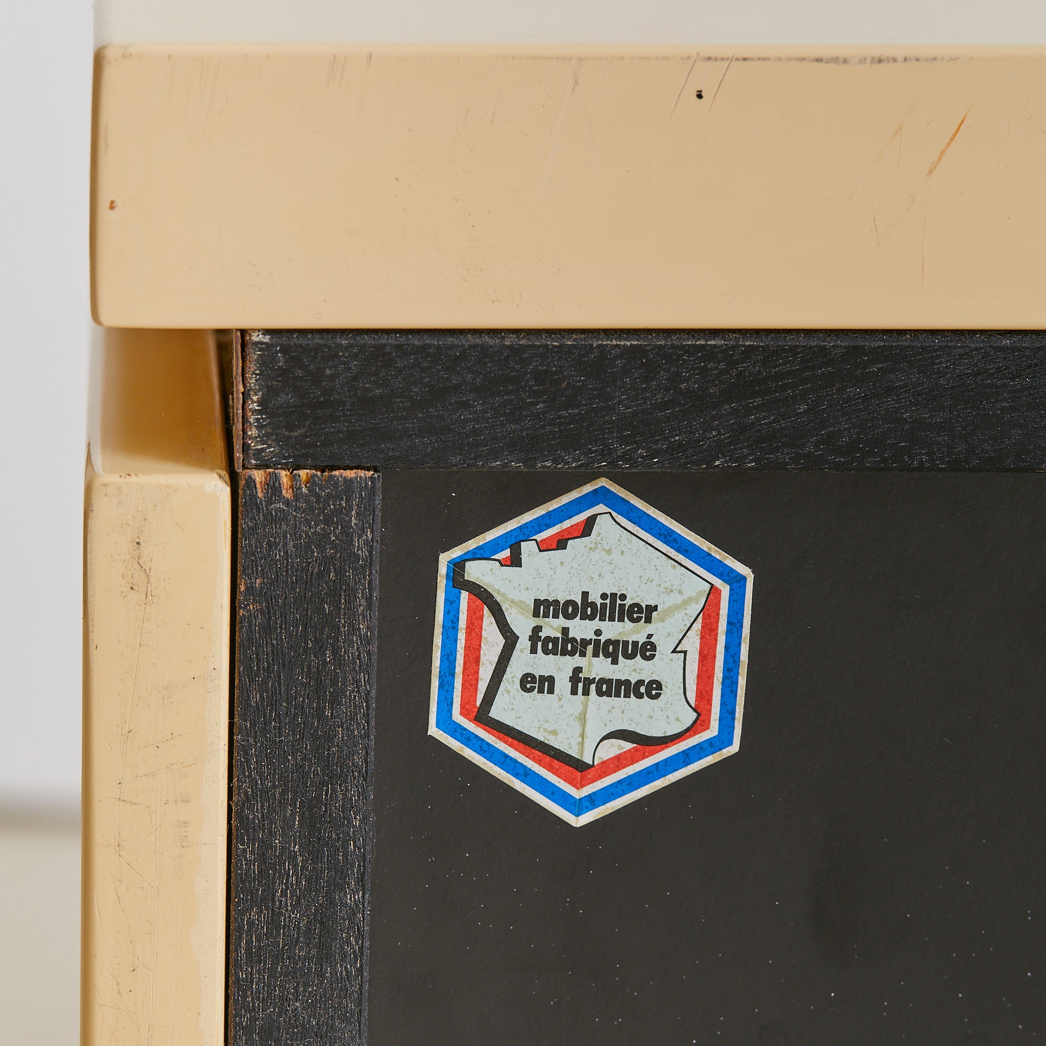 French Ivory Lacquer + Brass Bedside Table by Jean Claude Mahey, 1970s - 2 Available