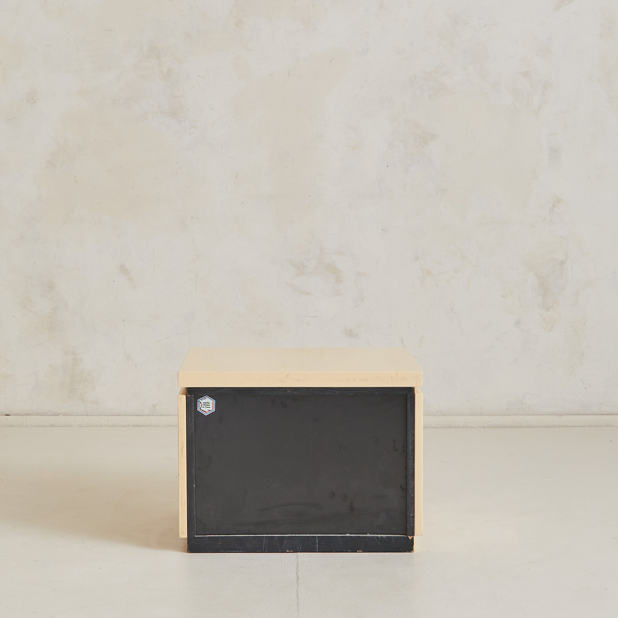 Style beside a low platform bed or pair with a deep sculptural armchair. The compact, monolithic form and luminous finish complement minimalist or richly layered interiors.