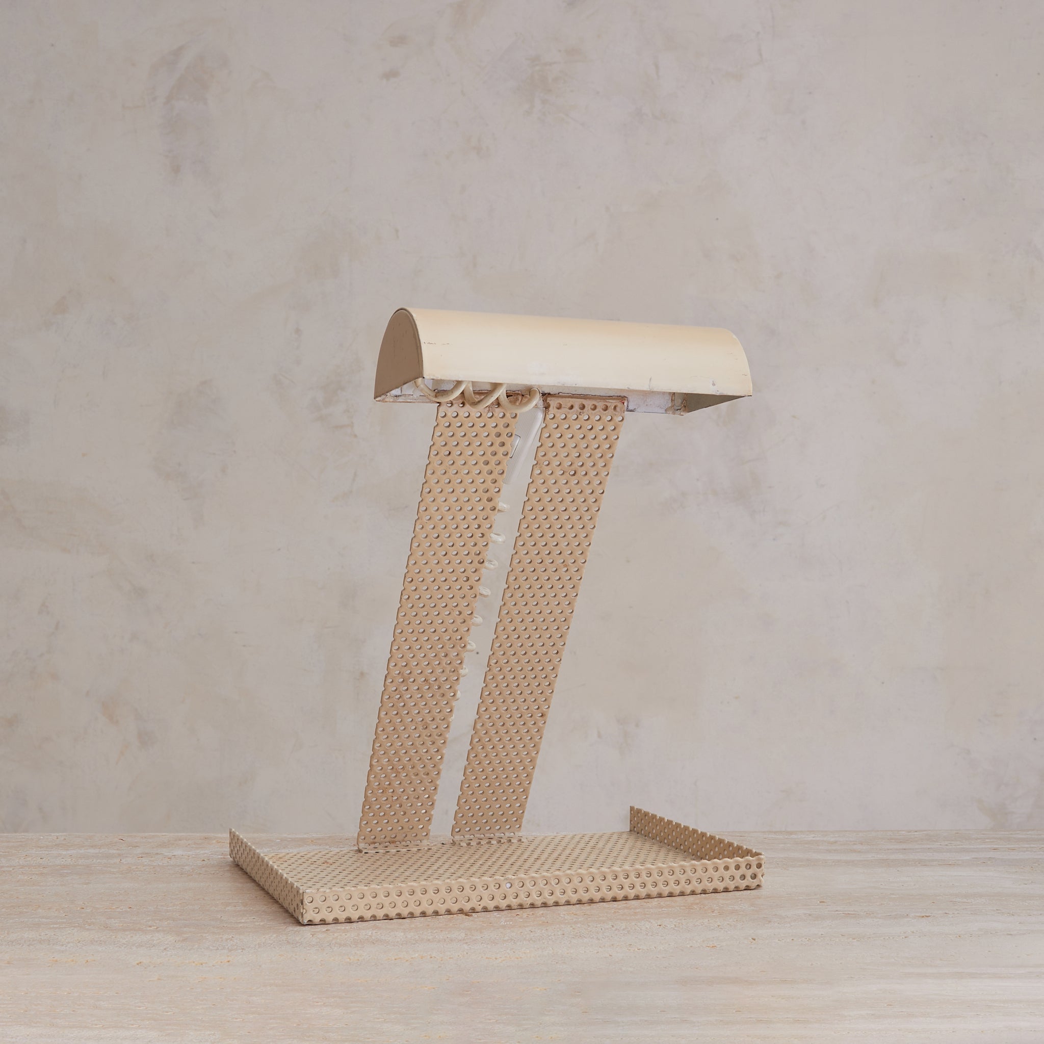 French Ivory Perforated Metal Desk Lamp in the Manner of Mathieu Matégot, 1960s