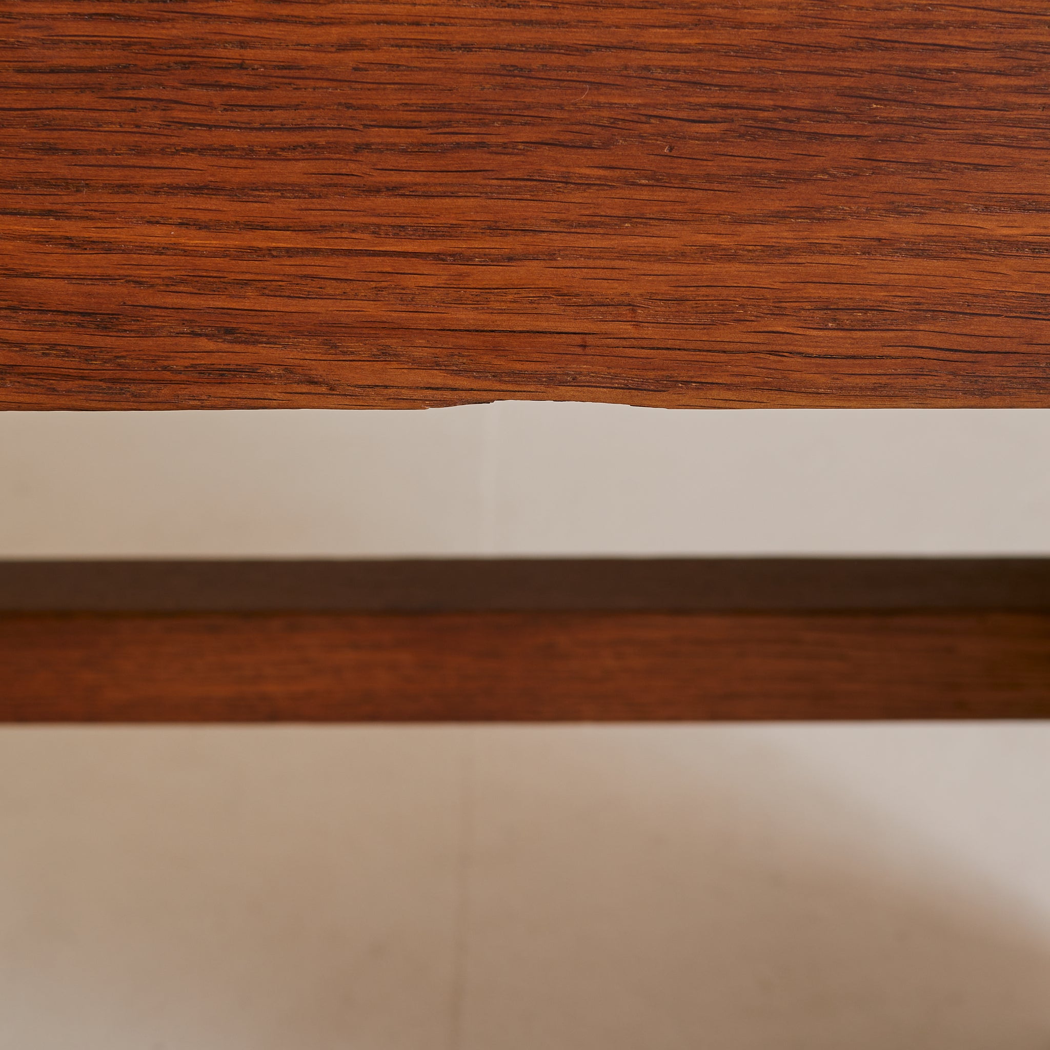Originally built to accommodate extension leaves (now removed), the table has been fixed at a versatile scale—equally suited as a dining table, desk, or entry anchor. A grounded, beautifully made piece that reads as both functional and artful.