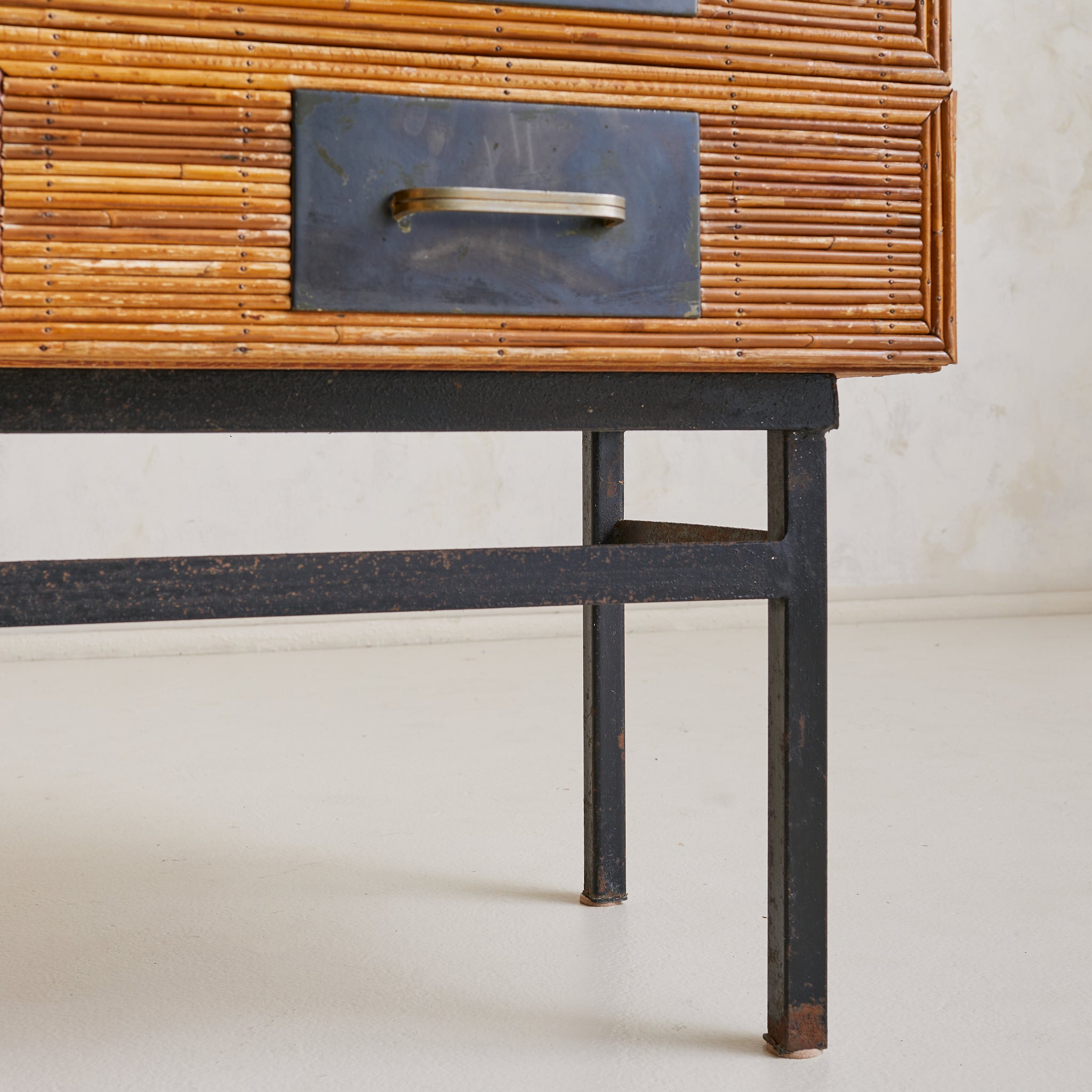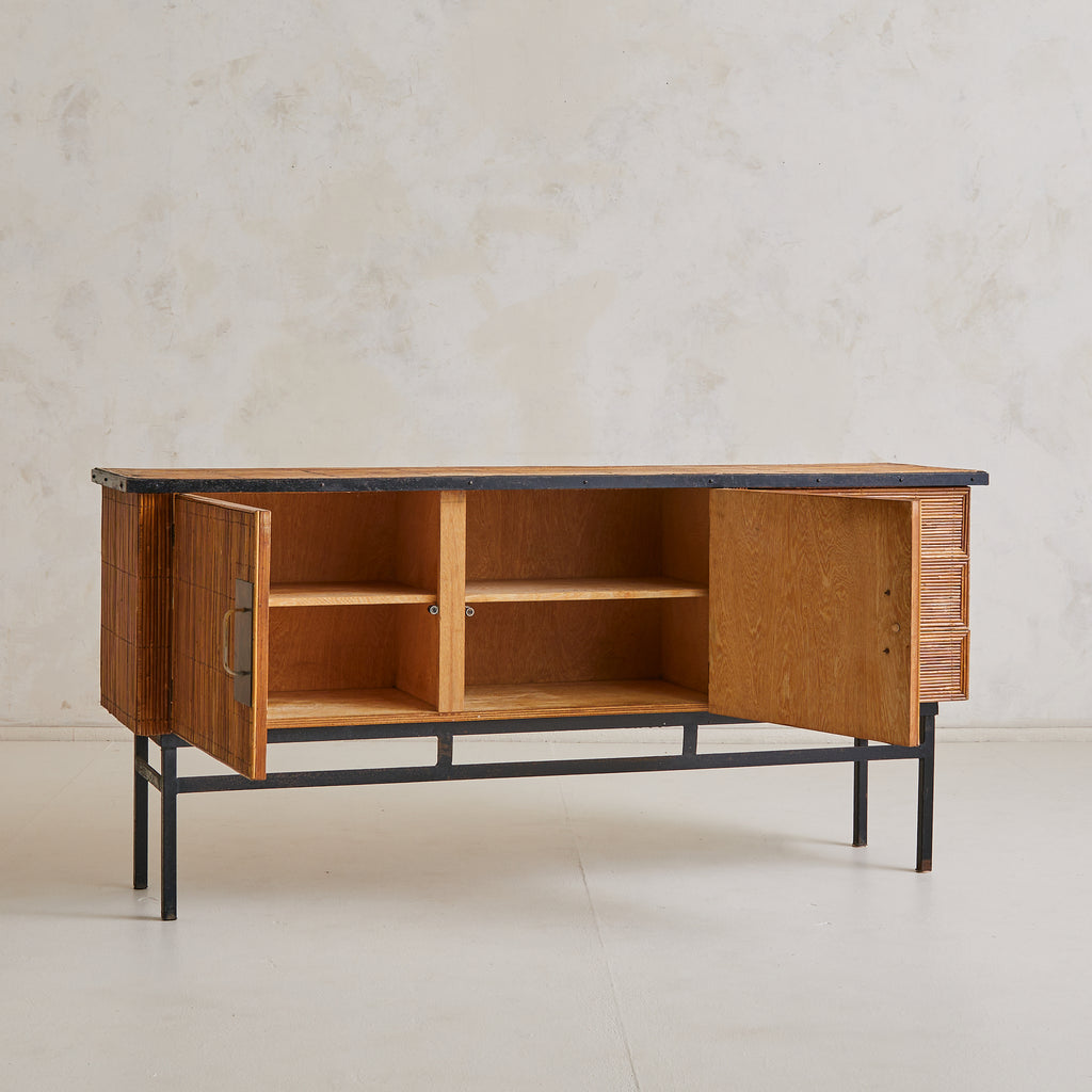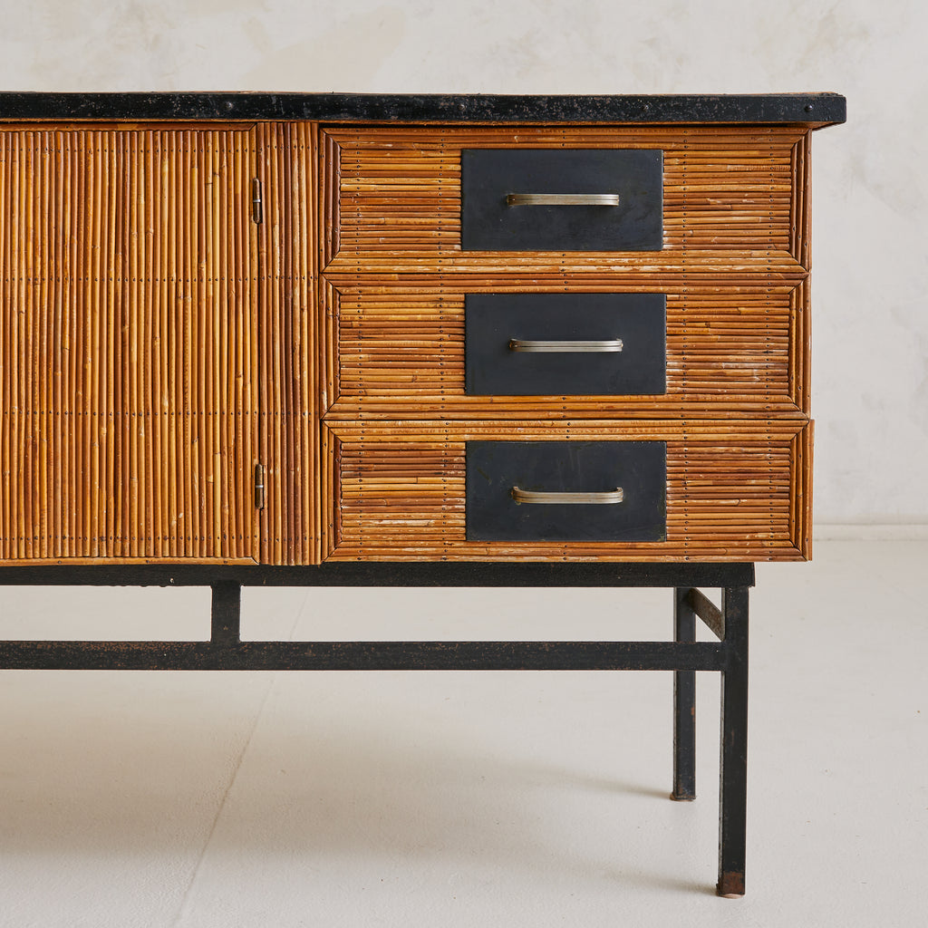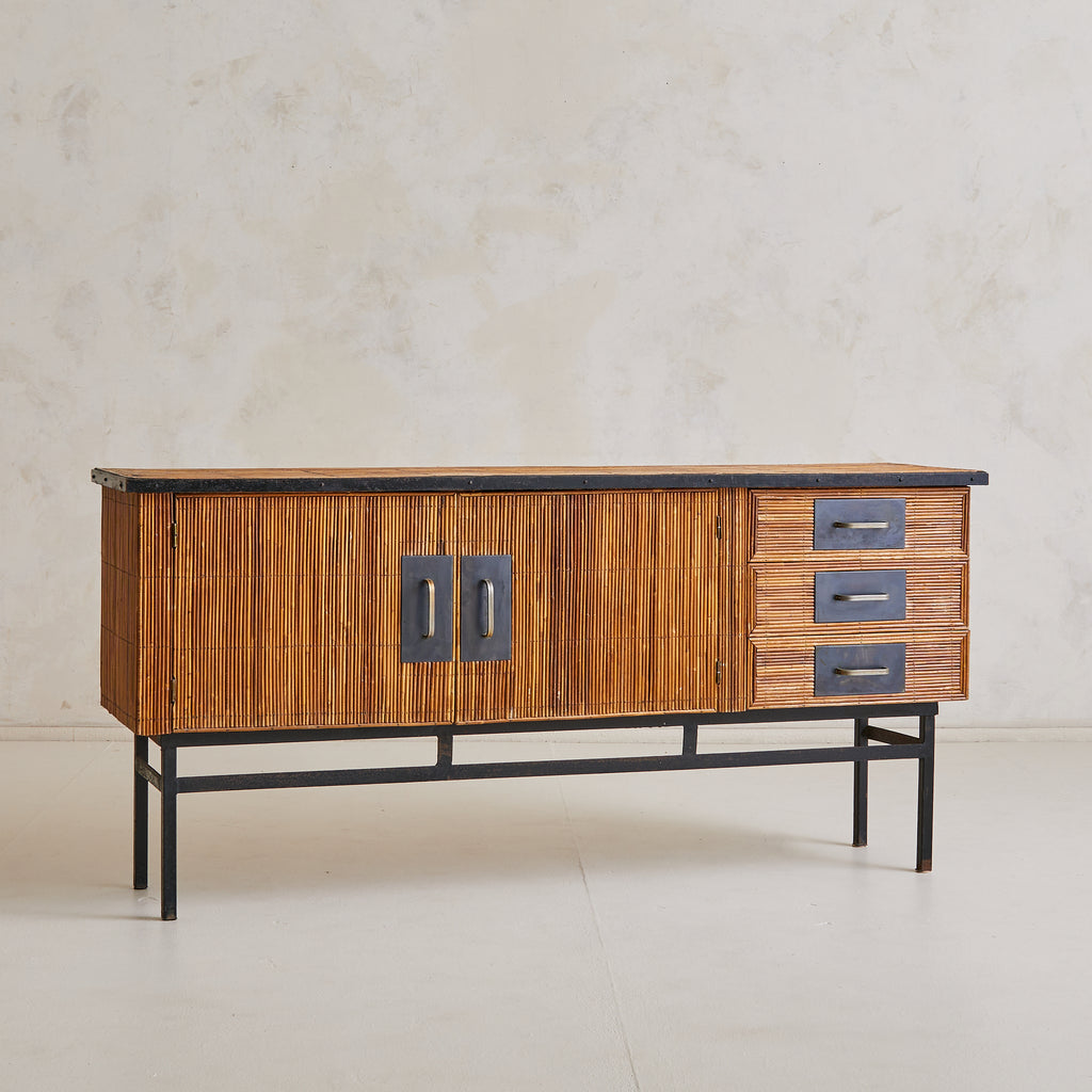French Pencil Reed Sideboard with Iron Base in the Manner of Adrien Audoux & Frida Minet, 1960s