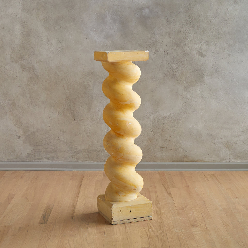 French Plaster Spiral Column or Pedestal on Wooden Base