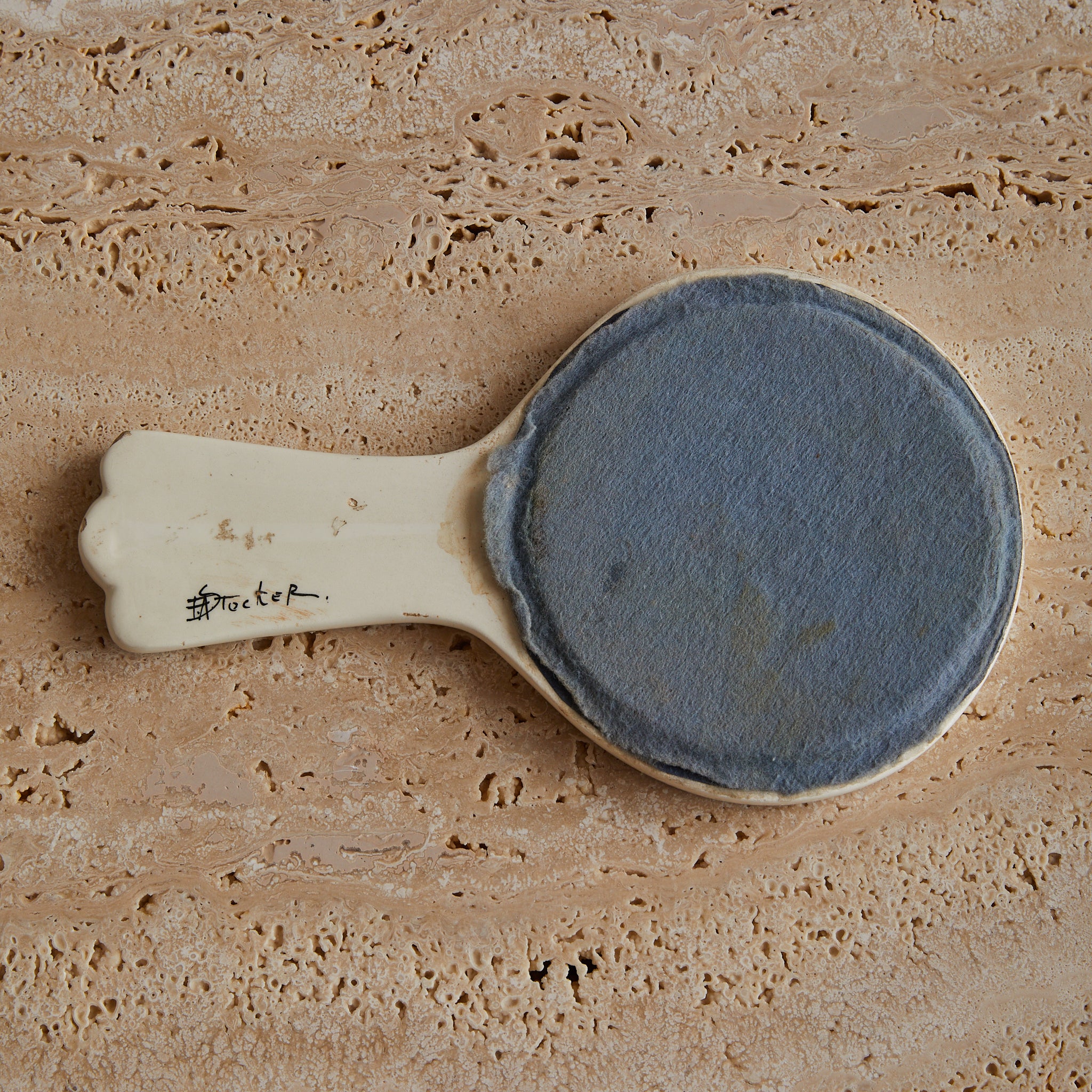 French Round Ceramic Hand Mirror with Floral Motifs, 1960s