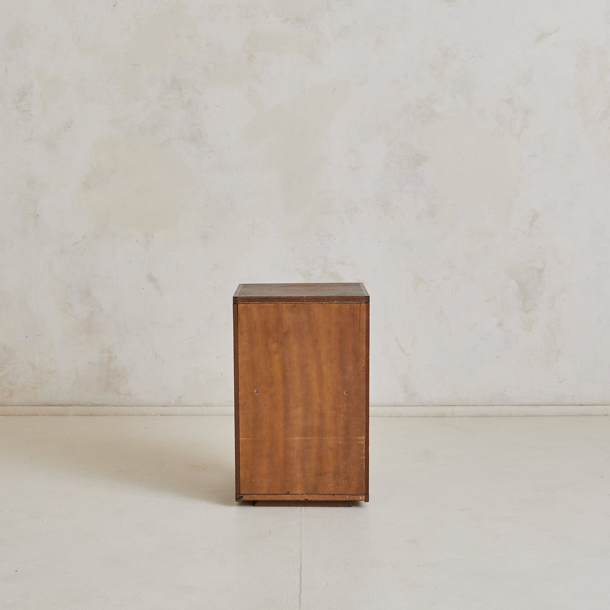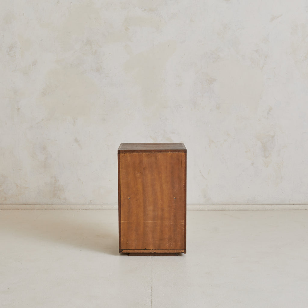 Dense French oak reveals tight grain and a deep, hand‑rubbed café finish, enriched by decades of mellow patina. At just above two feet tall, it’s an ideal drinks table, nightstand, or sculptural perch for objets.