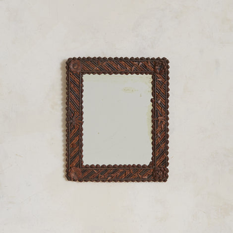 French Tramp Art Carved Wood Wall Mirror, 1920s
