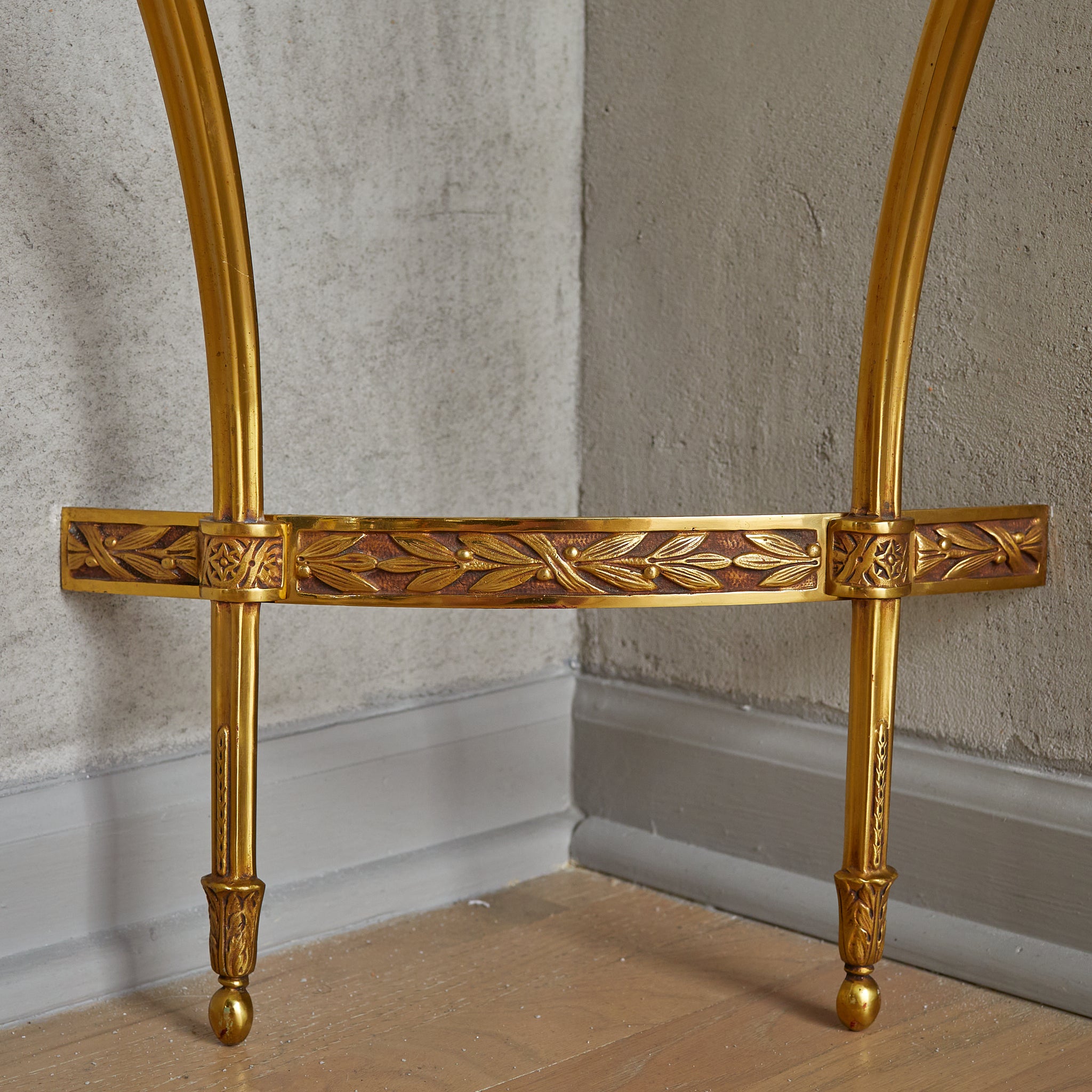 Designed for wall mounting, this Neoclassical-inspired piece is perfect for an entryway, hallway, or any intimate corner.
