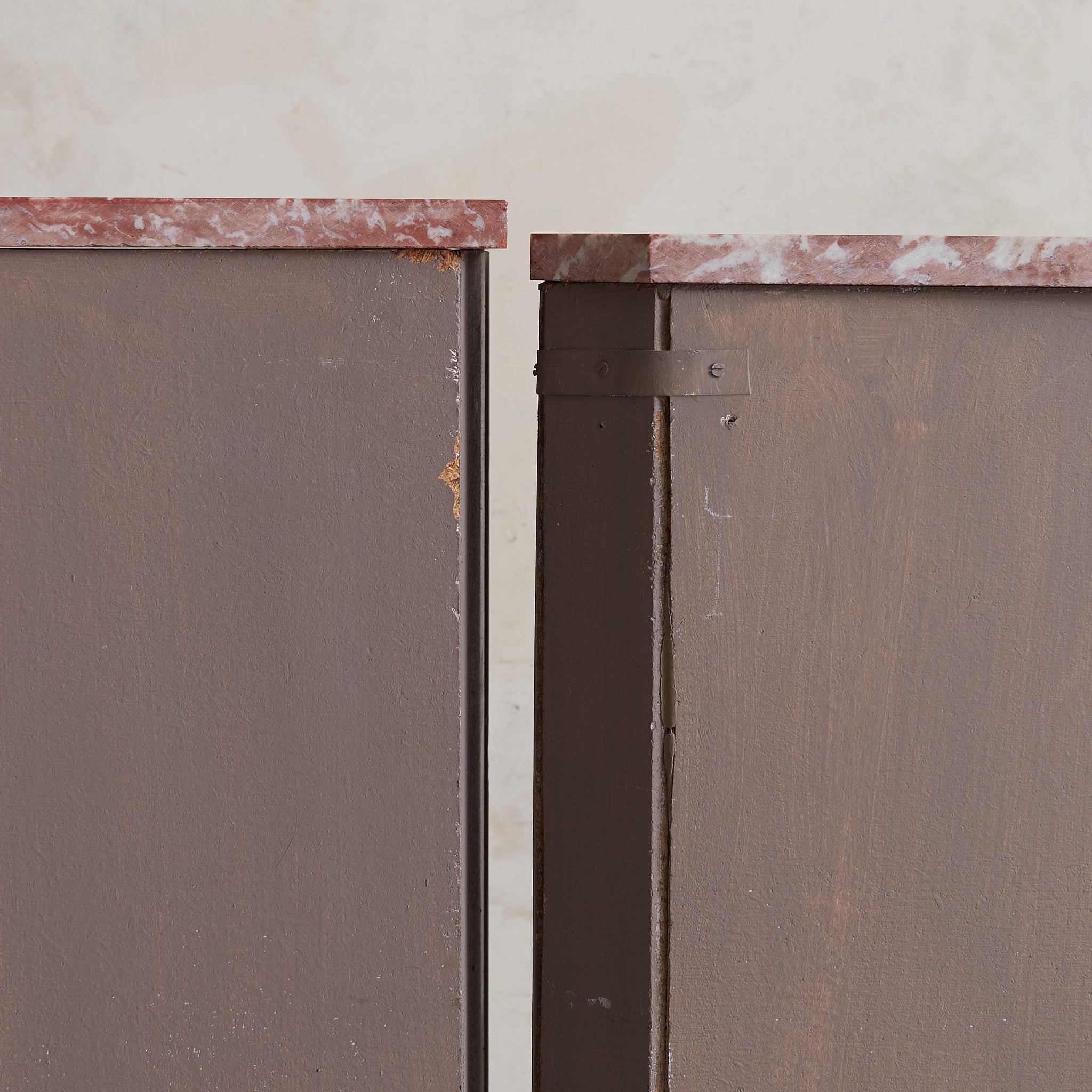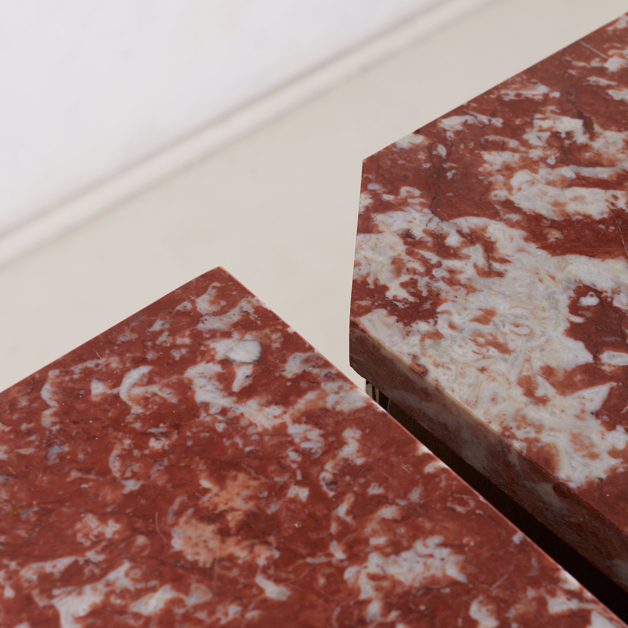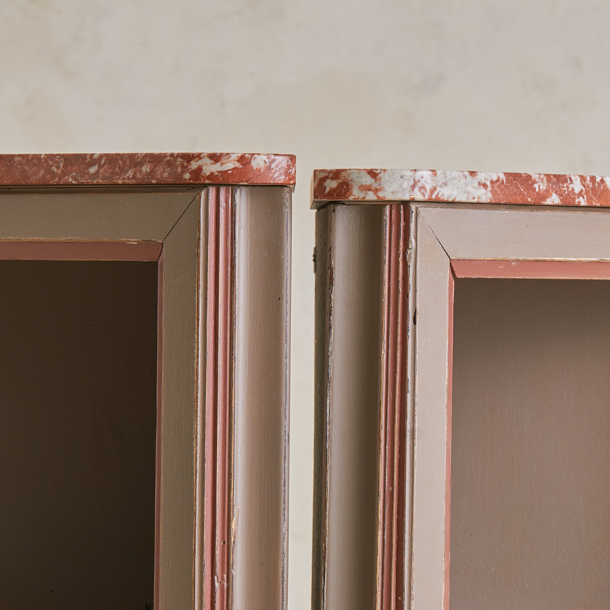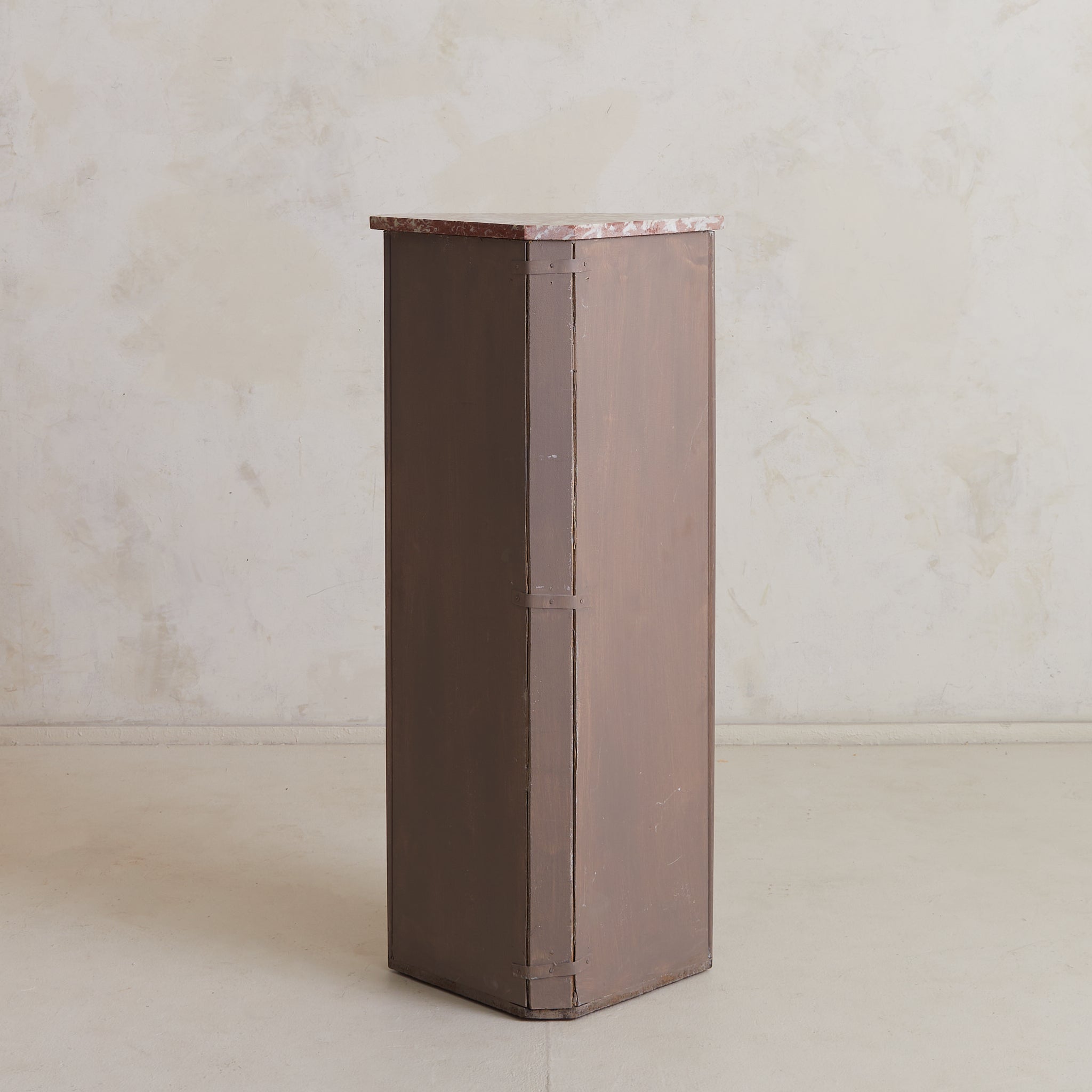 Rosso Francia, quarried in the South of France near Caunes-Minervois, was historically used in ecclesiastical settings and grand interiors throughout the 18th and 19th centuries. Its presence here introduces an unexpected material contrast—elevating this humble storage piece with a layer of visual opulence.