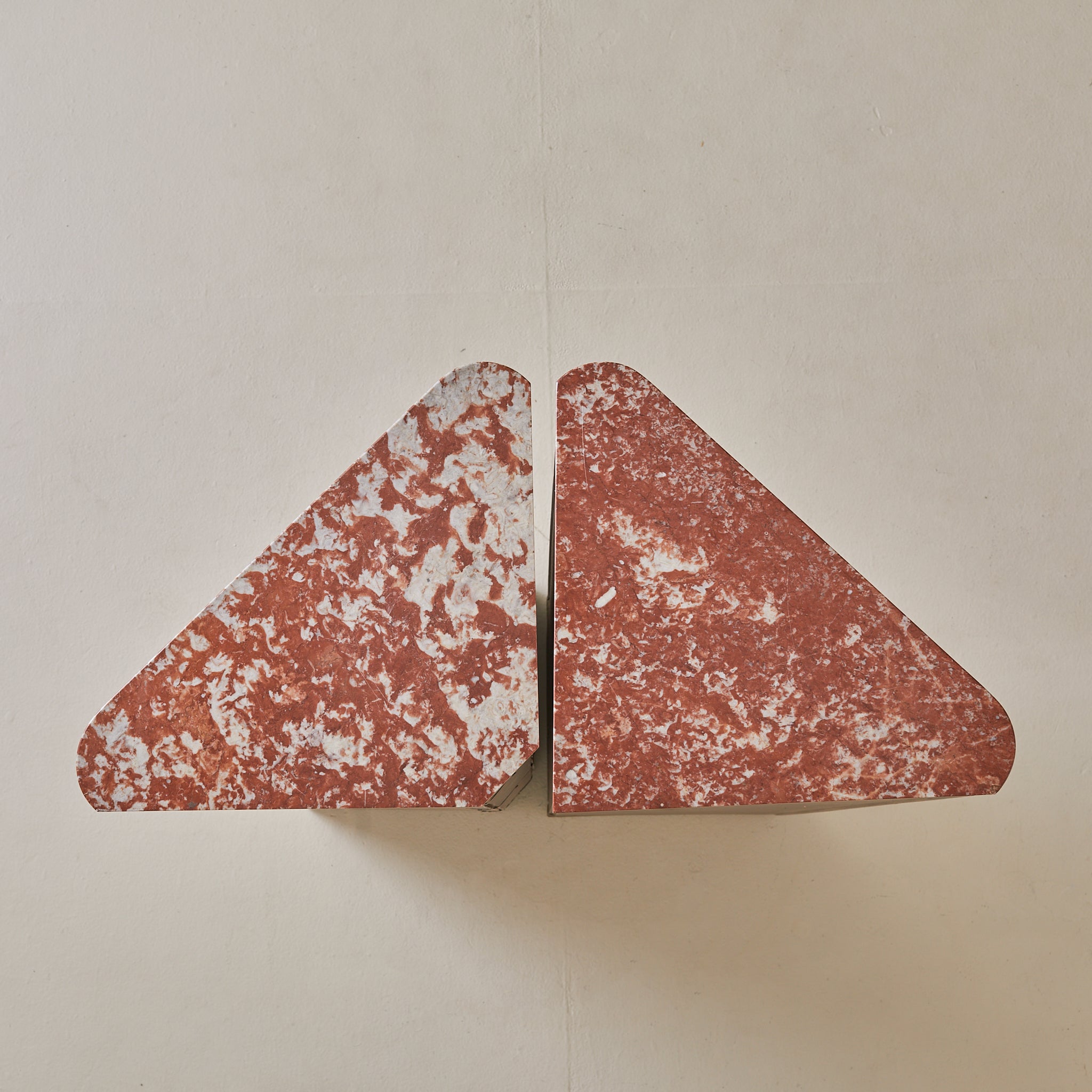 French Wooden Corner Shelf with Rosso Francia Marble Top, 1930s - 2 Available