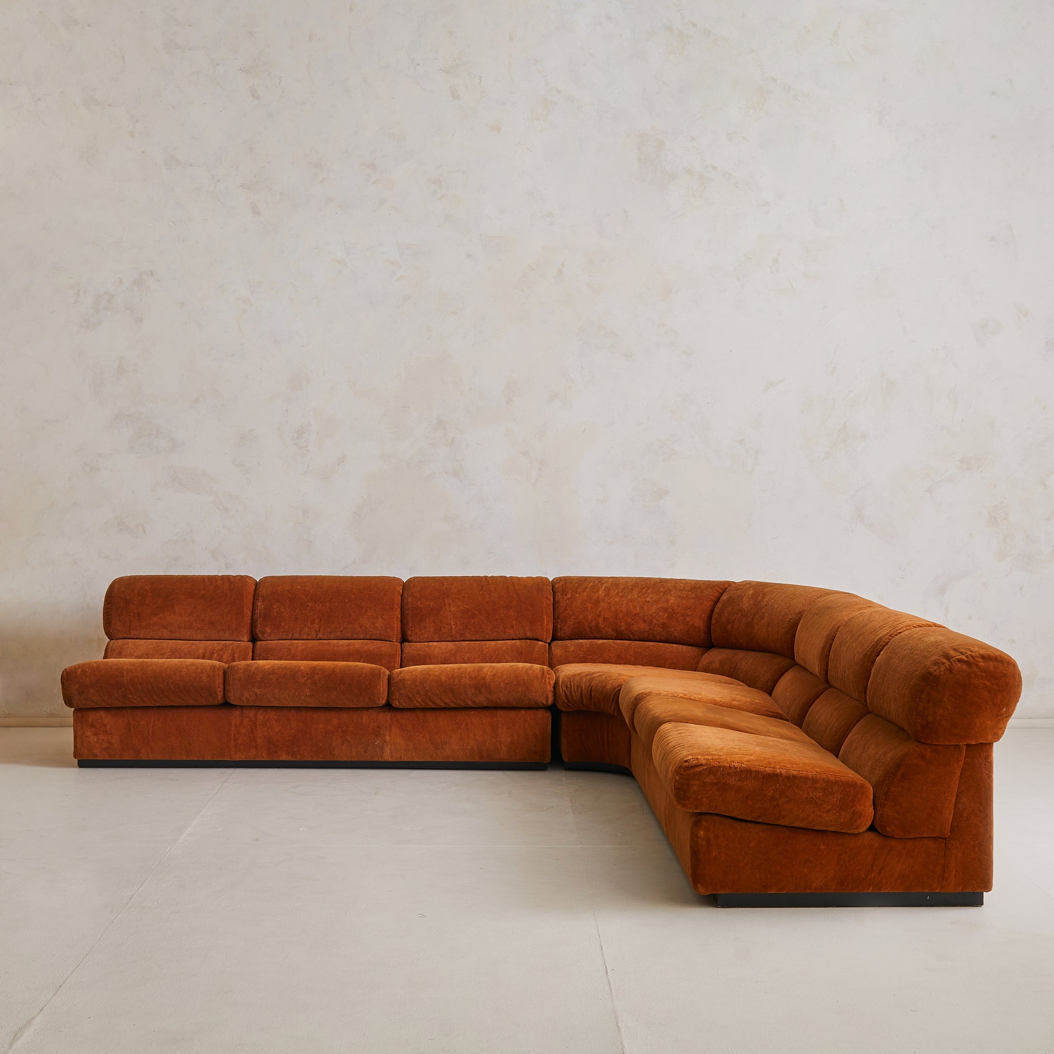 Italian 5-Piece Sectional Sofa in Original Rust Upholstery, 1970s