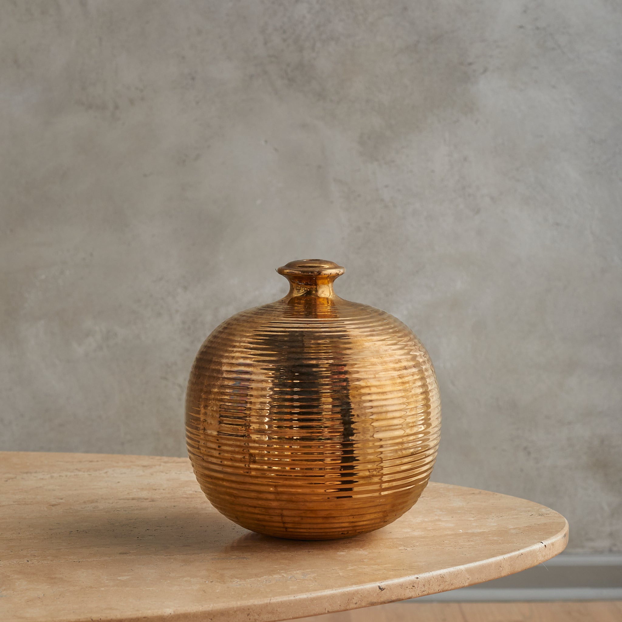 Italian Spherical Gold Ceramic Vase Attributed to Bitossi, 1960s