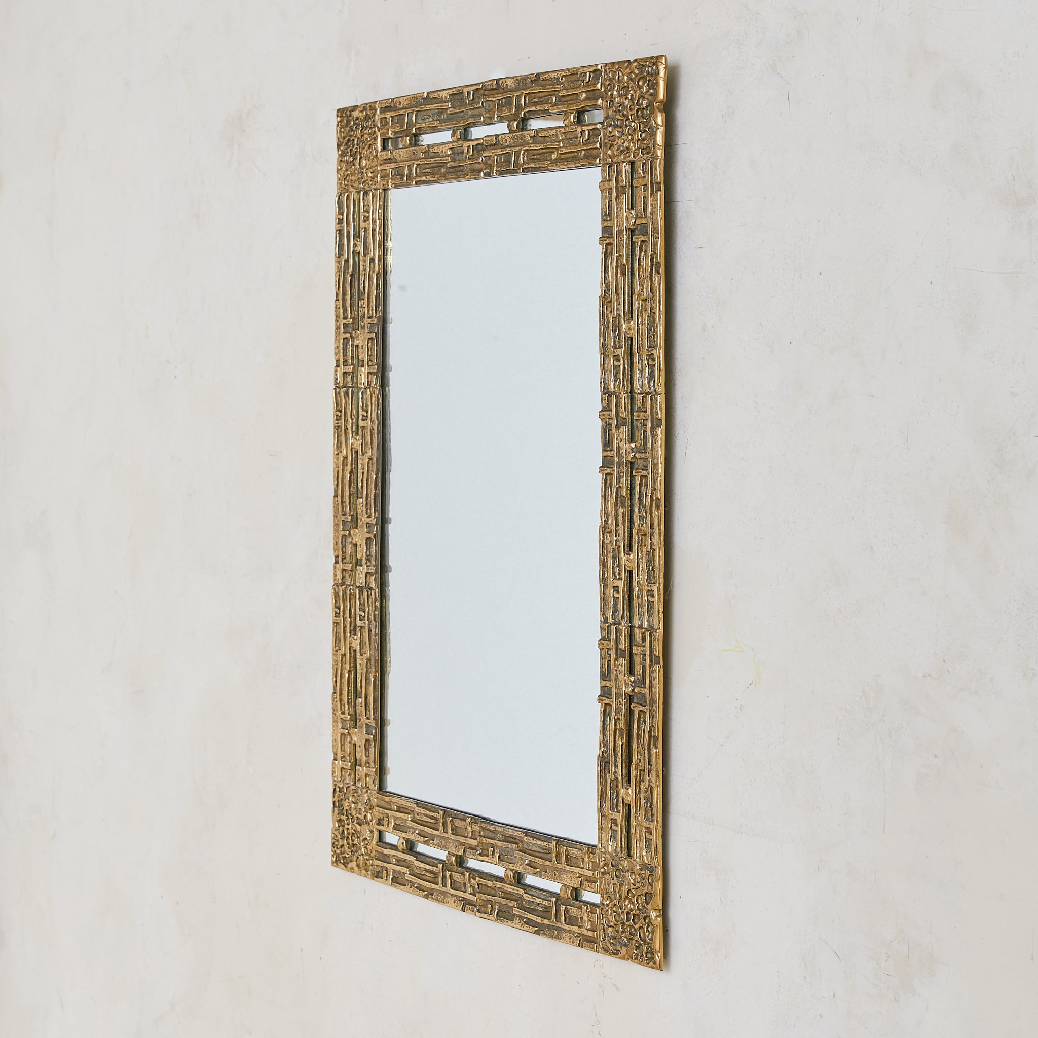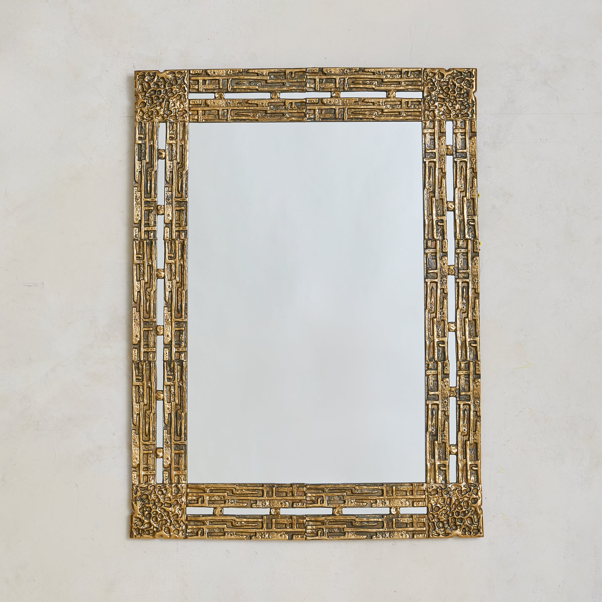 Italian Brutalist Bronze Wall Mirror by Luciano Frigerio, 1970s