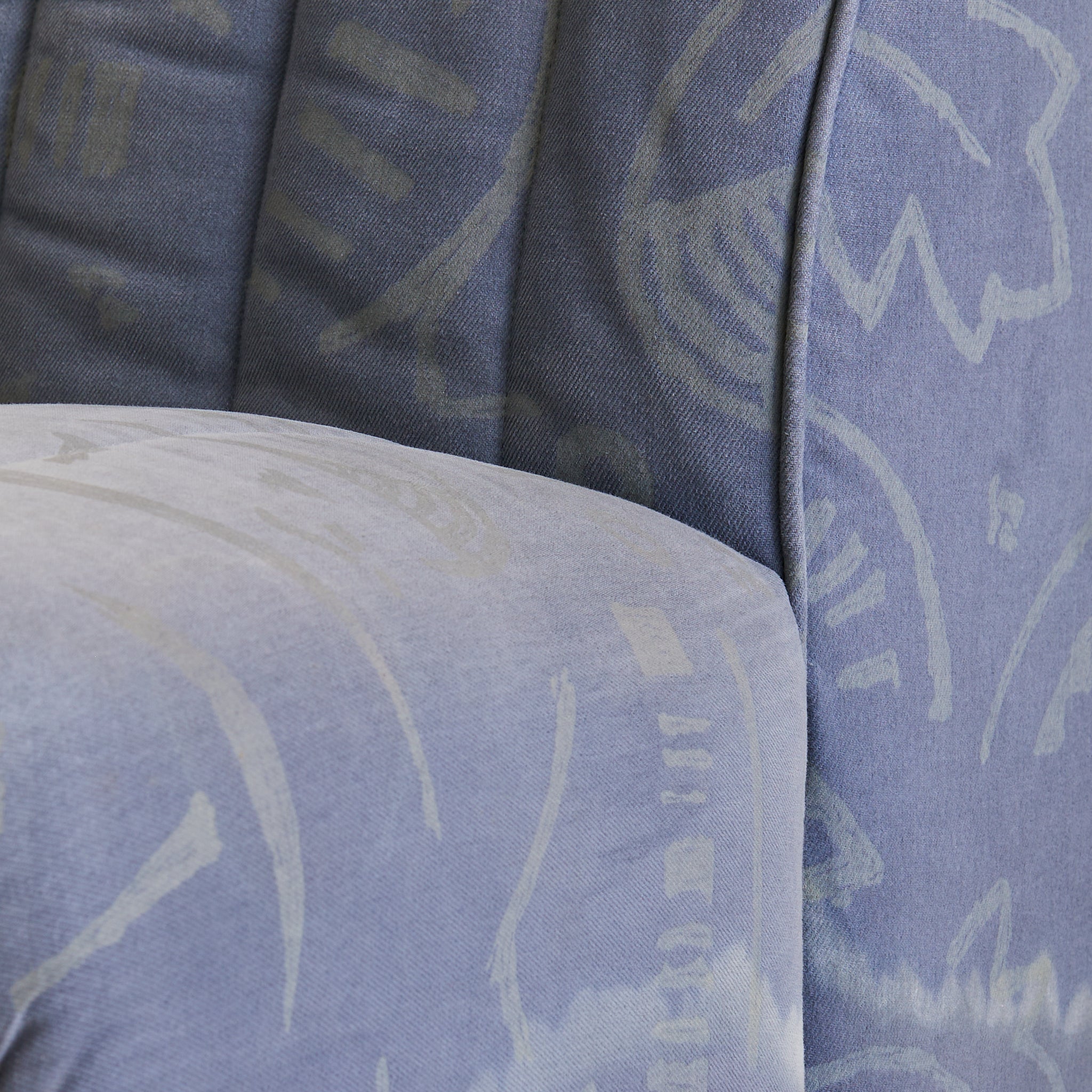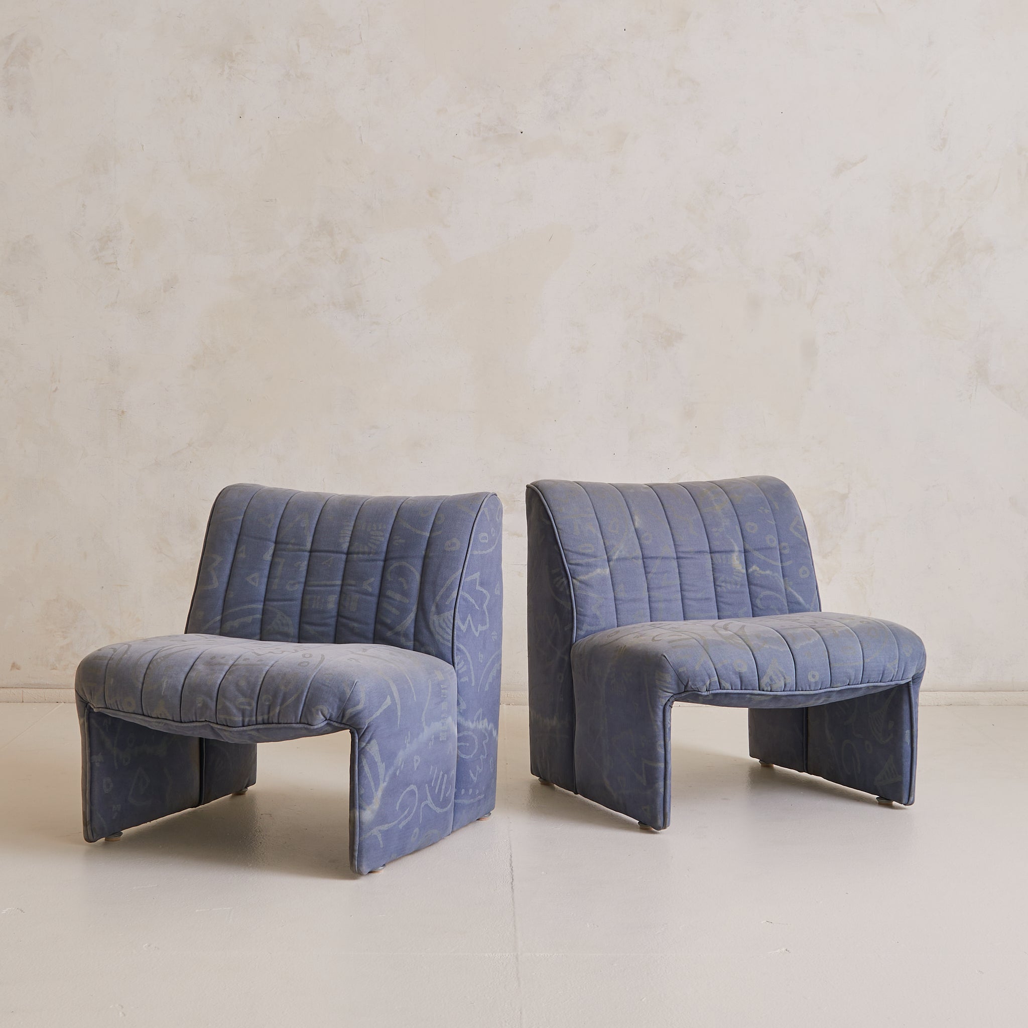Italian Channel-Back Lounge Chair in Original Denim Upholstery, 1970s - 2 Available