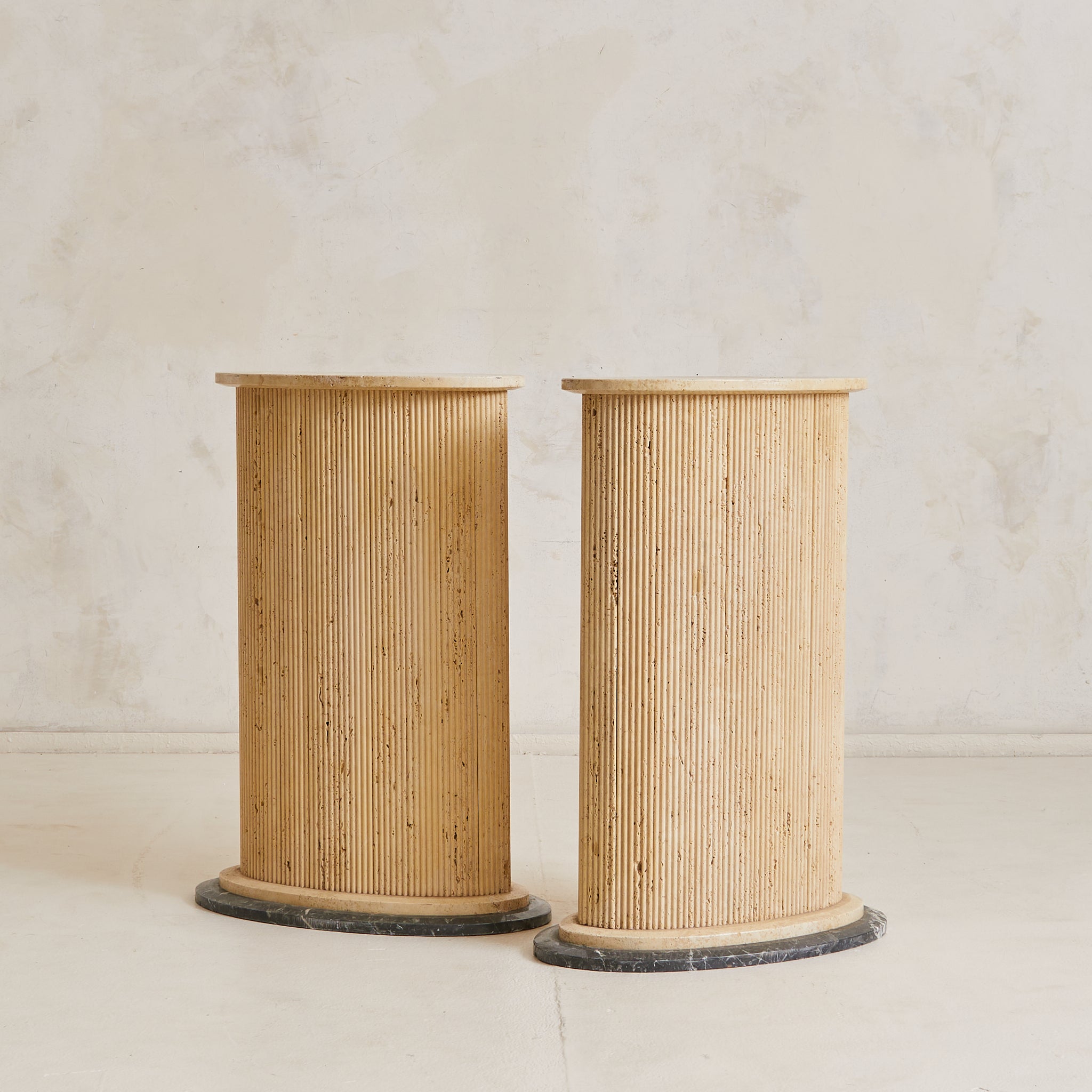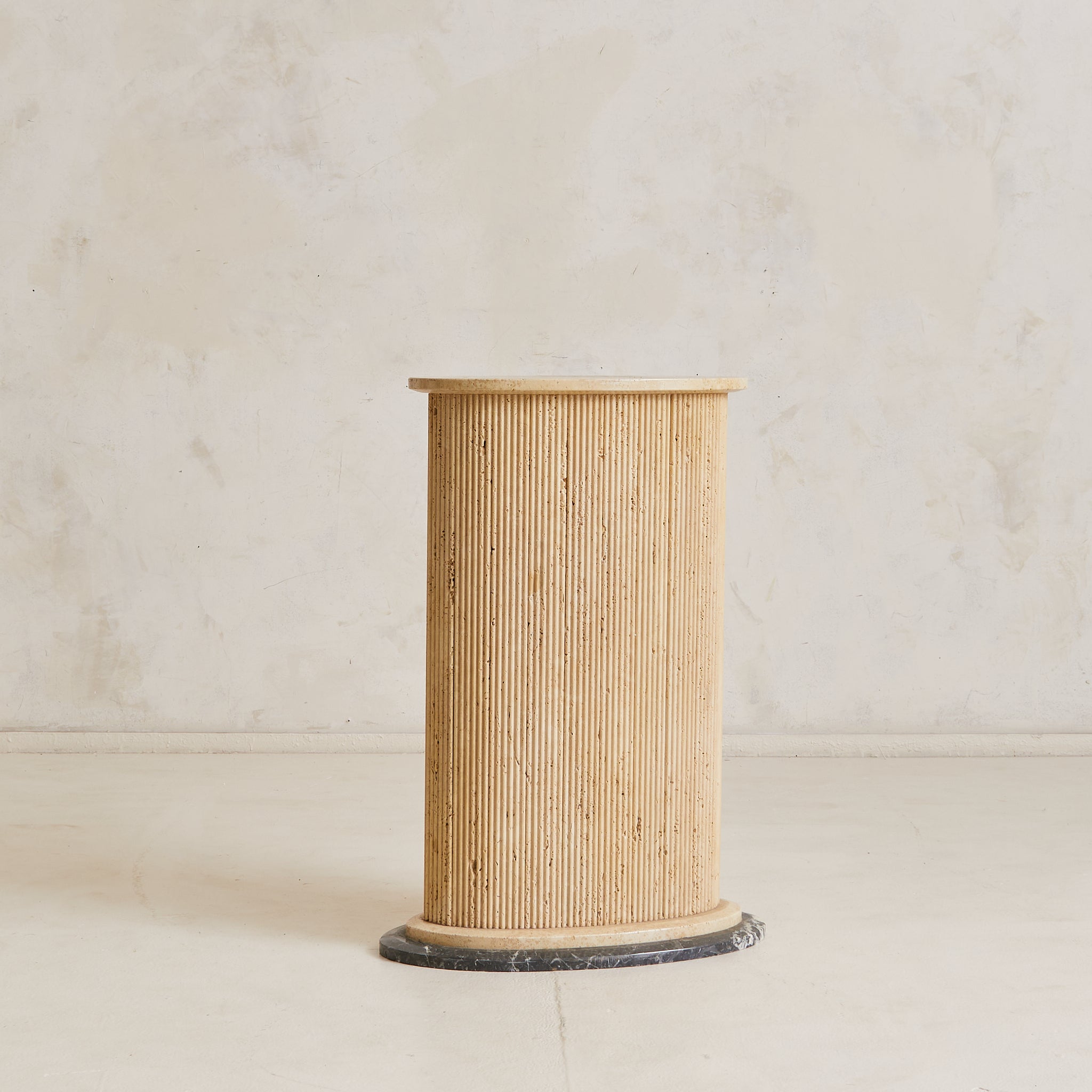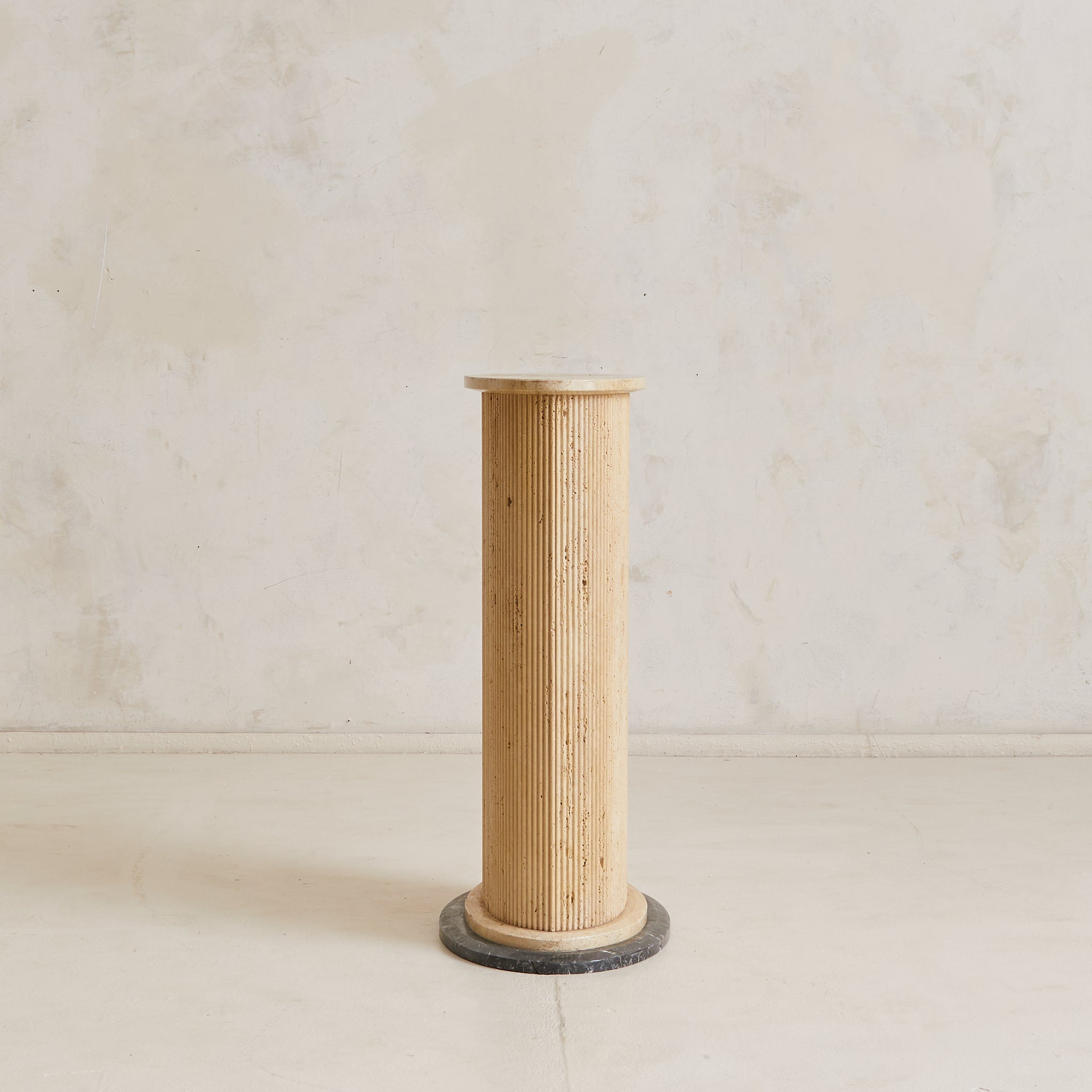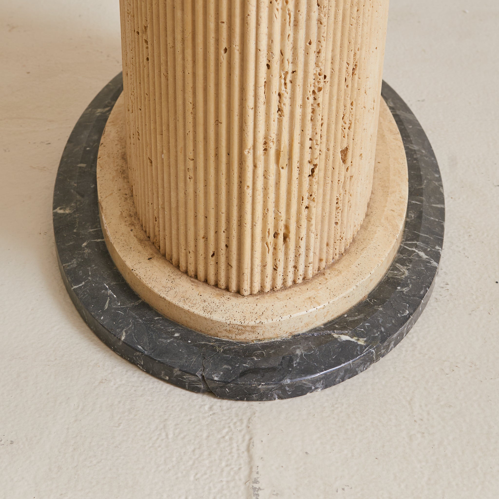 Italian Fluted Travertine Pedestal with Black Marble Base, 1970s - 2 Available