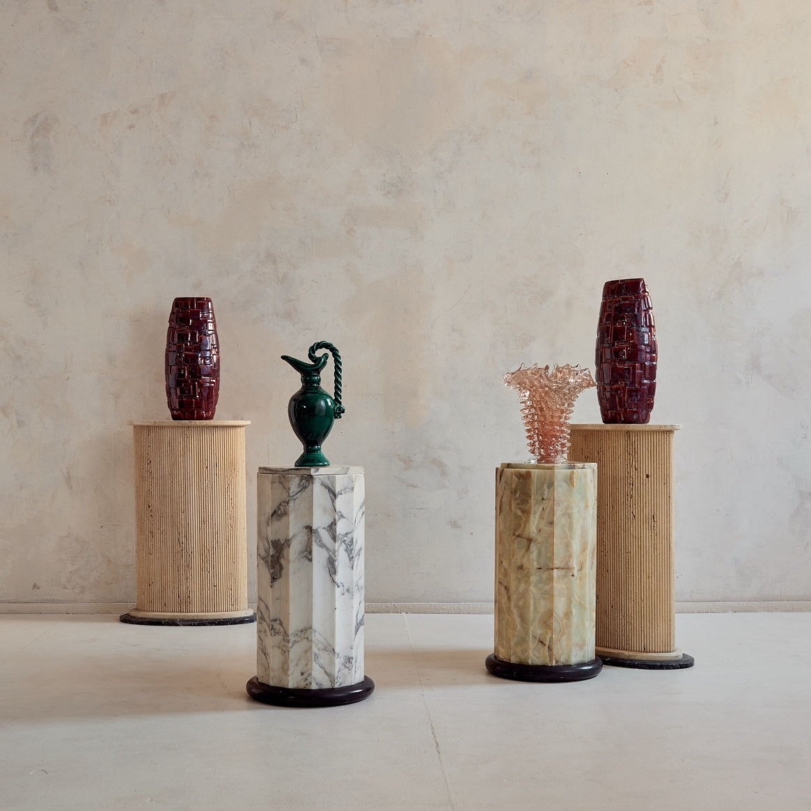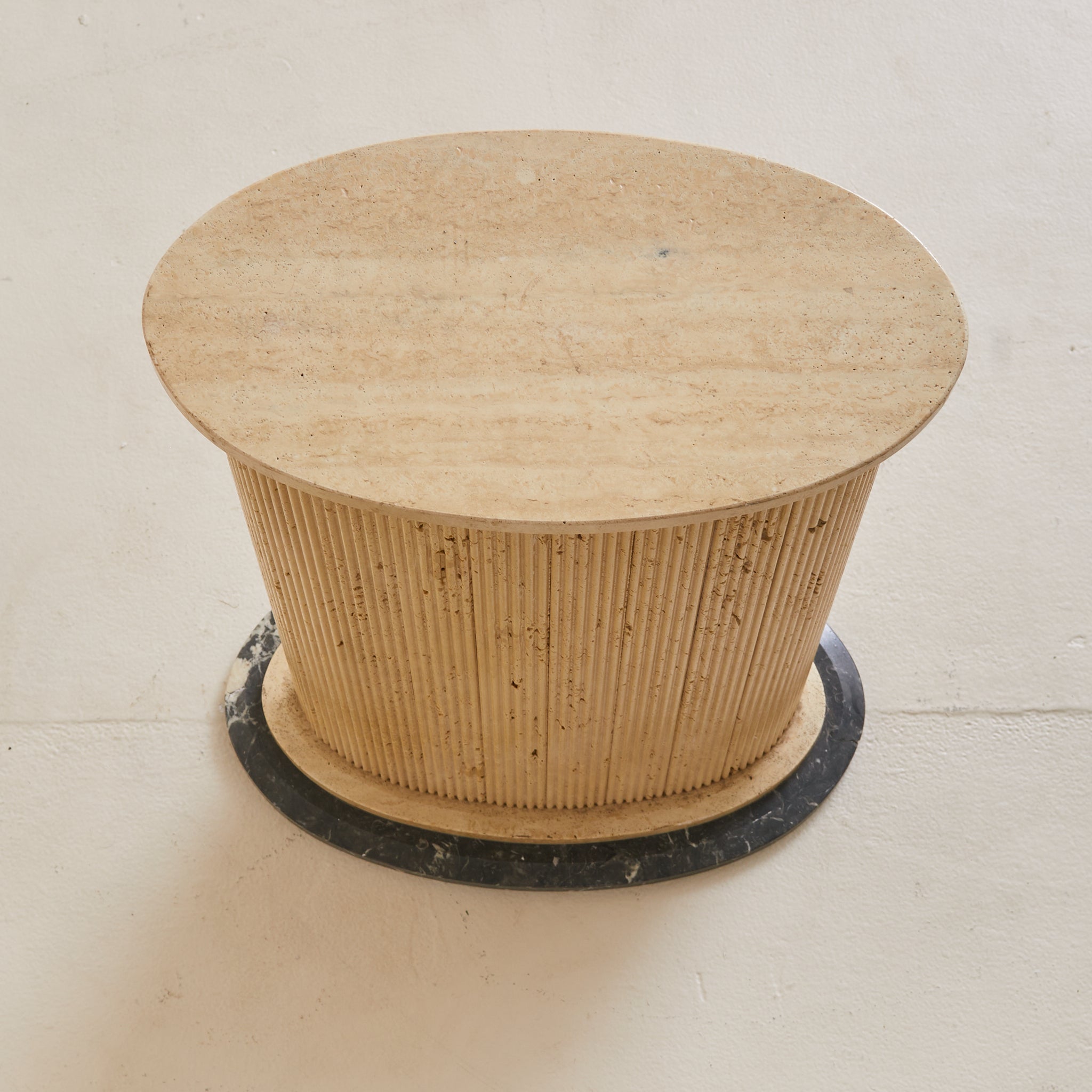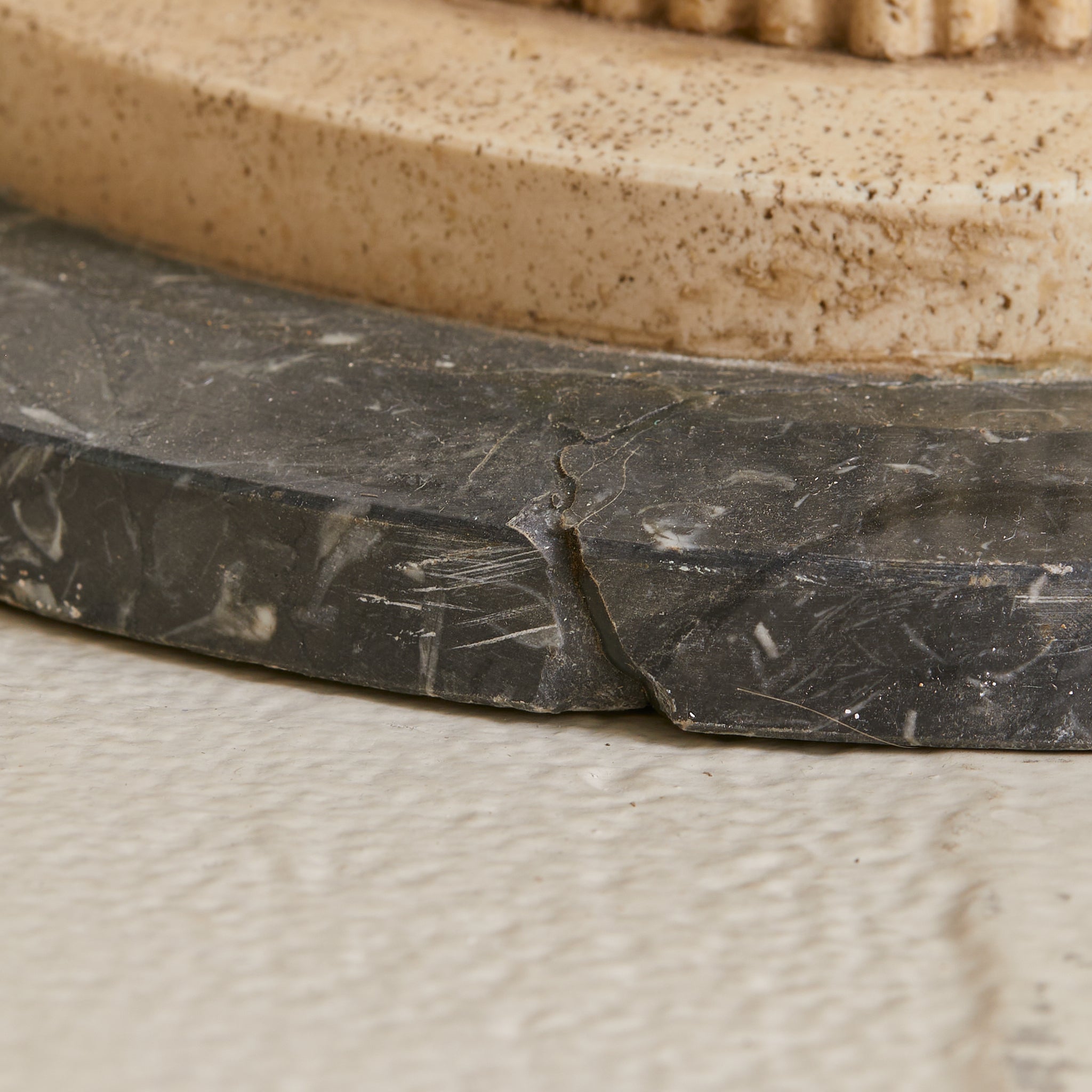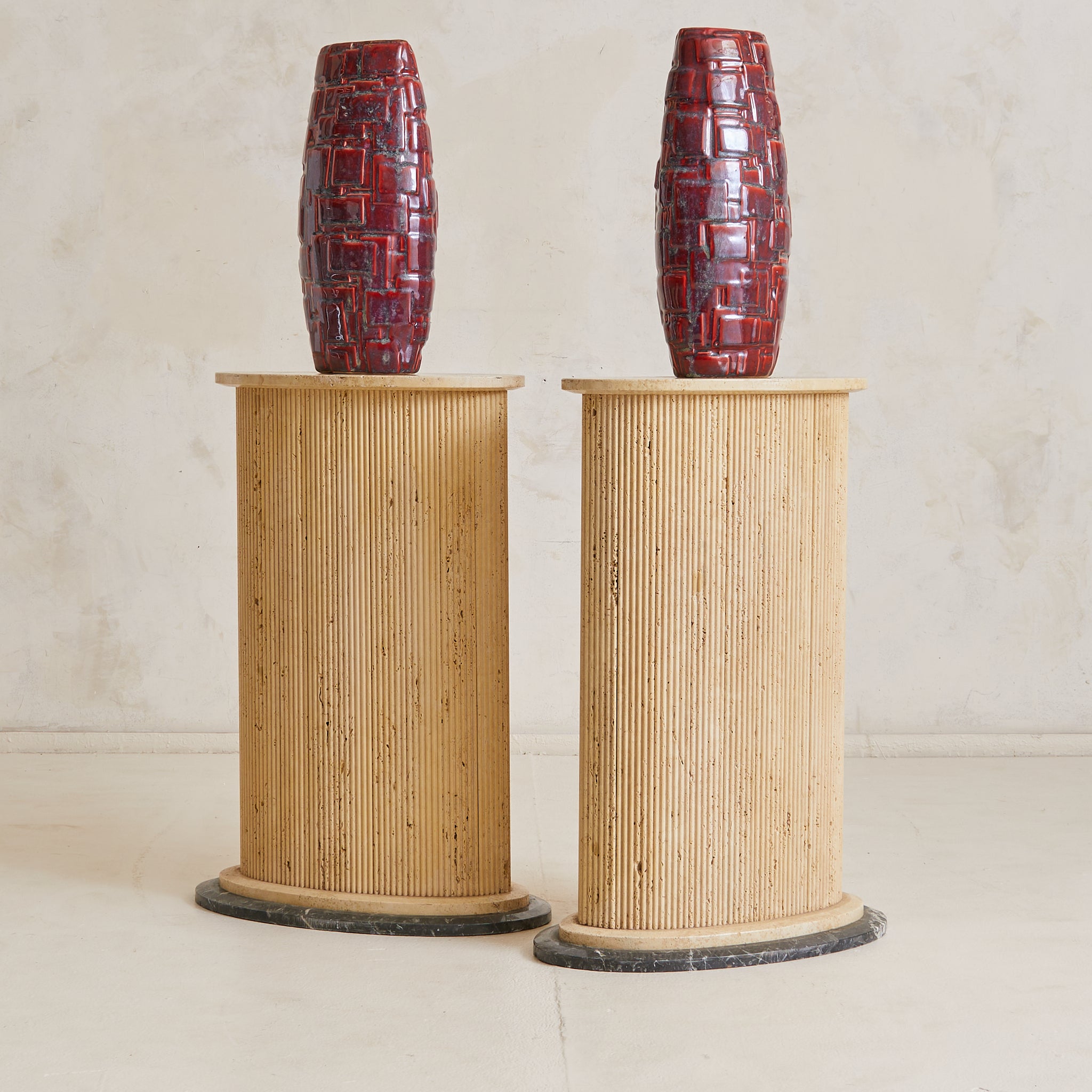 Italian Fluted Travertine Pedestal with Black Marble Base, 1970s - 2 Available