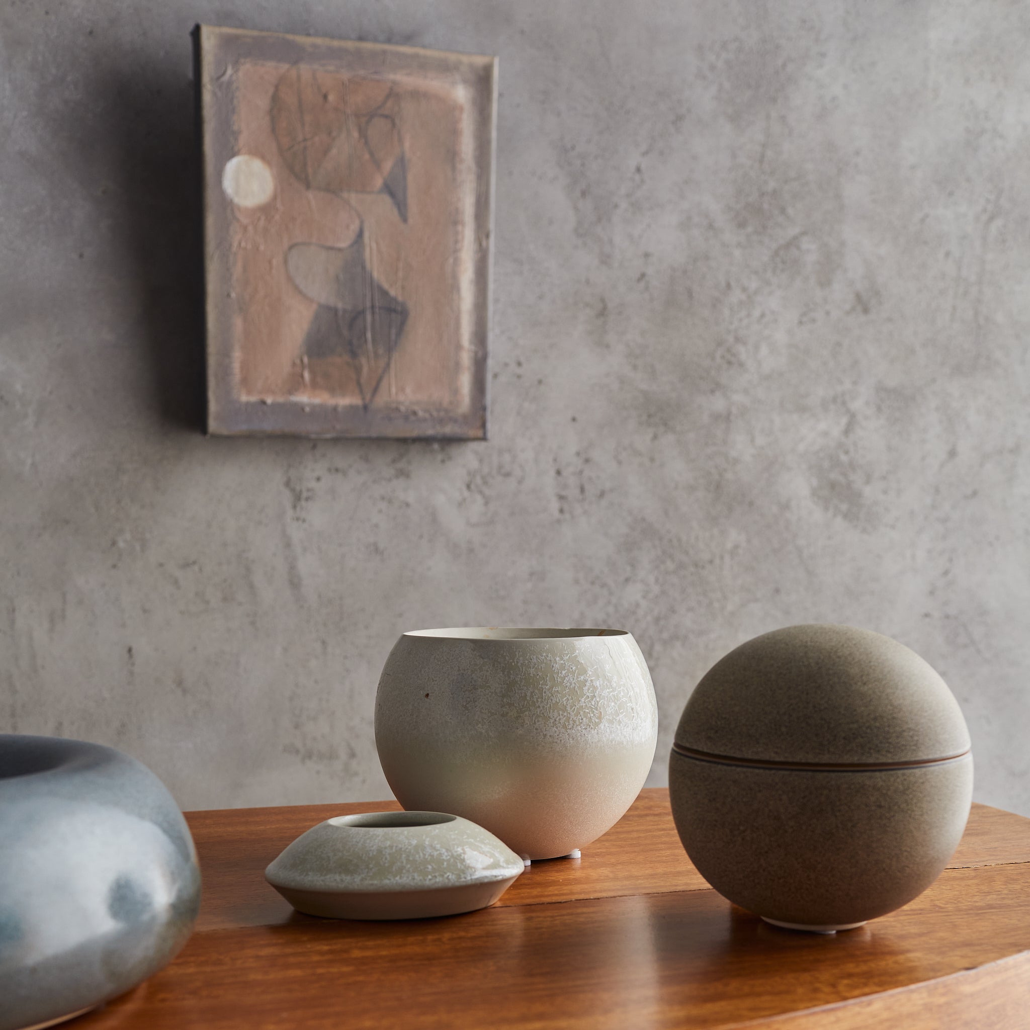 In the 1980s, Bucci began creating monolithic ceramic slabs using a patented technique and later pursued innovations in porcelain. In his later years, he founded a workshop for small-batch and unique ceramic pieces and helped establish the Terracottas Museum in Fratterosa, celebrating Italy's ceramic heritage. Bucci’s legacy lies in his timeless designs and technical mastery, which continue to inspire the ceramic arts.