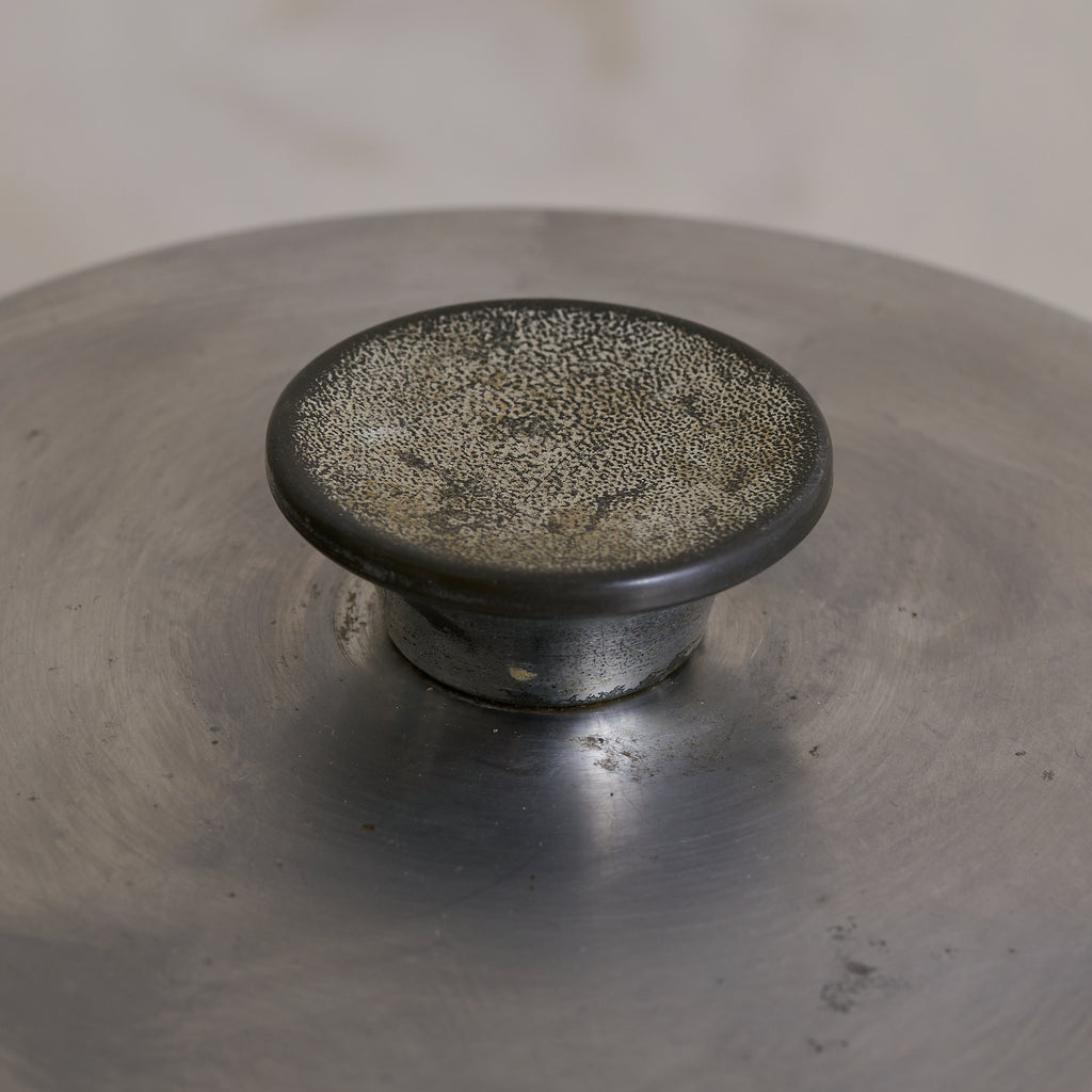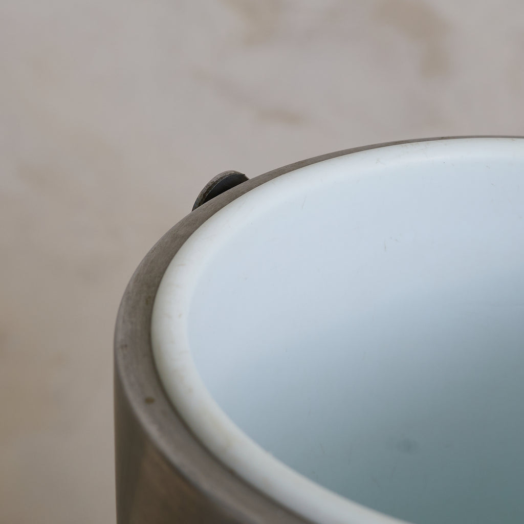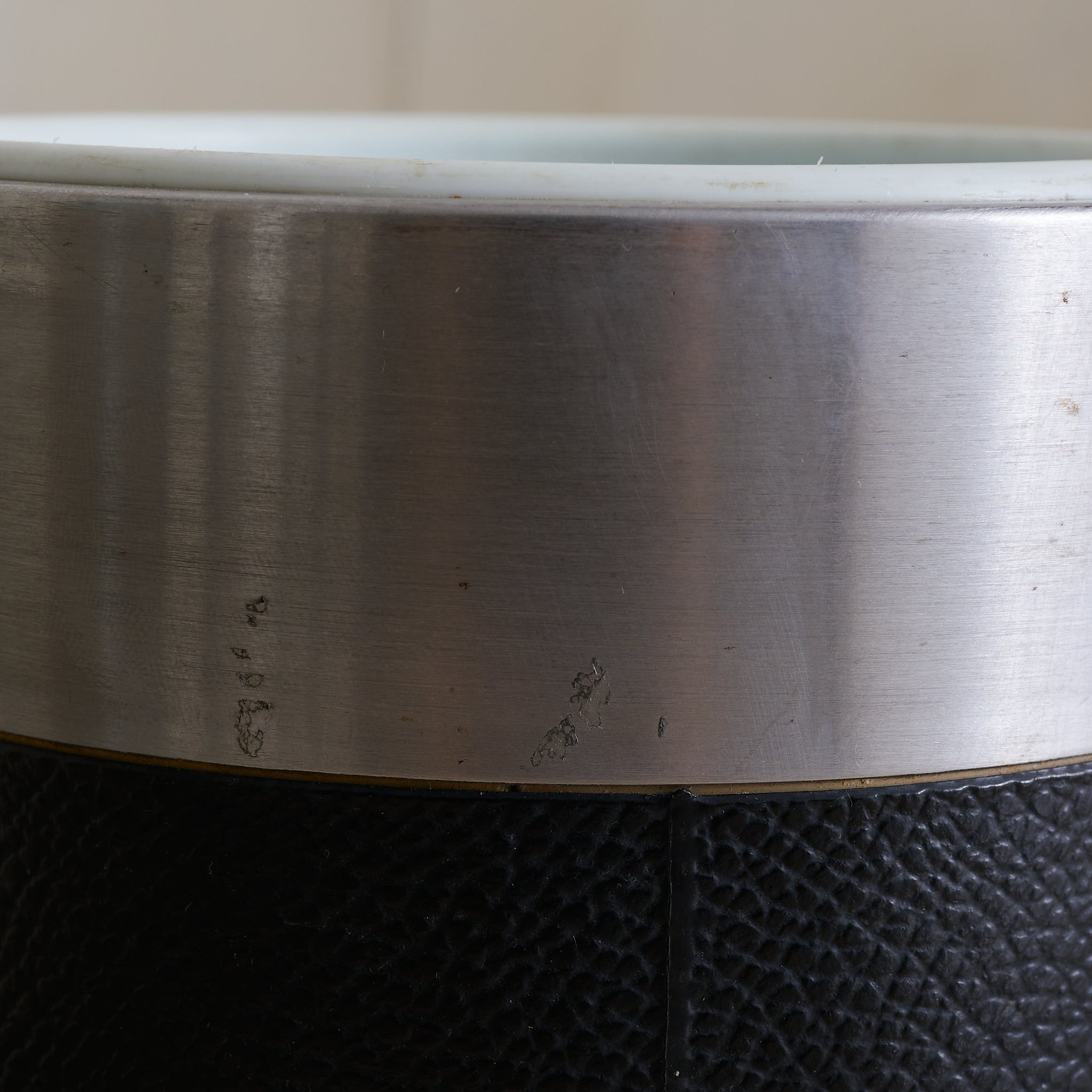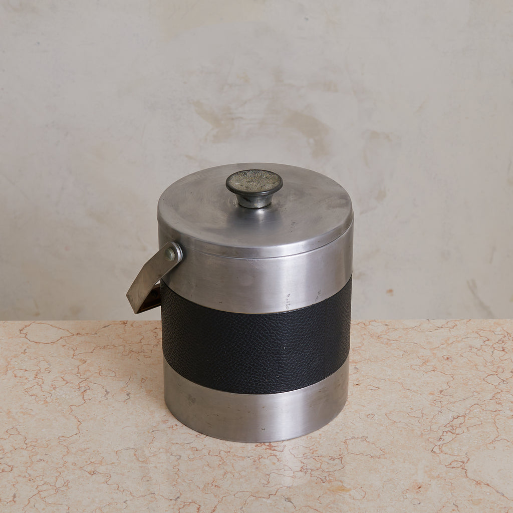 Italian Metal + Black Faux Leather Ice Bucket, 1960s