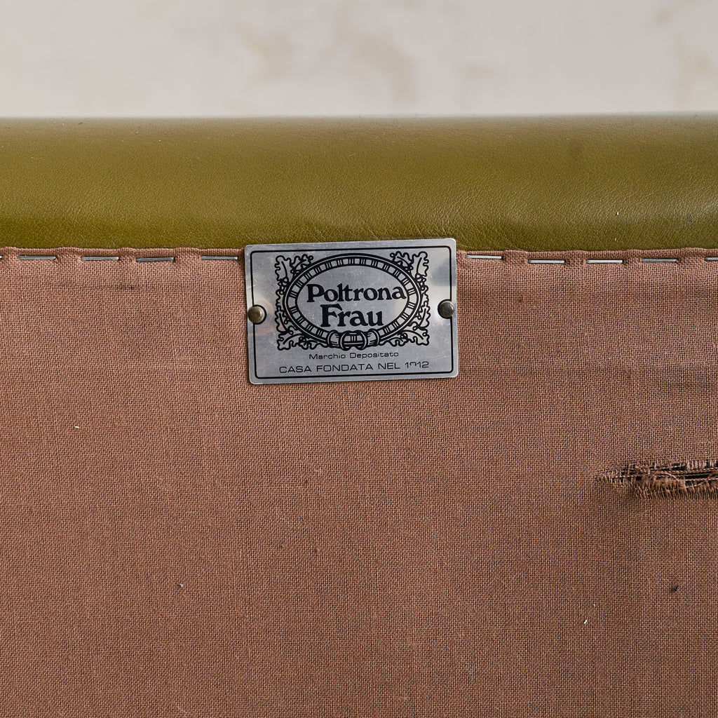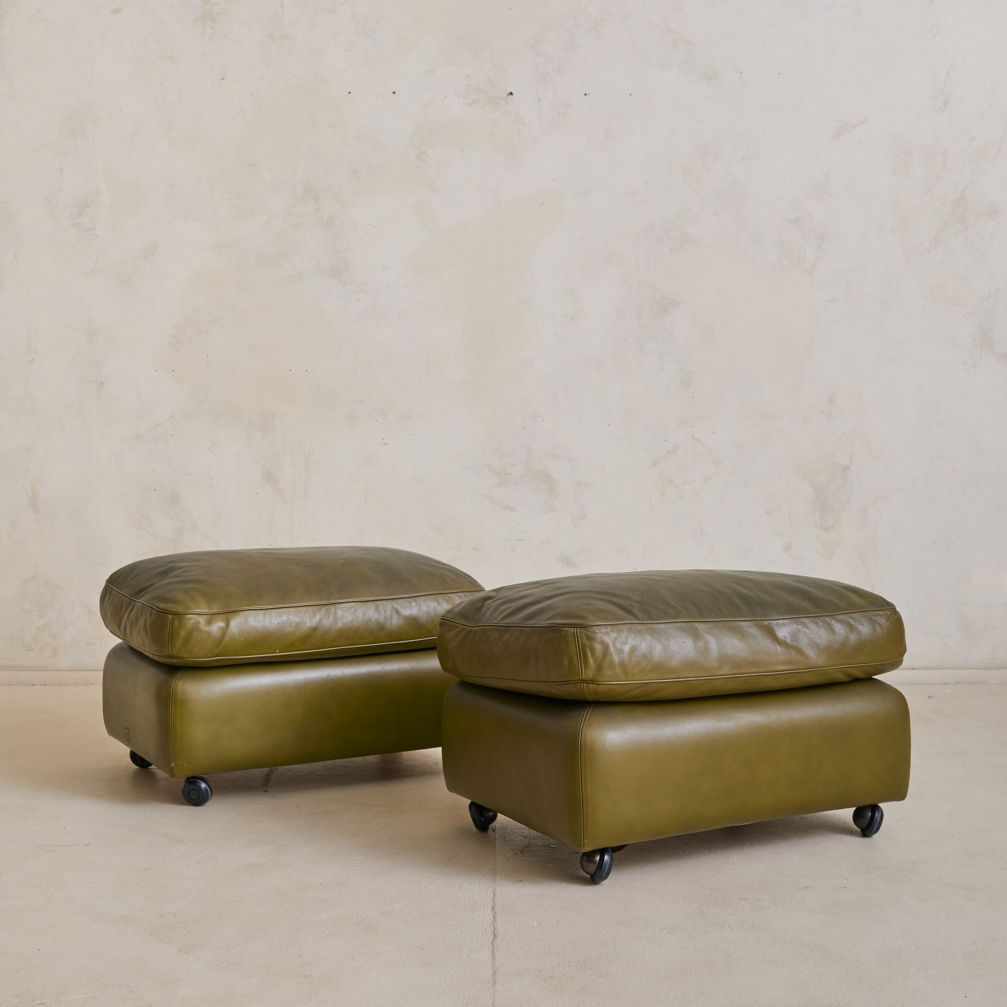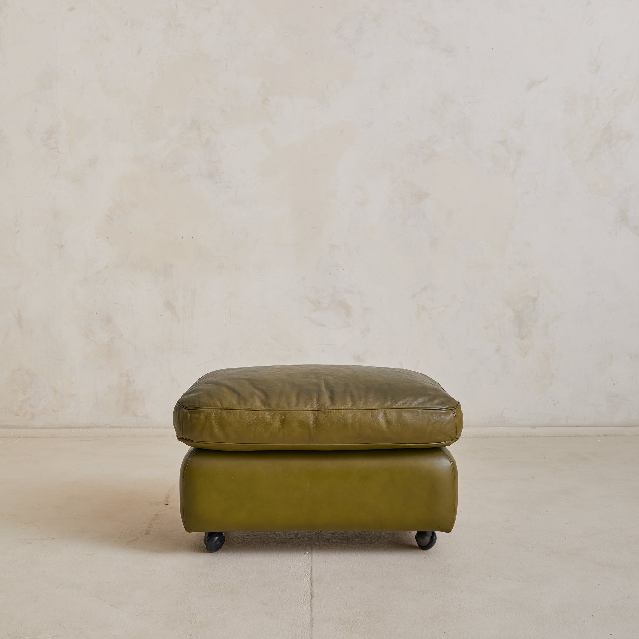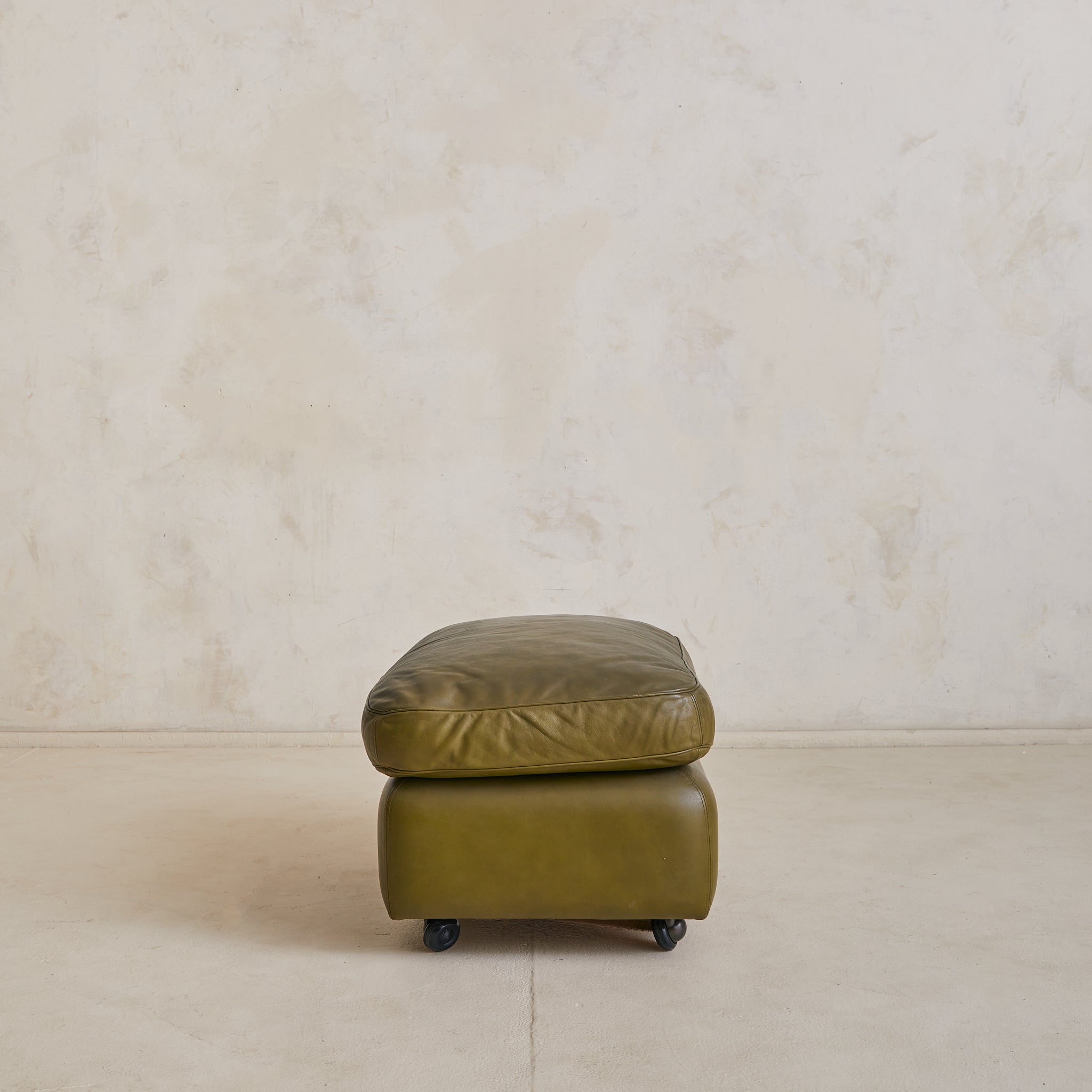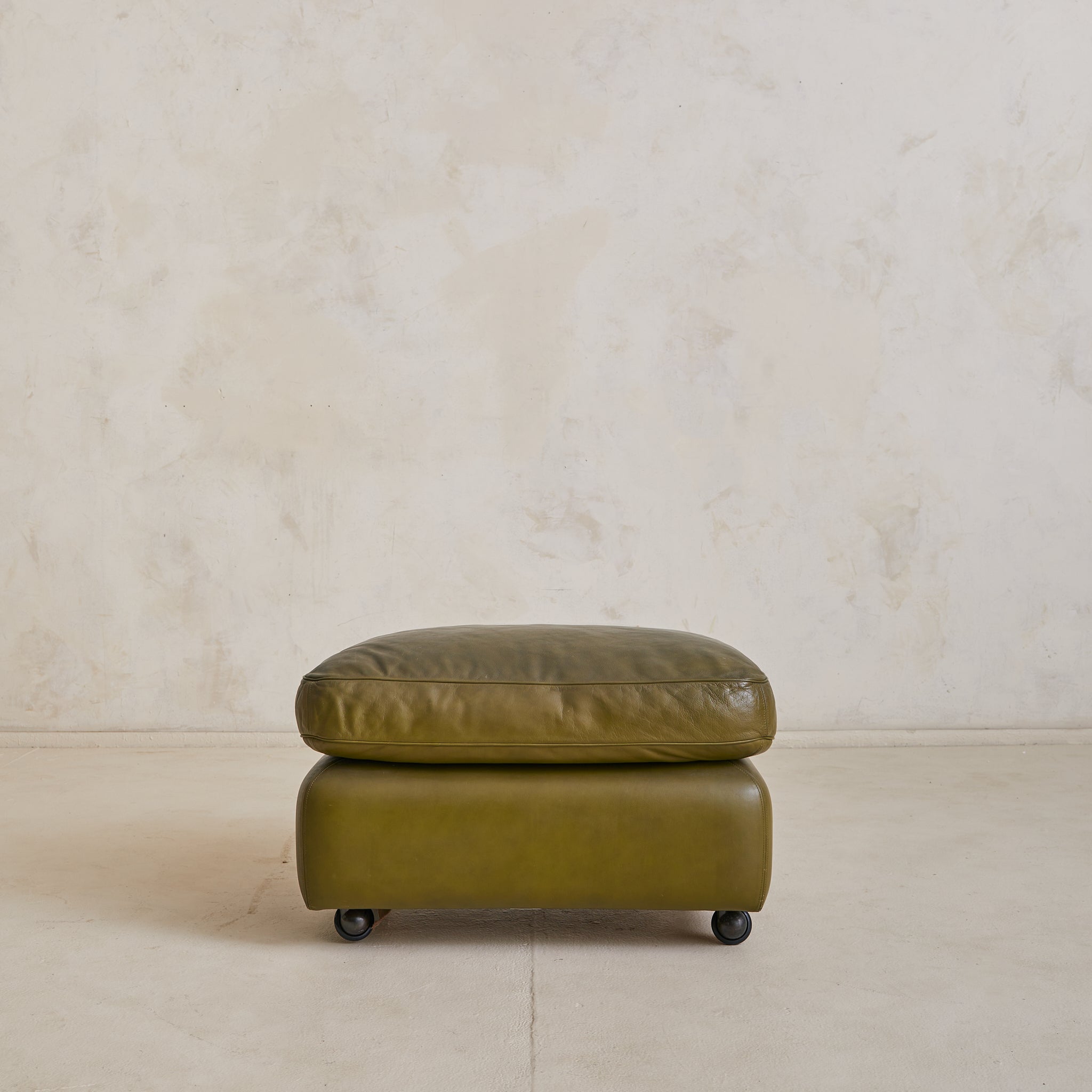 Italian Olive Leather Ottoman by Tito Agnoli for Poltrona Frau, 1970s - 2 Available